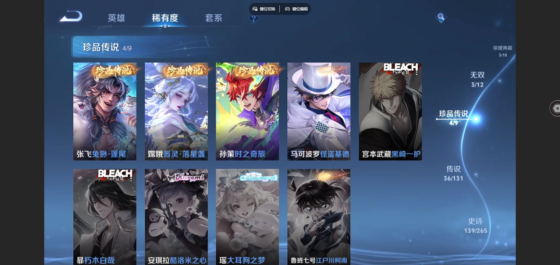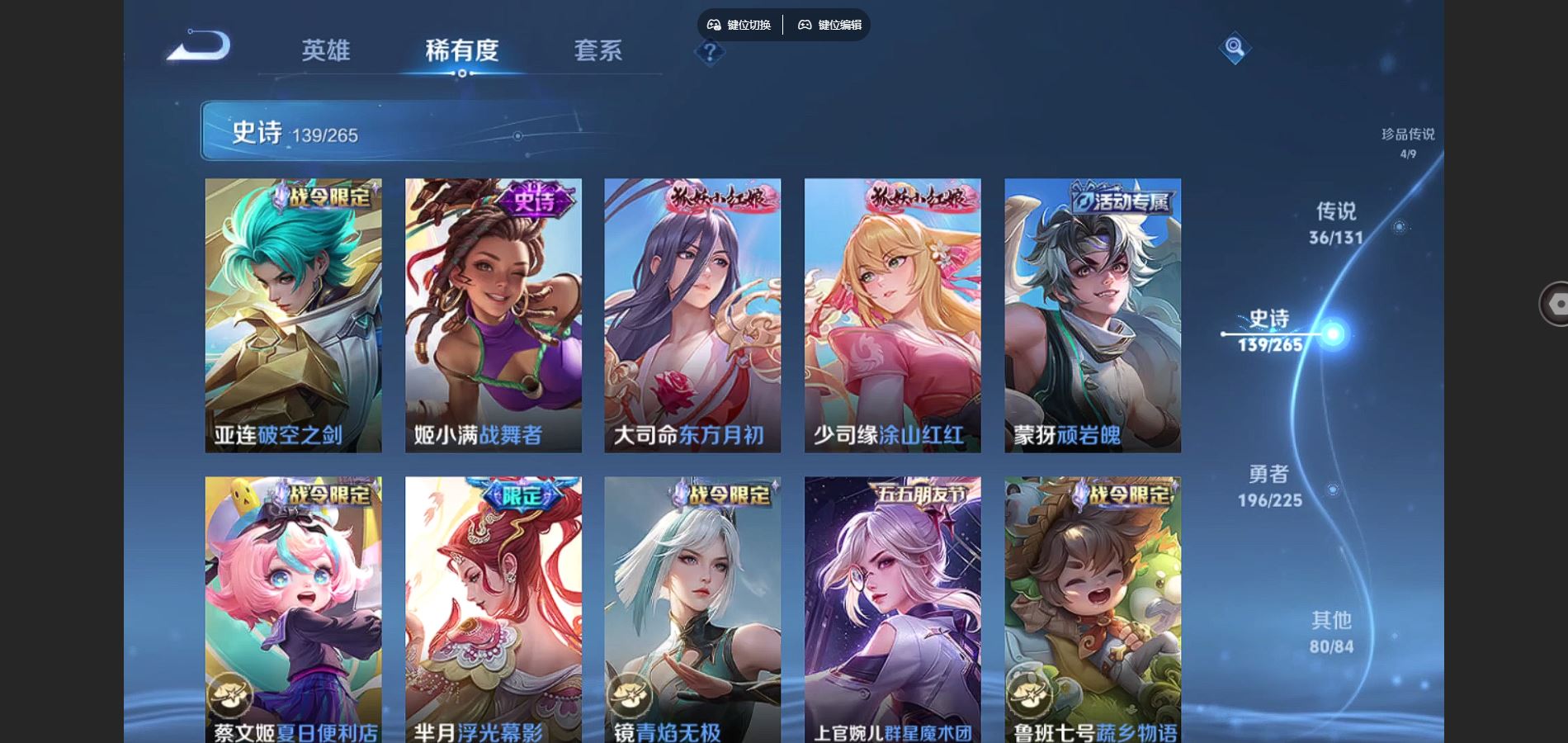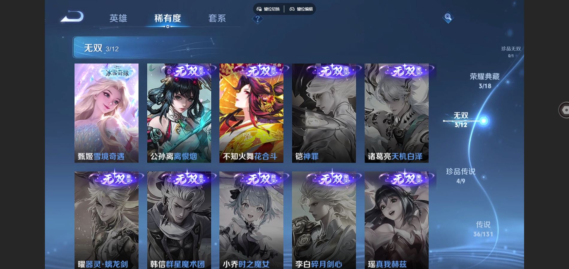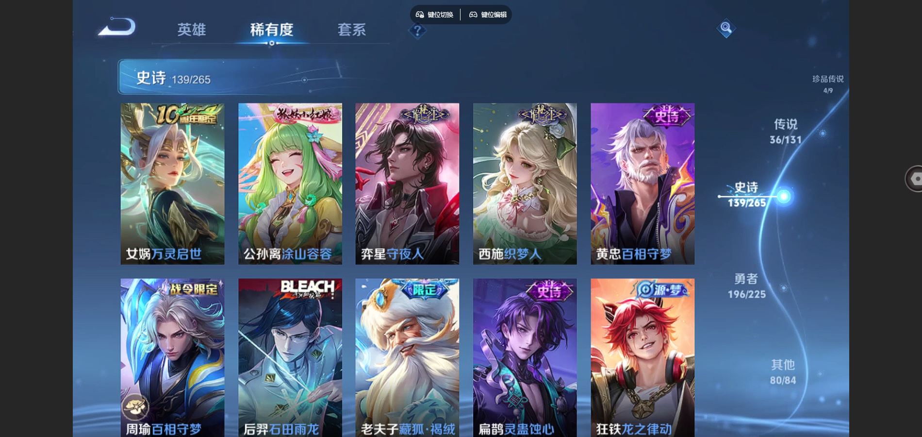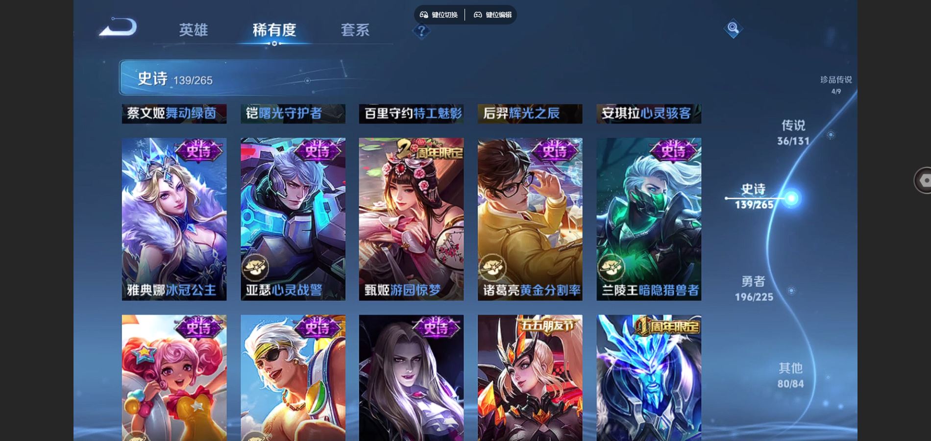 461皮肤/3典藏/3无双/4珍品传说/36传说/中路60段 对抗路53段 金标猪八戒 金标嫦娥 金
