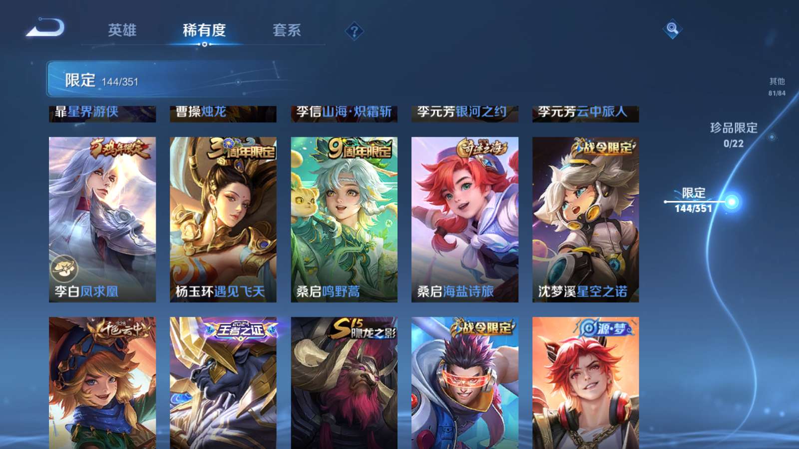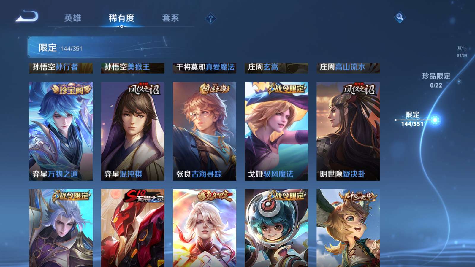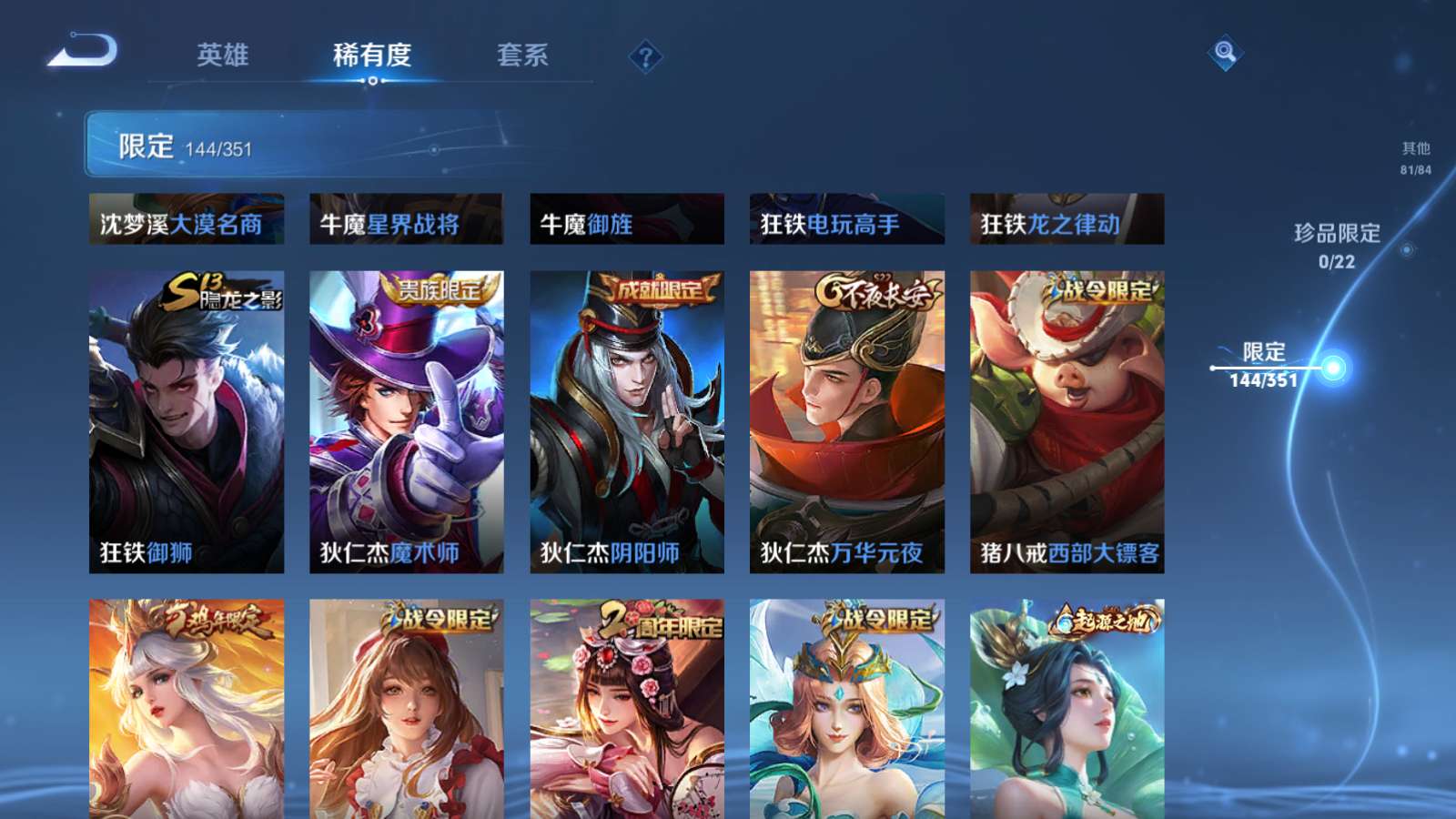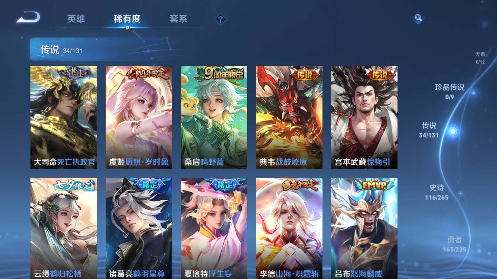 王者荣耀【安卓QQ】V9-400皮肤7典藏34传说 2星传说 幽冥之眼 金色仲夏夜 【全皮英雄】 李信全皮 鬼谷子全皮