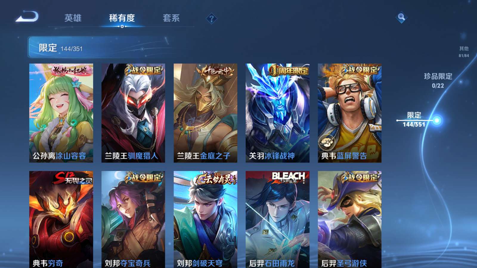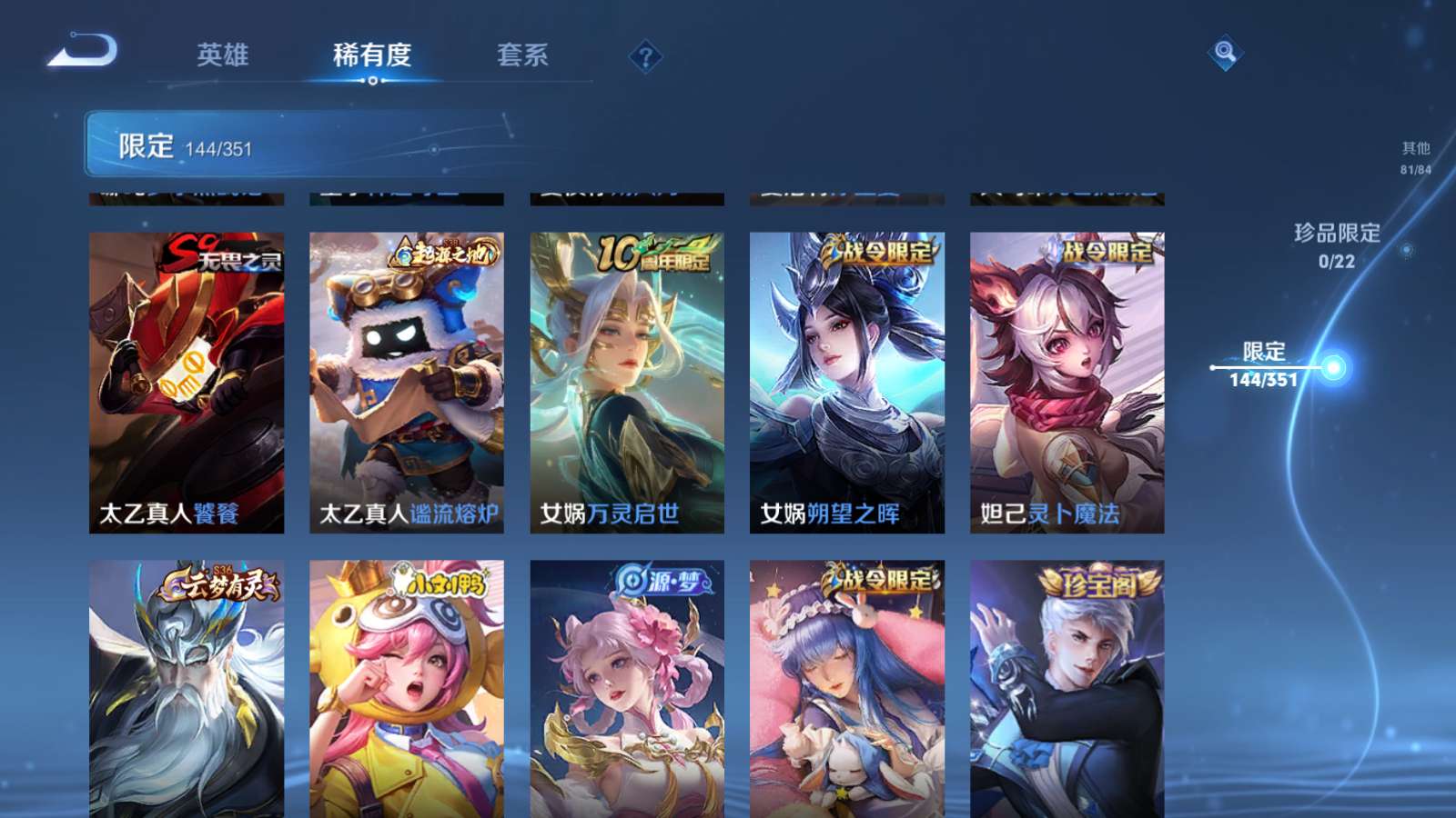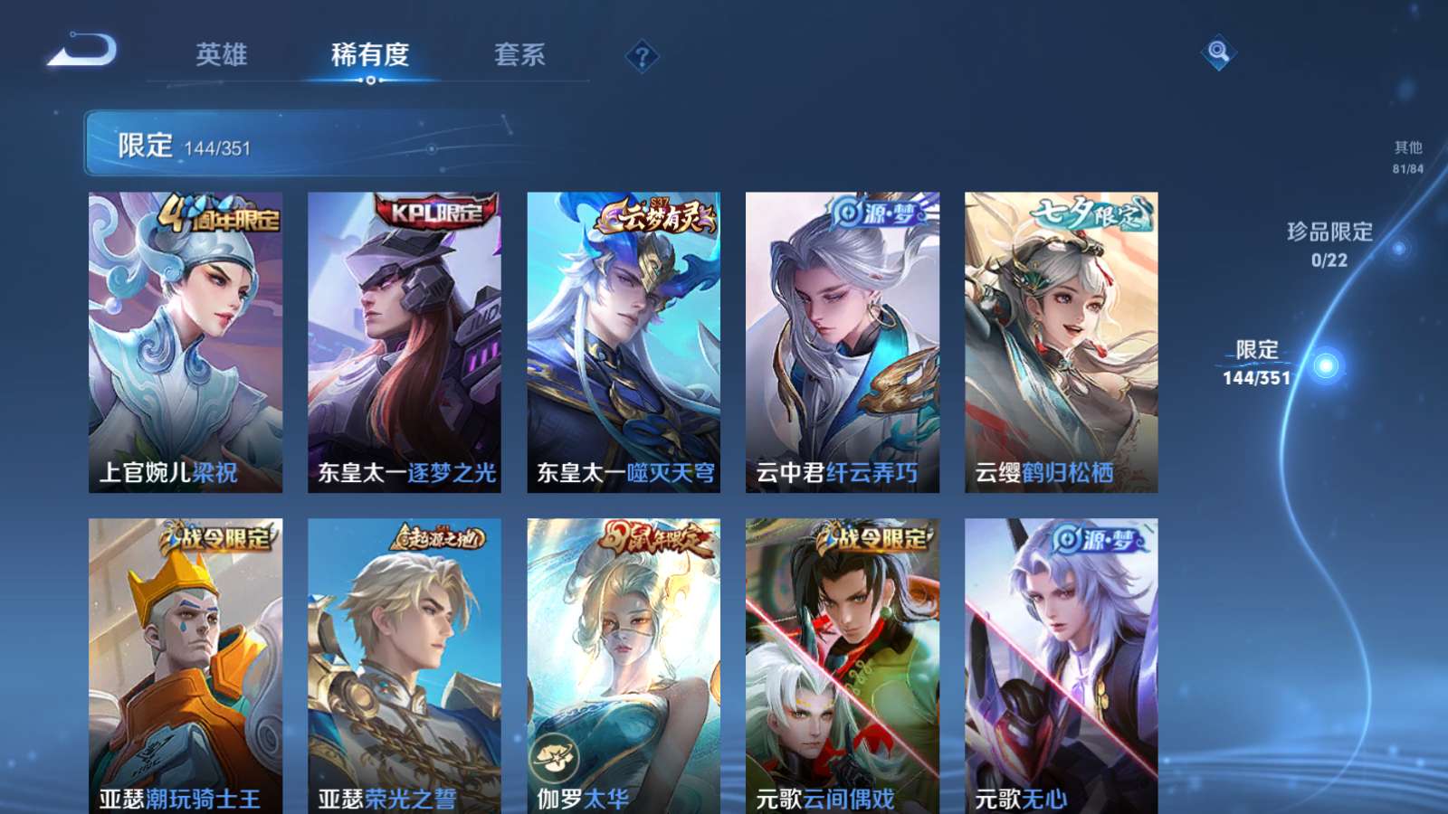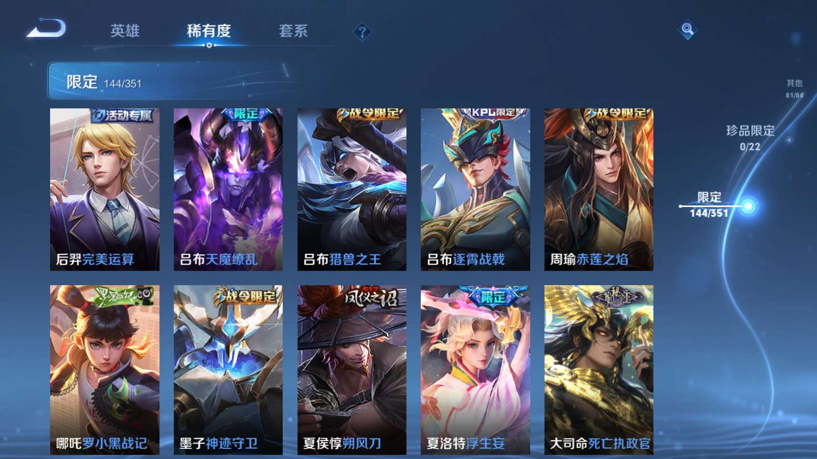 王者荣耀【安卓QQ】V9-400皮肤7典藏34传说 2星传说 幽冥之眼 金色仲夏夜 【全皮英雄】 李信全皮 鬼谷子全皮