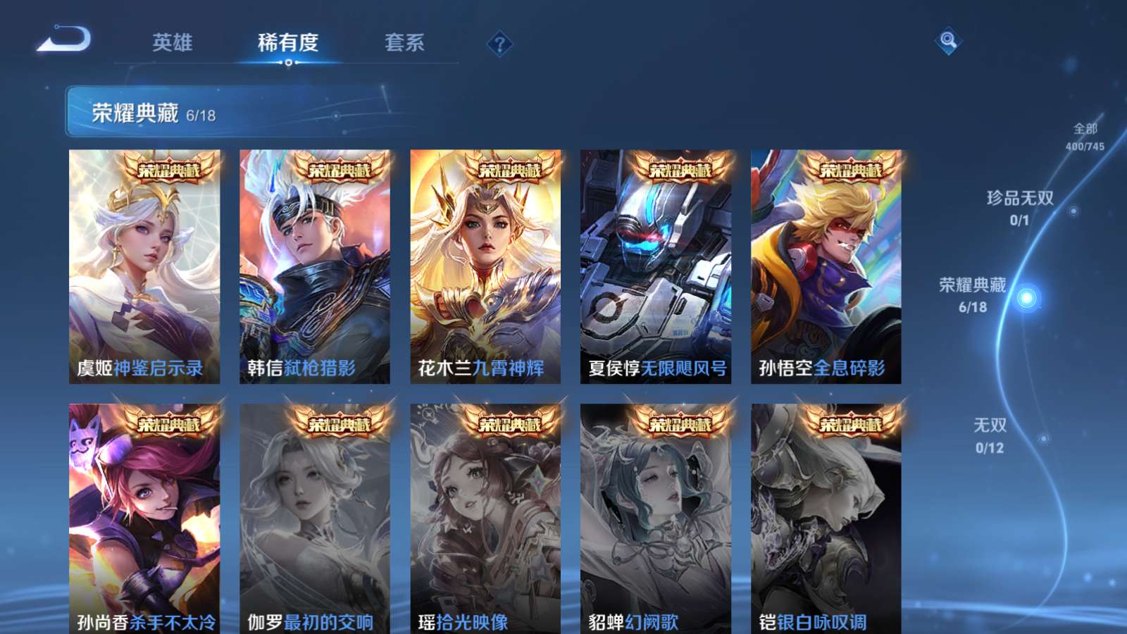 V9-400皮肤7典藏34传说 2星传说 幽冥之眼 金色仲夏夜 【全皮英雄】 李信全皮 鬼谷子全皮