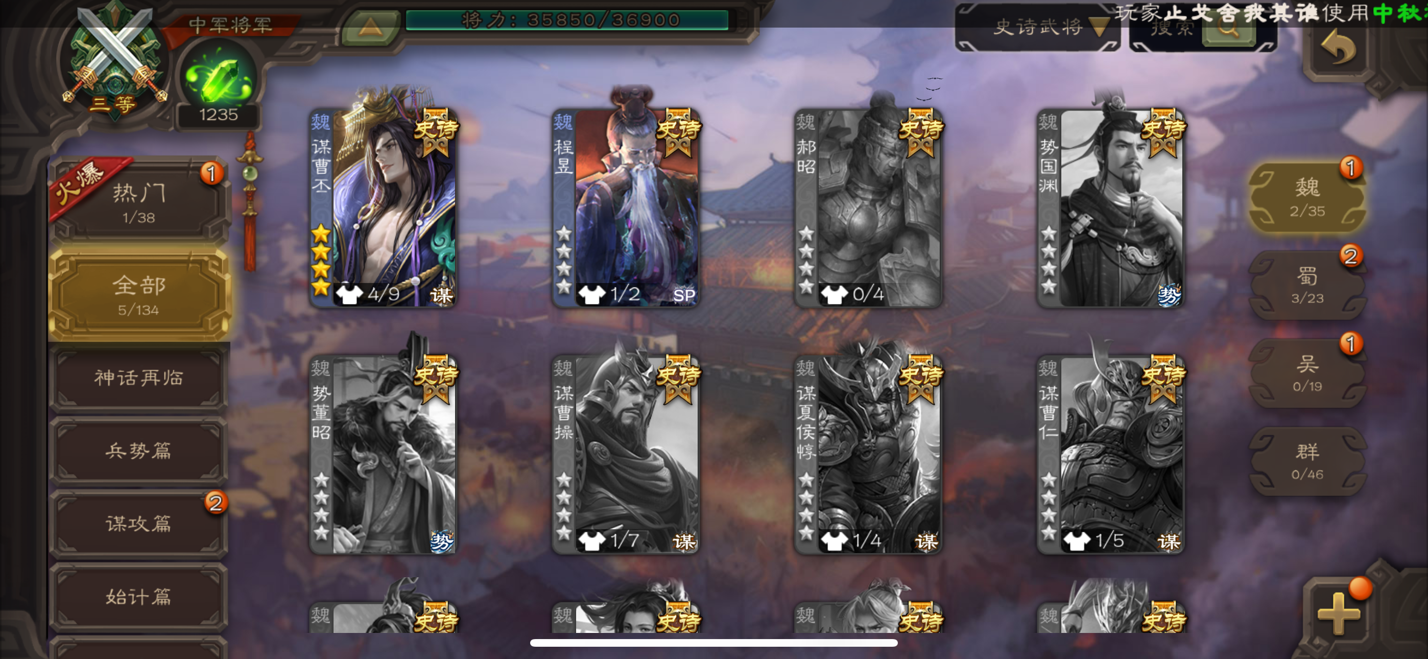 史诗武将数量: