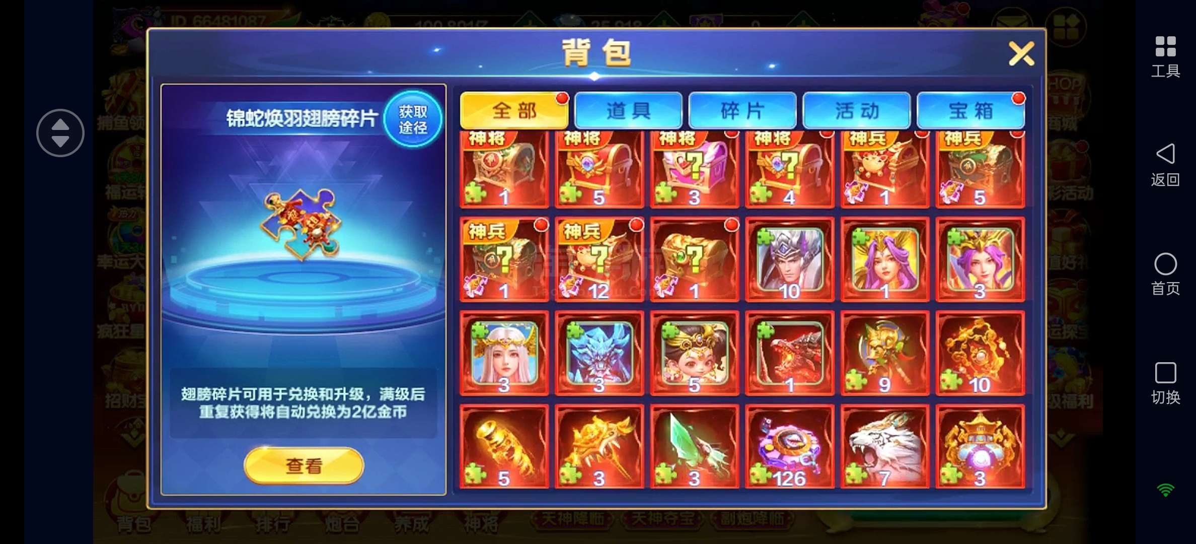 捕鱼大咖【安卓小米】小米安卓机通用卖断5.5亿炮实炮3.5亿炮 10万亿 天神嫦娥4神将,能换绑。保证金商家安全可靠