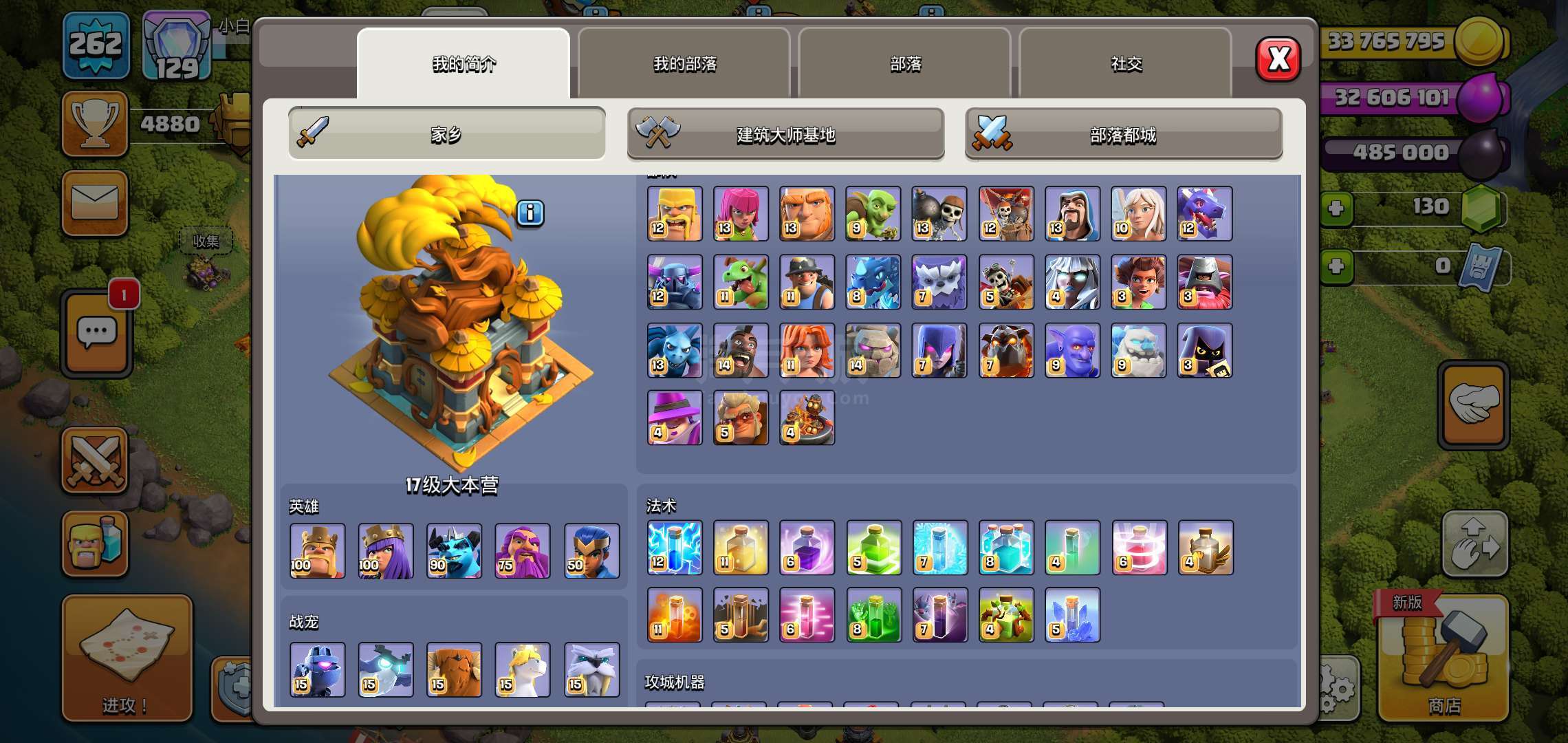部落冲突【安卓QQ】17本差几个装备技能全满