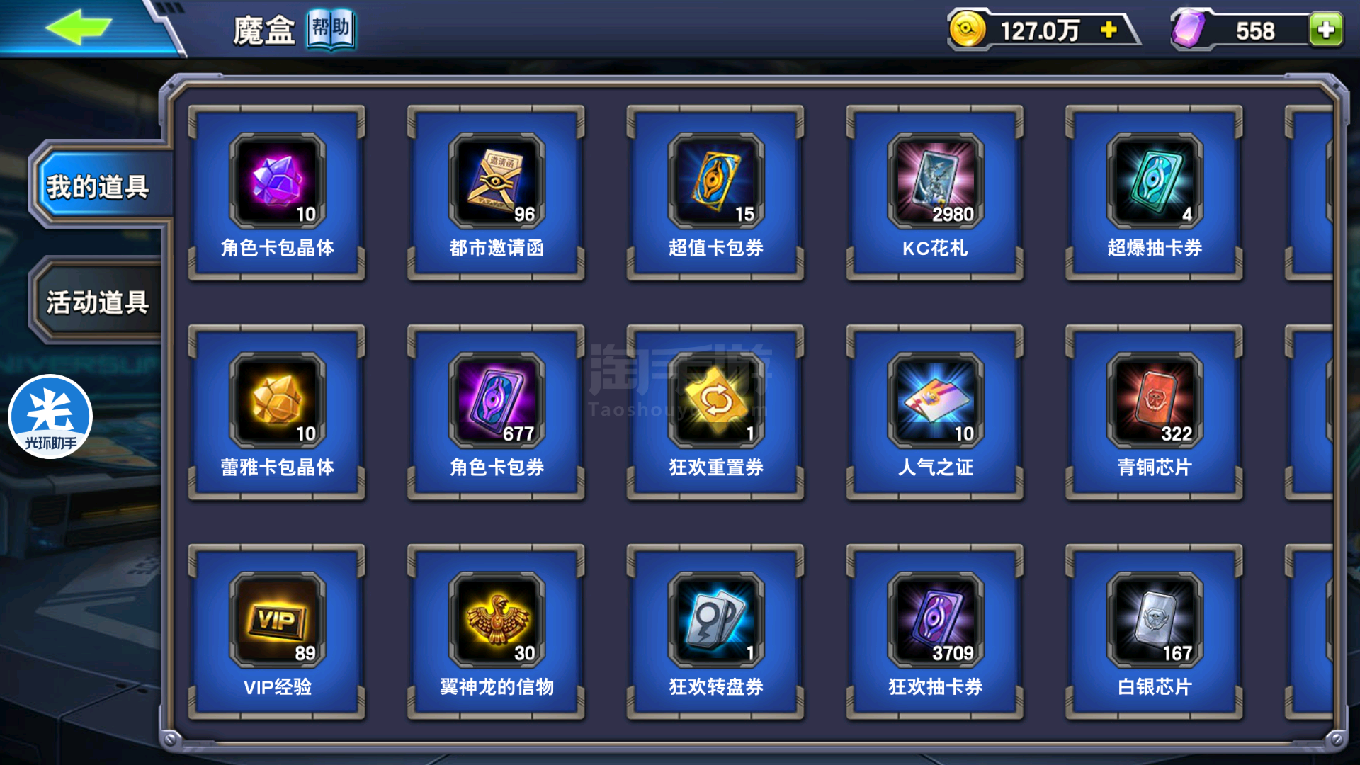 金币计算方法,先把宝箱开了(1宝箱算3.6万金),金币总数=金币+卡卷*3万+狂欢劵*600