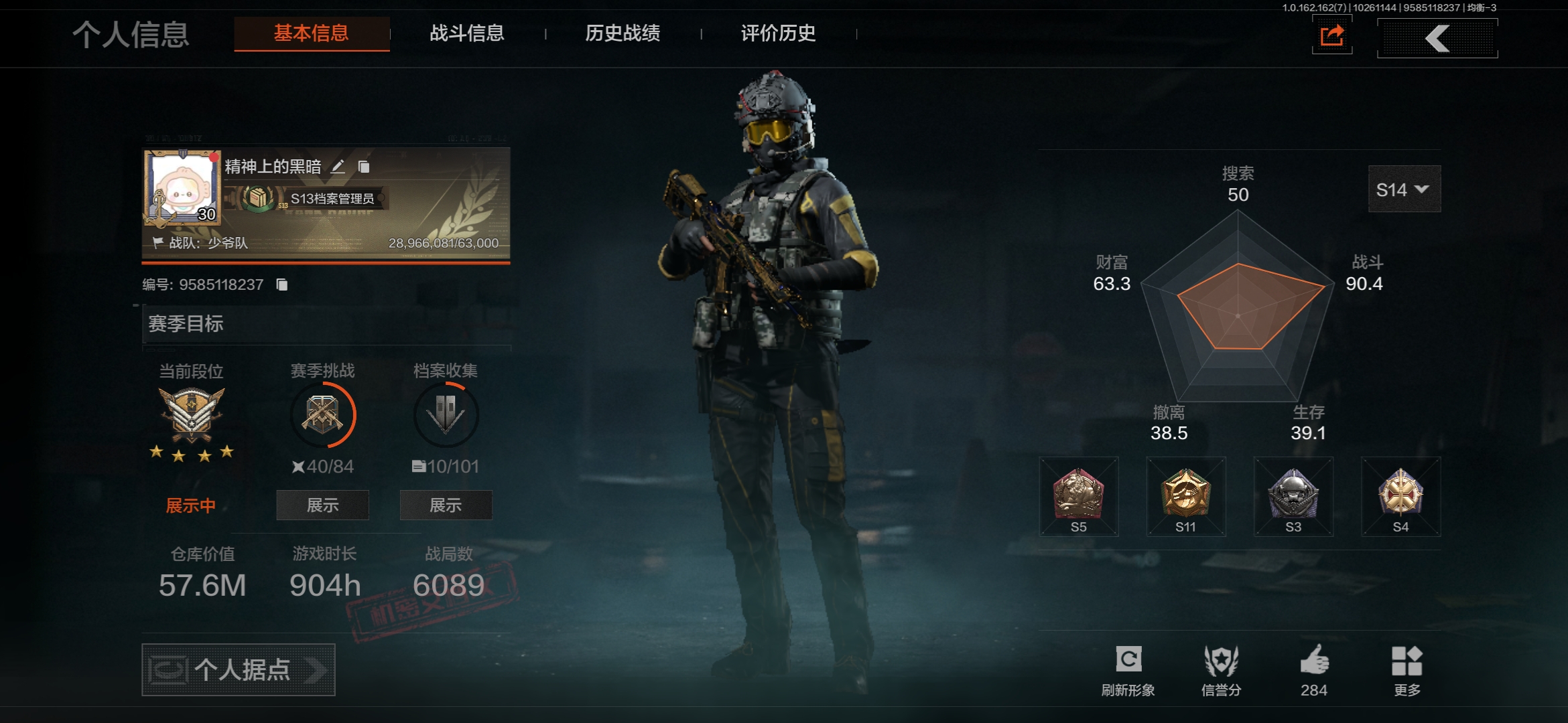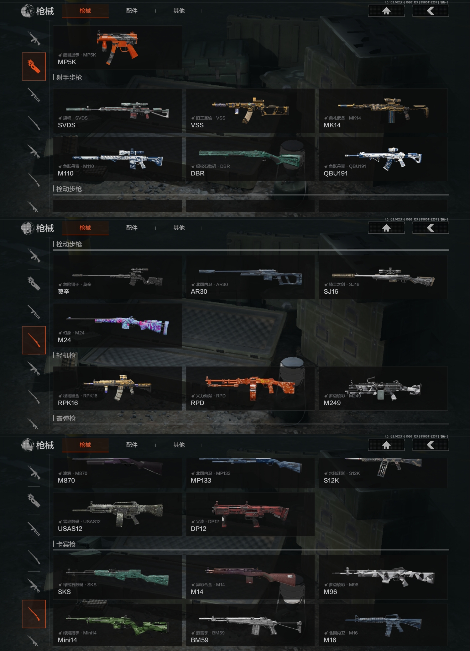 FY5660,总资产57.6m,近战武器:,收割者,急袭弯刀,来战·开山刀,角色装扮(紫):,王国卫队礼装,王国卫队礼装·轻装,都市夜影套装,金色枪皮:,浮麟影青·QBZ192,利齿风暴·MPX,旧王圣谕·VSS,旧王圣谕·QBZ191,告丧夜曲·AR57,旗帜·AEK,大金:,机密文件,金狮子,盛宴雕像,盘蛇金像,古董茶壶,T7热成像,安卓Q区实名:可修改