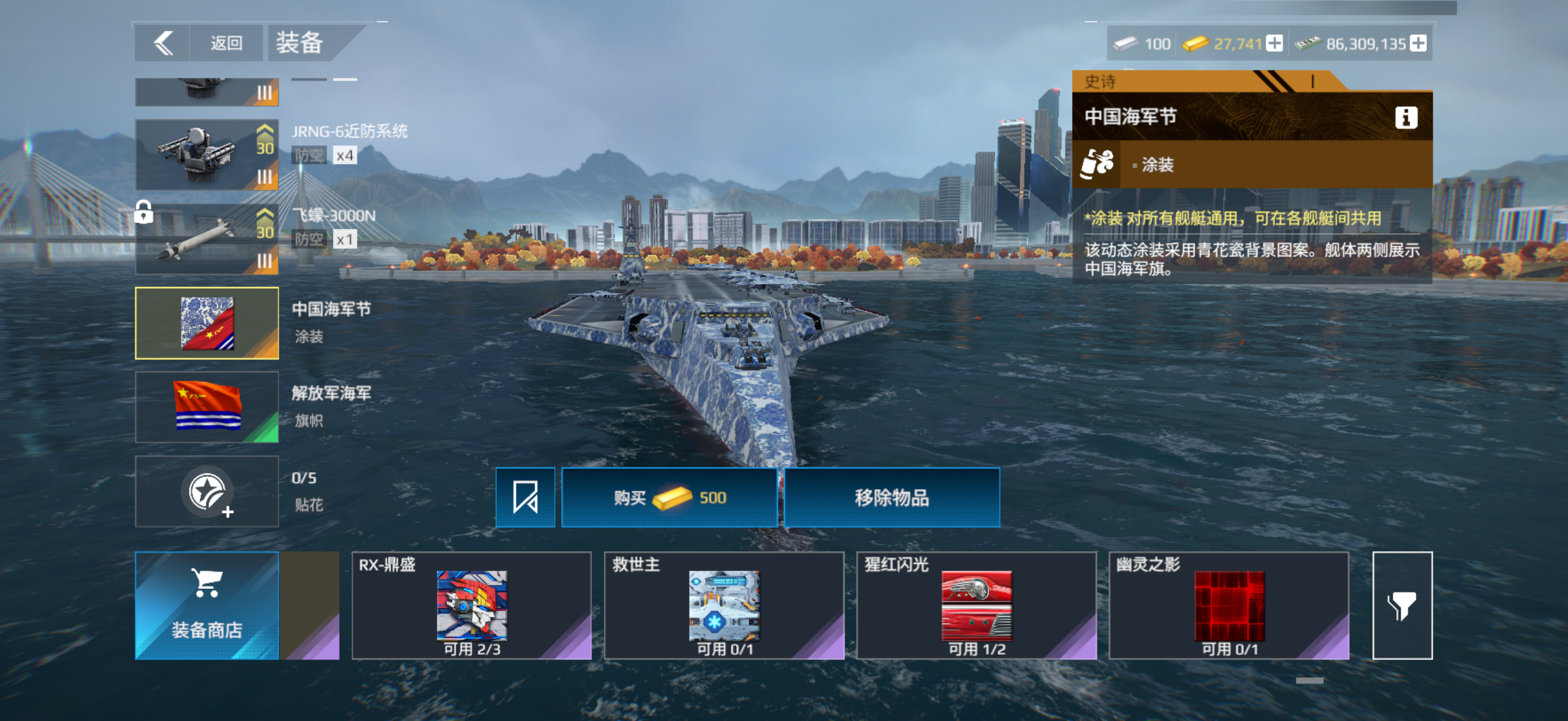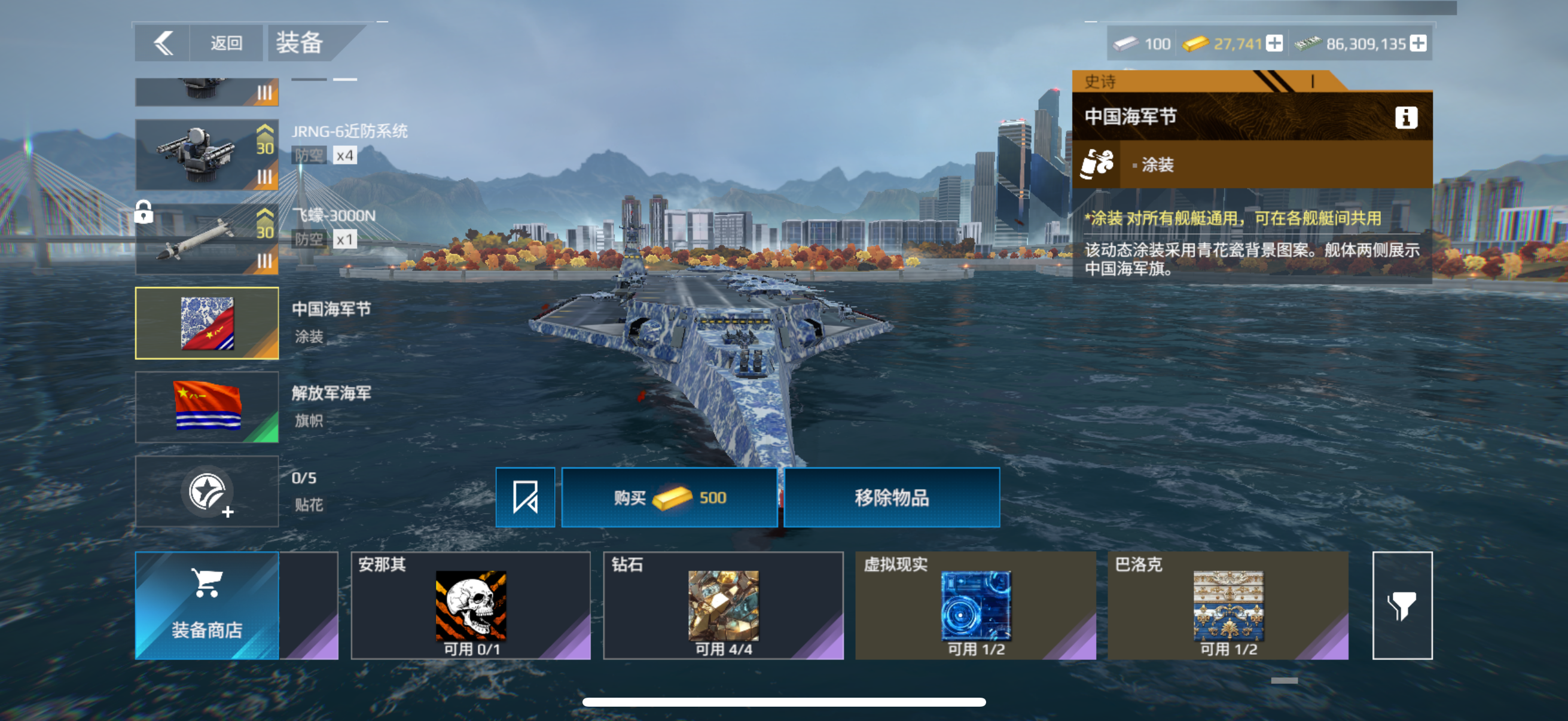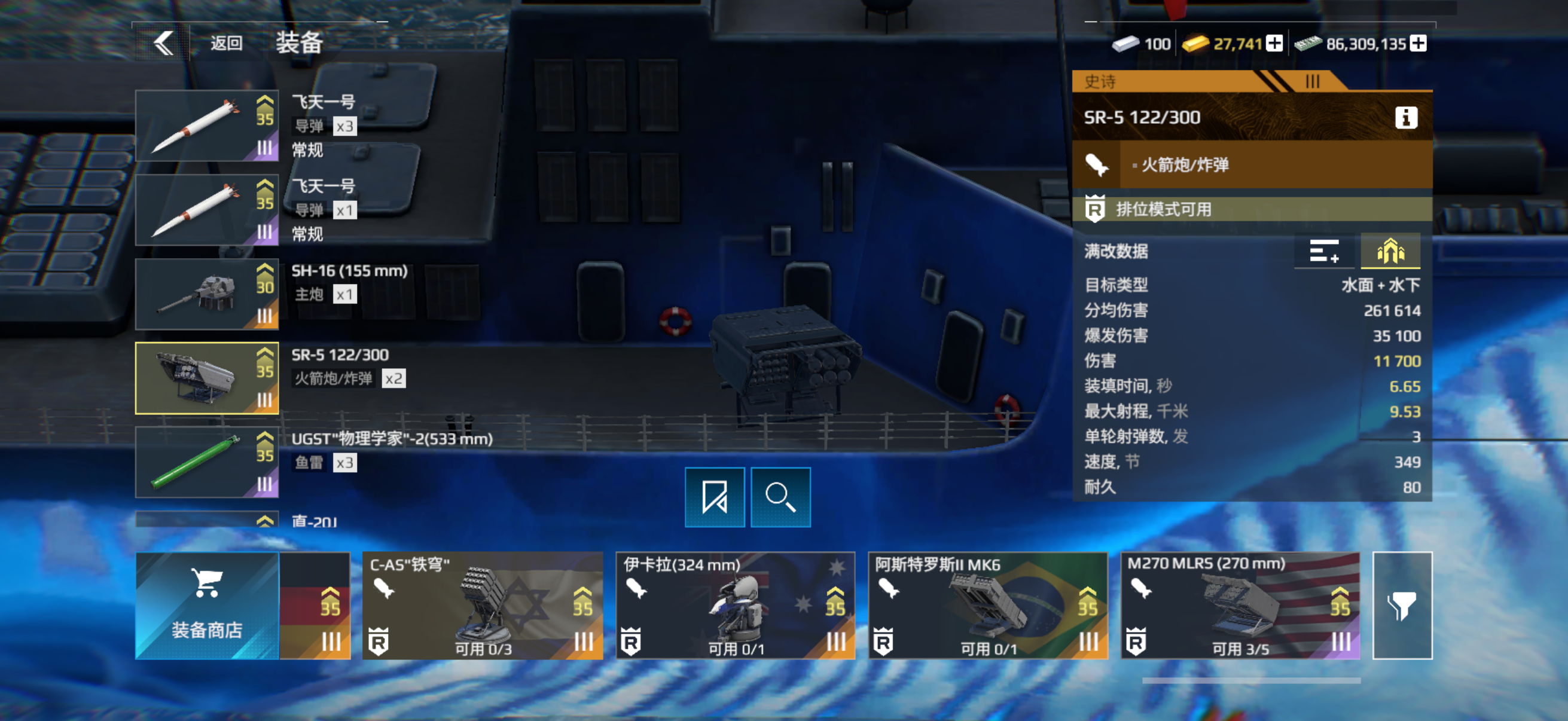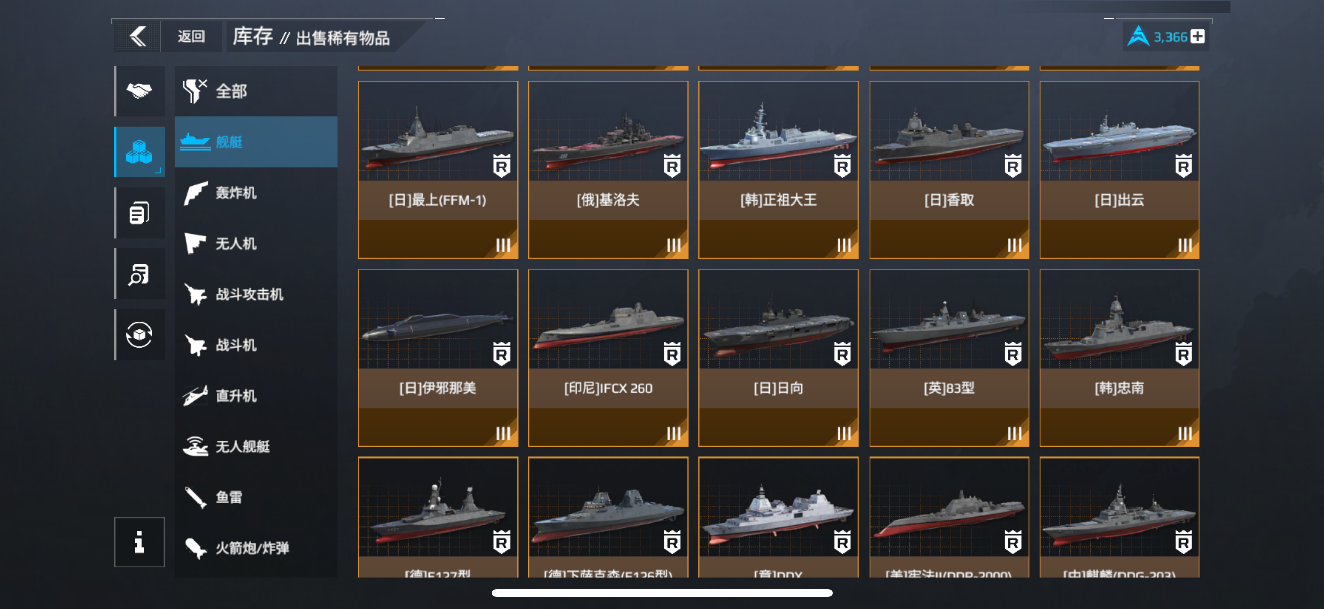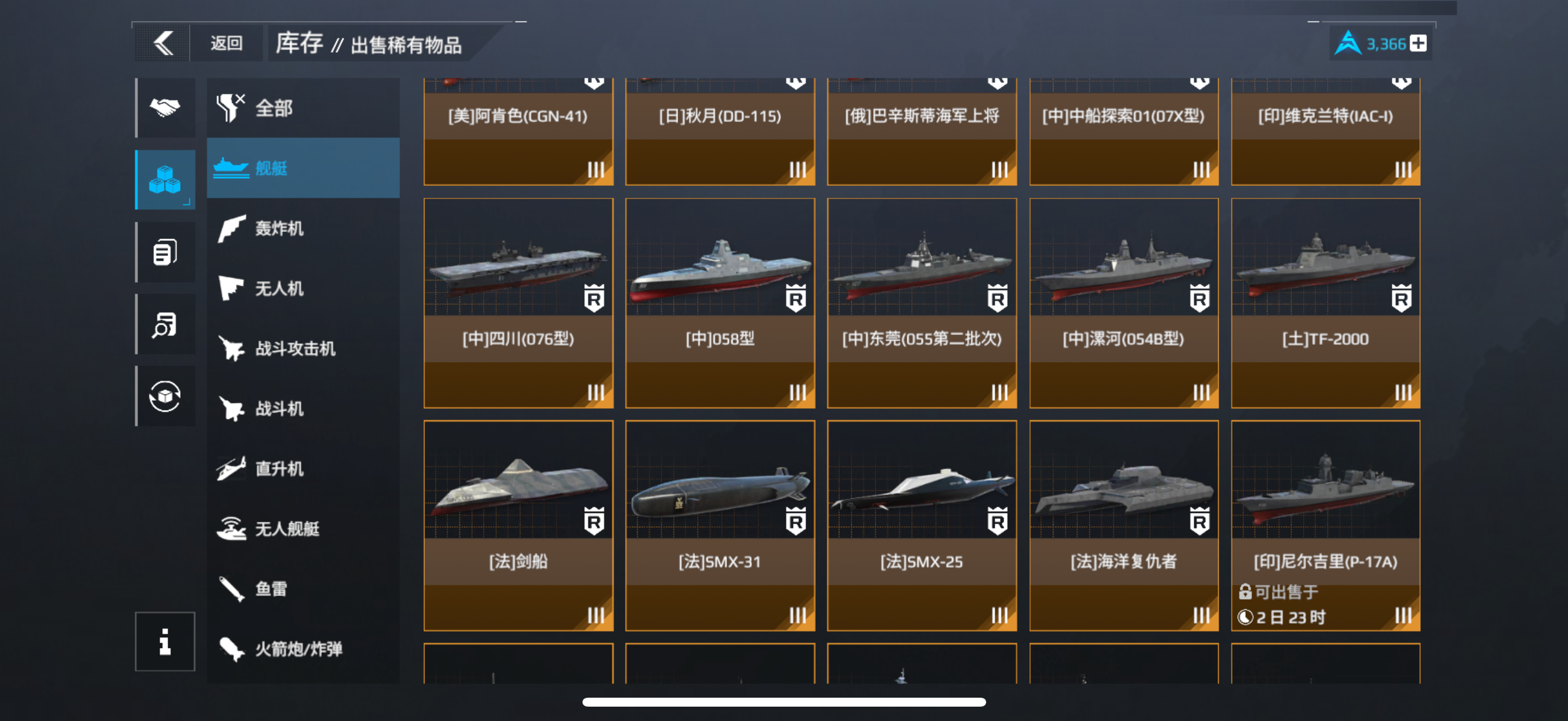 自己看截图吧,一共只有3艘船没有,这号所有顶级装备都有,甚至有很多的储备