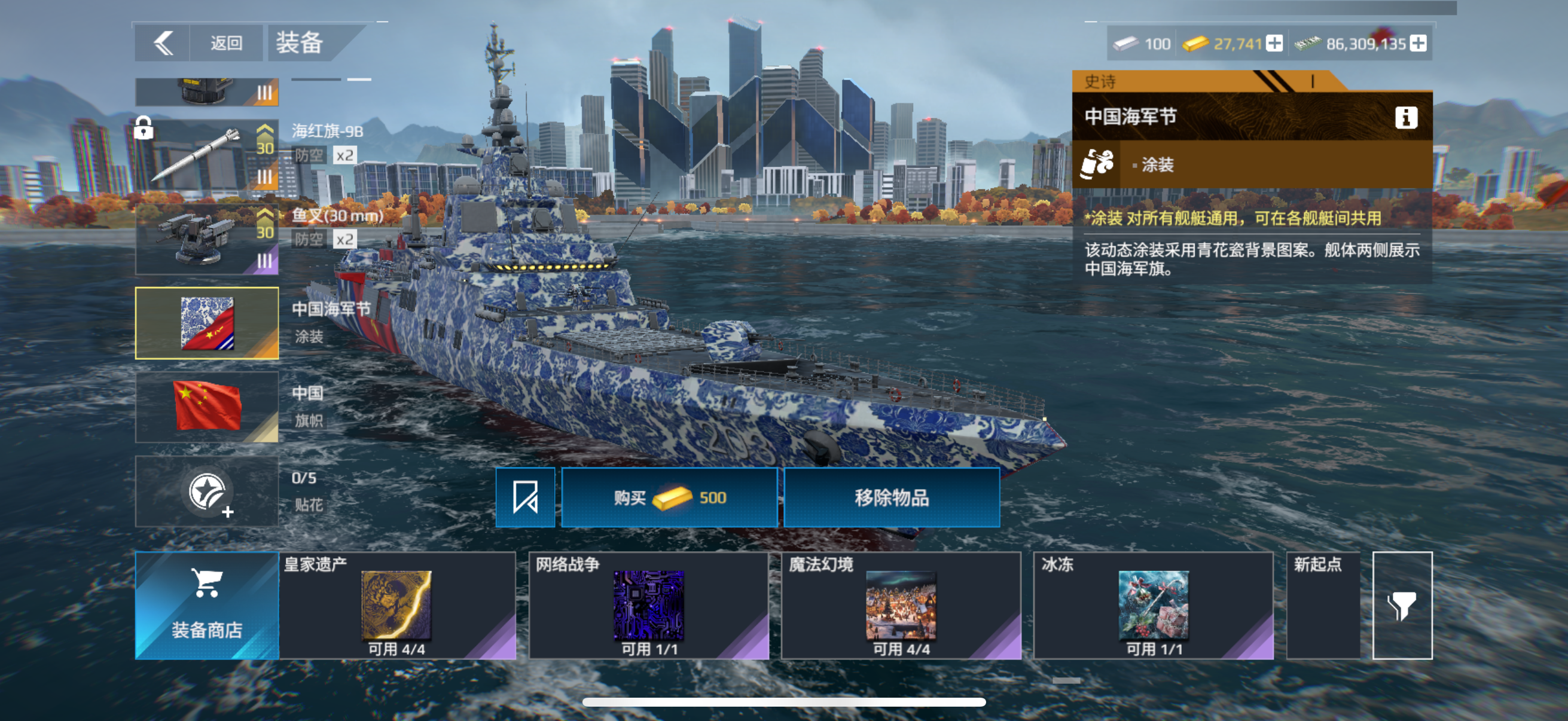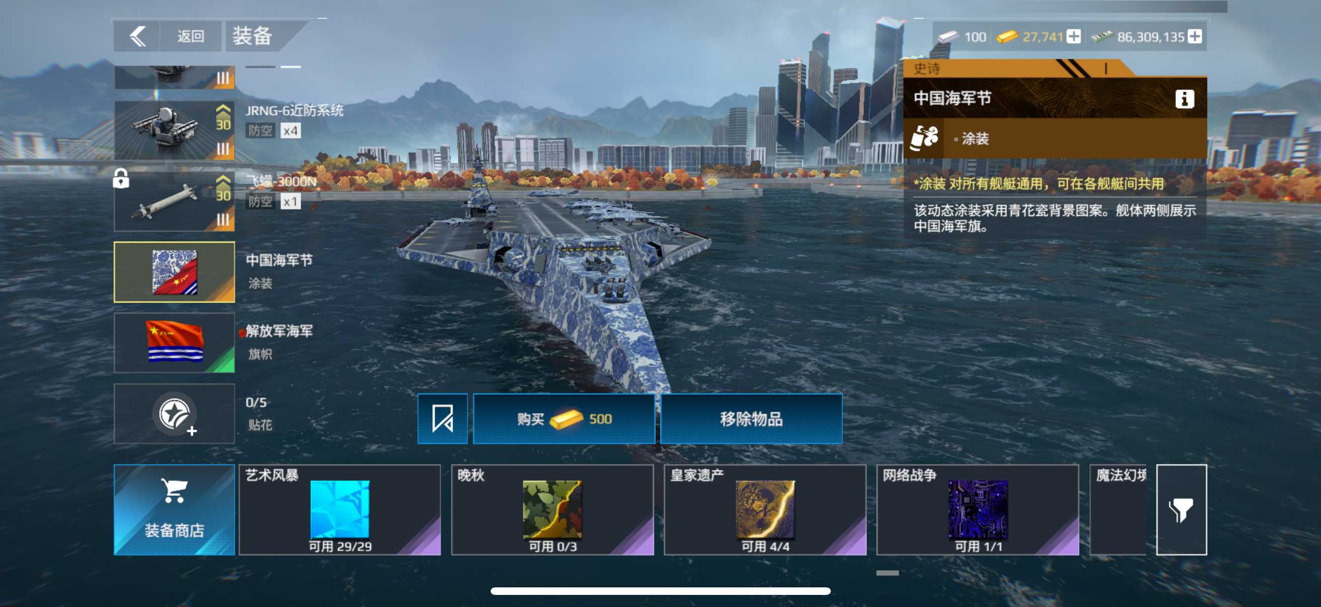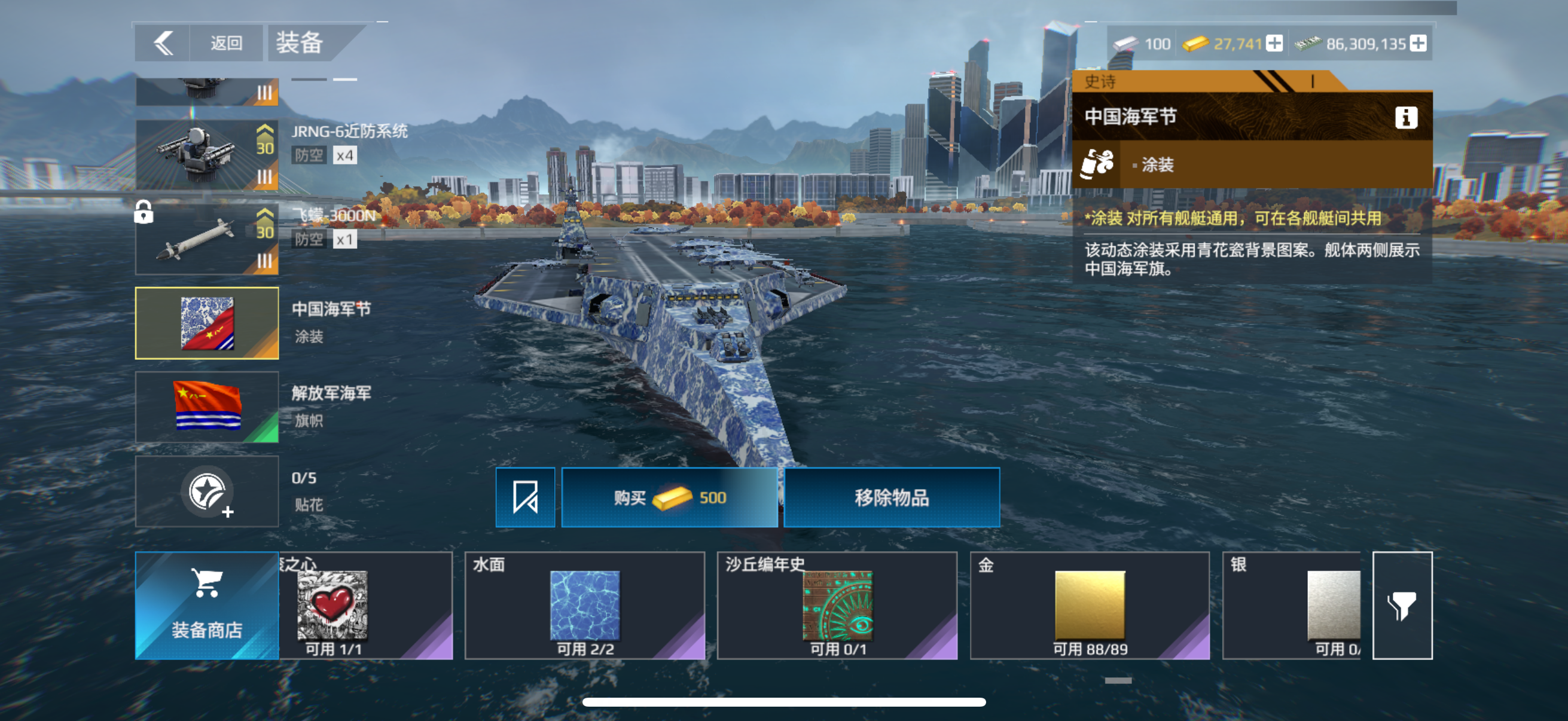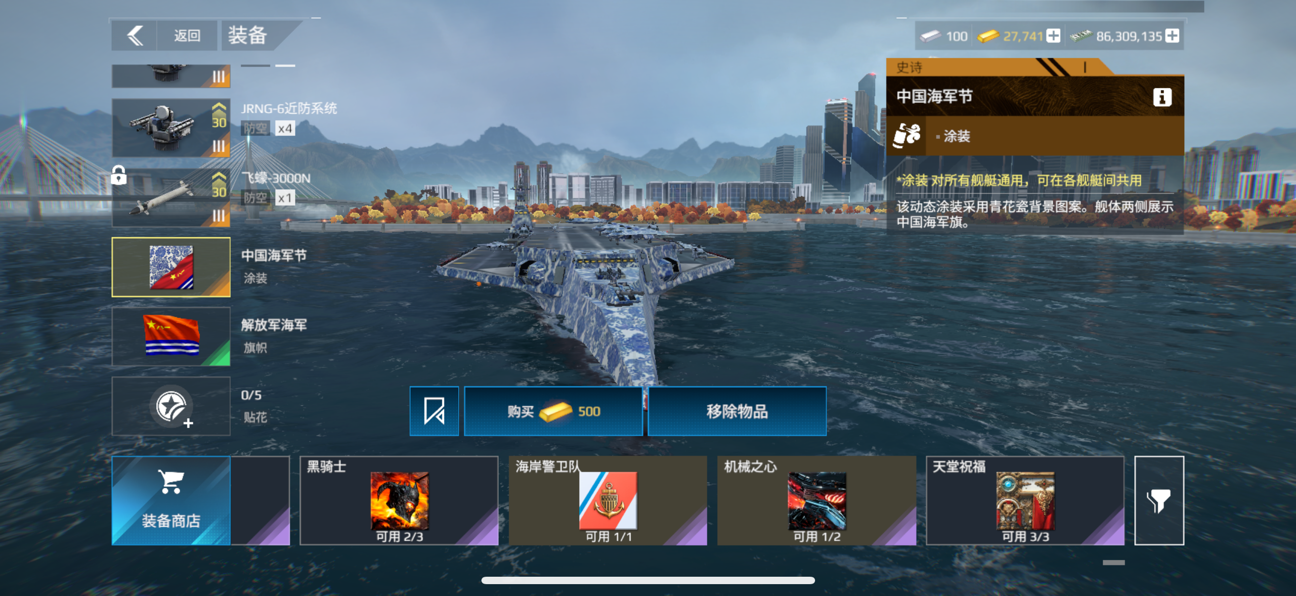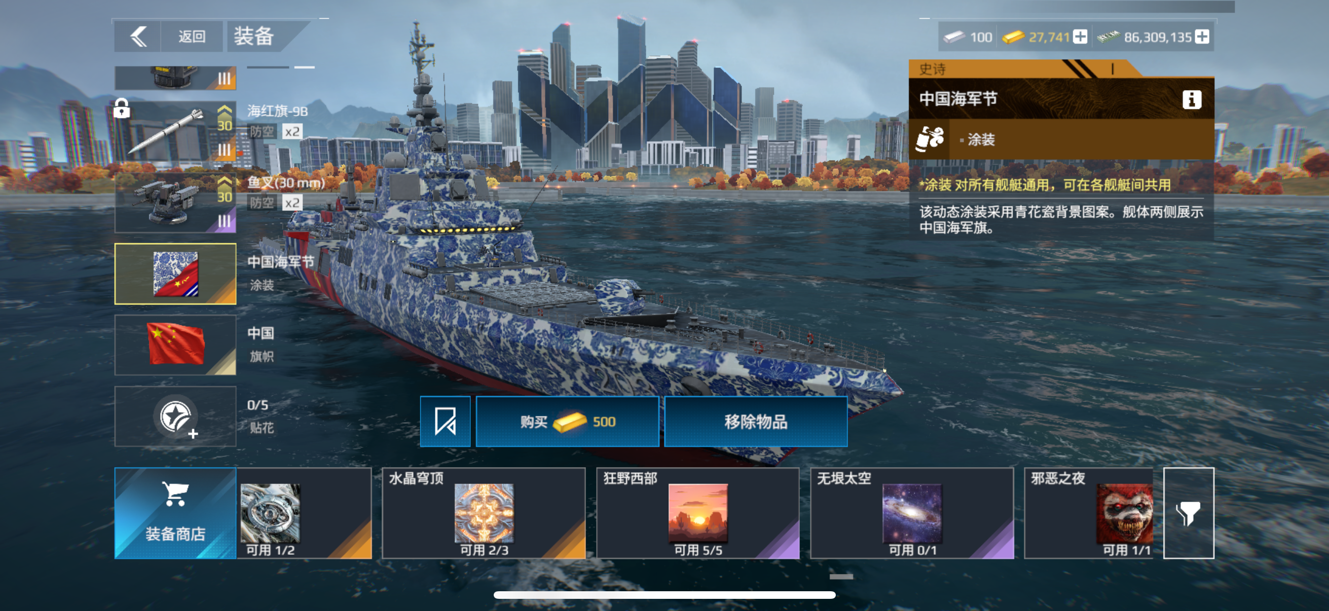 自己看截图吧,一共只有3艘船没有,这号所有顶级装备都有,甚至有很多的储备