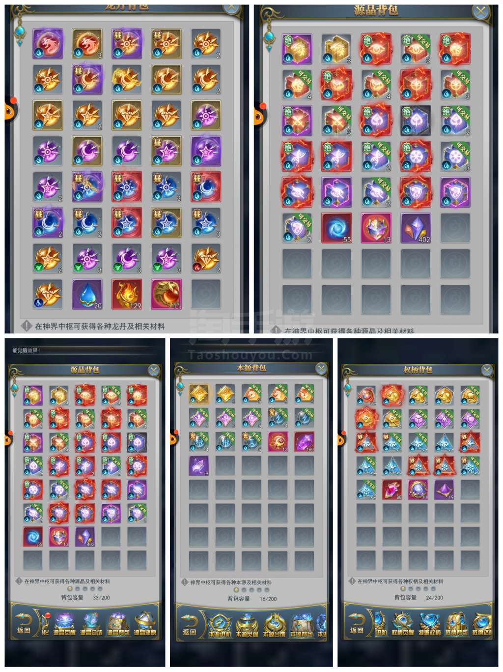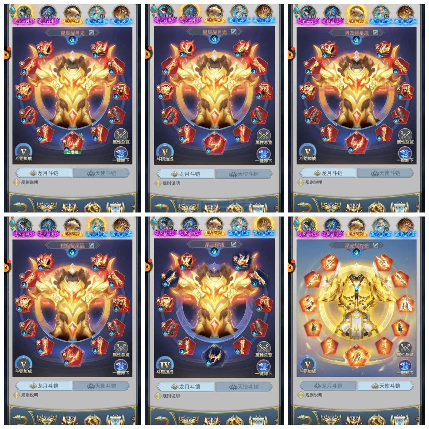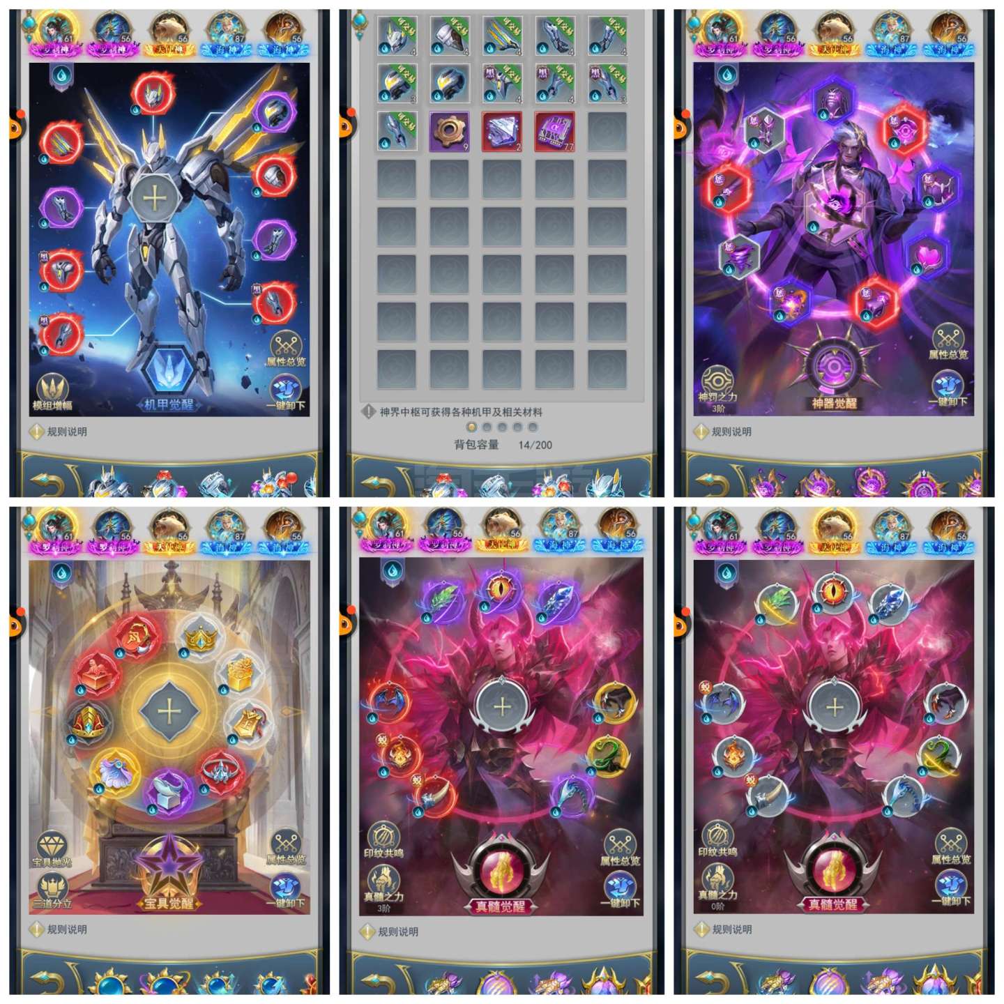 6套五字斗铠,5套红秘法,4套圣物,4套龙丹,4套本源,4太源晶,2套混沌,一套神器,8排大奖