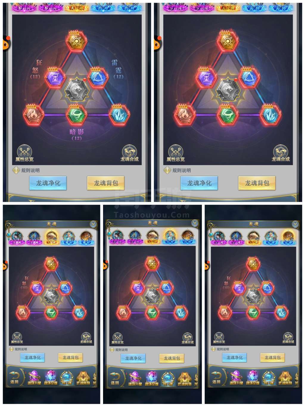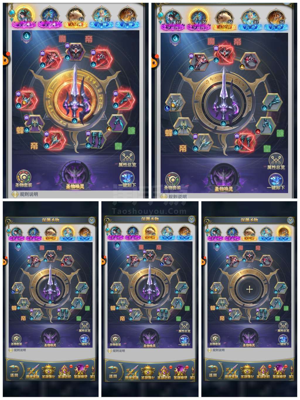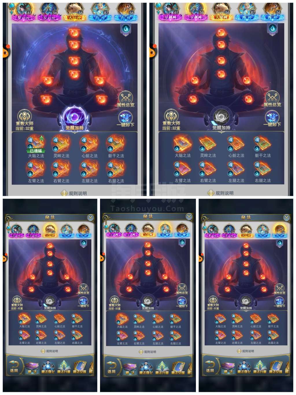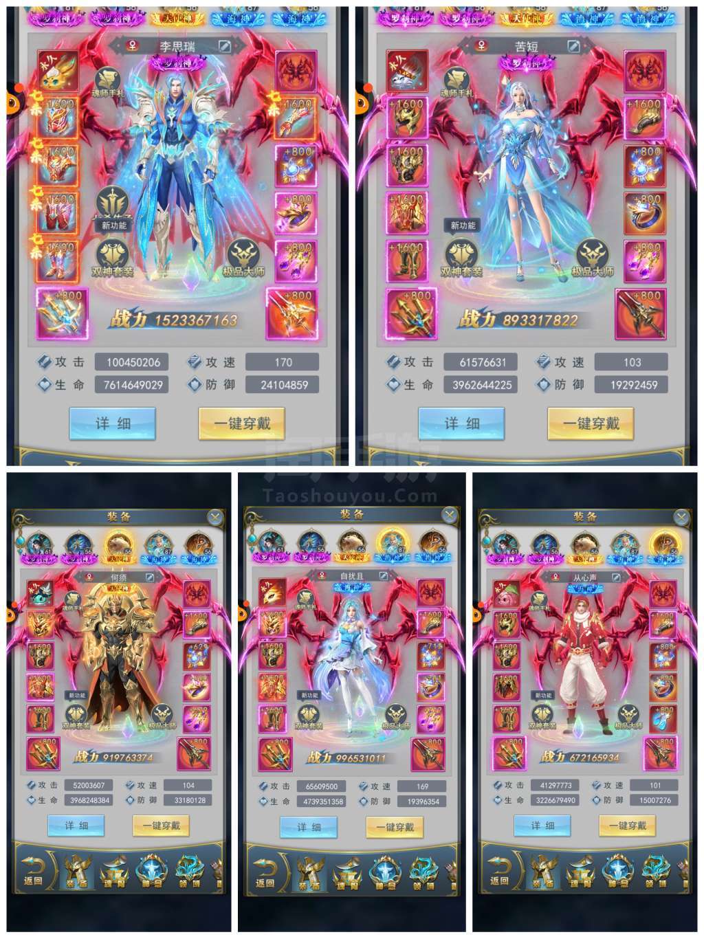 6套五字斗铠,5套红秘法,4套圣物,4套龙丹,4套本源,4太源晶,2套混沌,一套神器,8排大奖