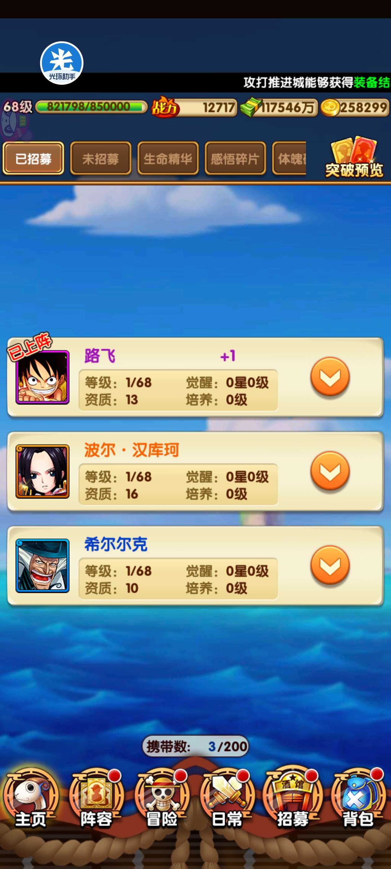 航海王强者之路【安卓官方】v2金币精华开局号.15/单人无替补/三无账号20800精华25.8w金币 !,1800多瓶体力18