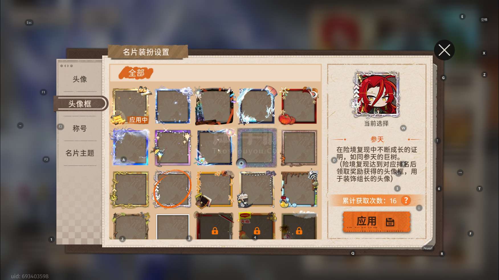 33六星27个皮肤11个四门及以上角色,最近一期险境0.3%有三级参天头像框土豪金头像框