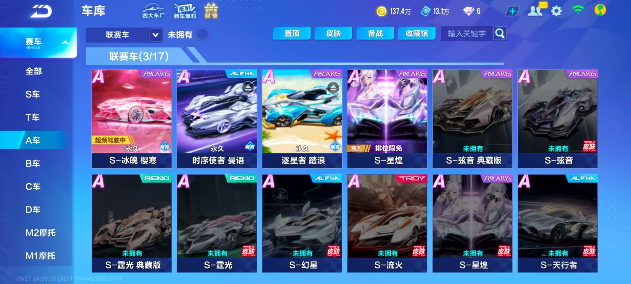 QQ飞车手游【安卓QQ】3联赛冰魄时序逐星+雀焰女王A车数量34安卓QQ可以正常转区