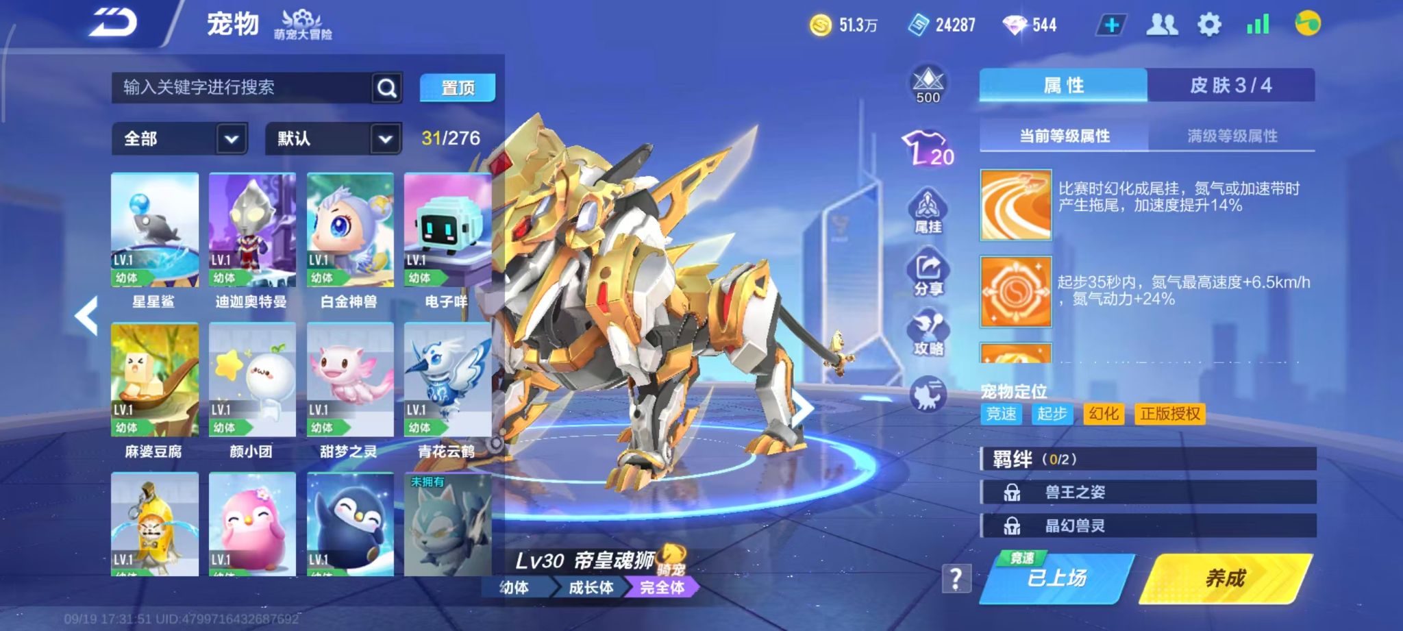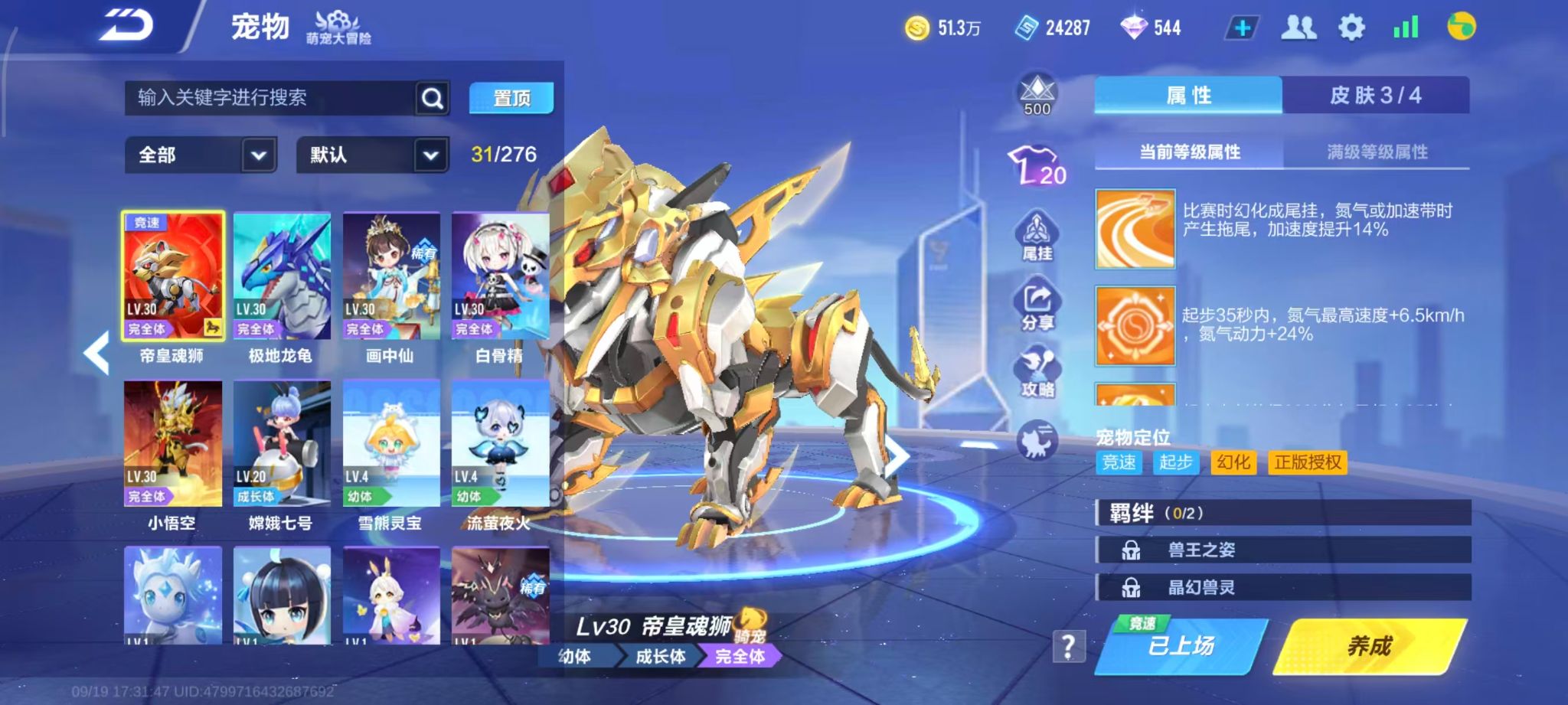 精品3T奥莉娜7阶天穹战音/源极之星帝皇侠/孙悟空鸿运舰长+幻星+1幻生2魔法套+帝皇魂狮