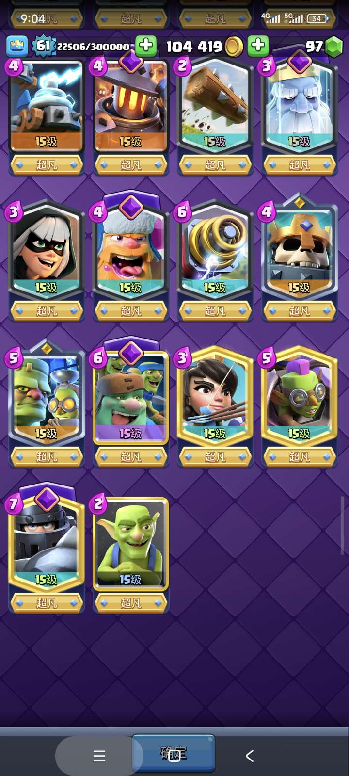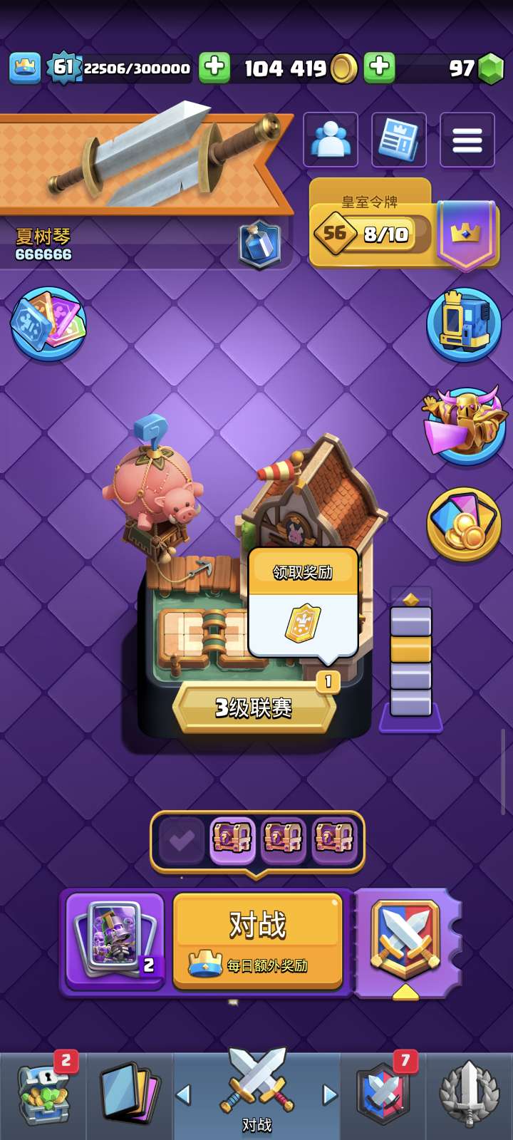 皇室战争【安卓QQ】61级角色27超凡30觉醒最新火锅飞猪都觉醒最新月卡已开。还有5w超凡卡和20英雄卡外卡超多资源