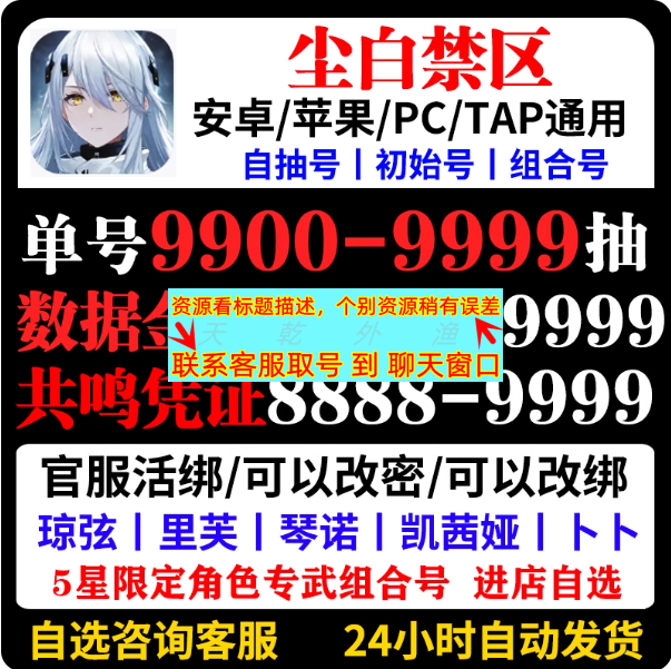 尘白禁区【全服通用】官服活绑610抽:49000金+77凭证+80誓约+55武器+恩雅辉耀幽潮肴妮塔绮幻+5橙武自选五星自选