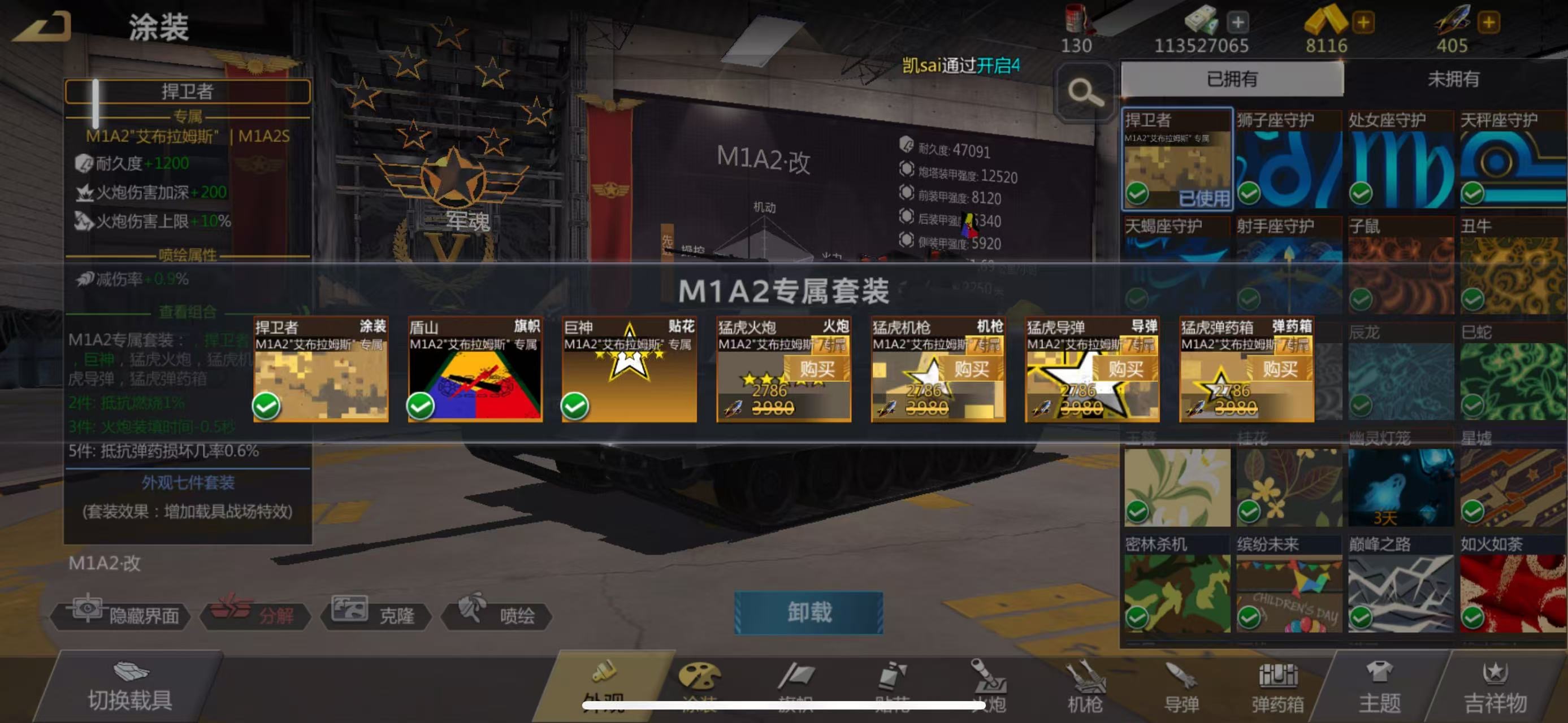 M1A2 3000 盛世套 六千黑金专属涂装 三件套 战神车长 延时榴弹 双插地