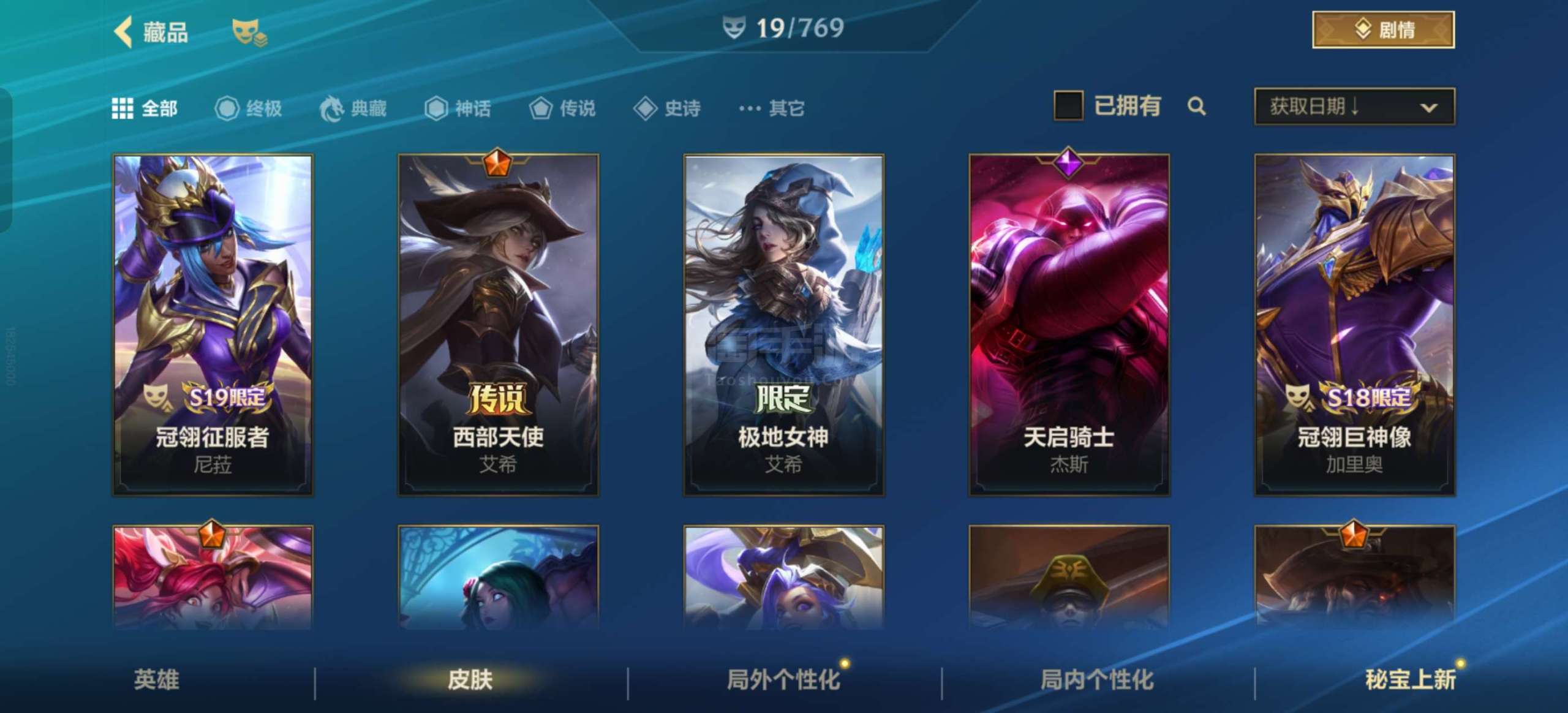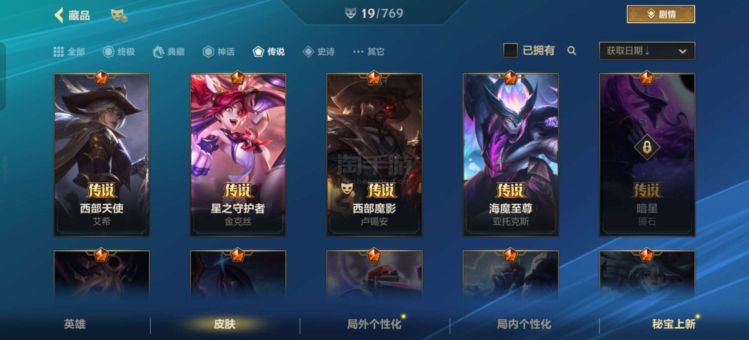 英雄联盟手游(lol)【安卓QQ】4个传说皮肤剑魔海魔至尊西部魔影卢锡安星之守护者金克丝西部天使艾希