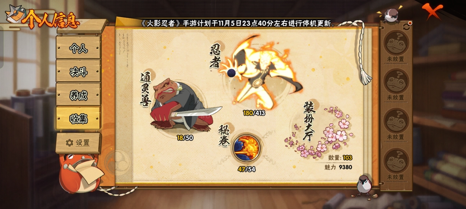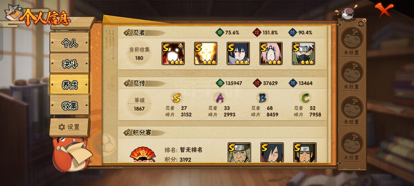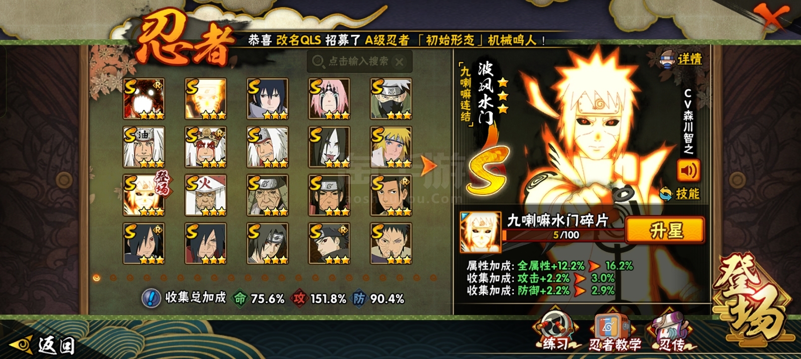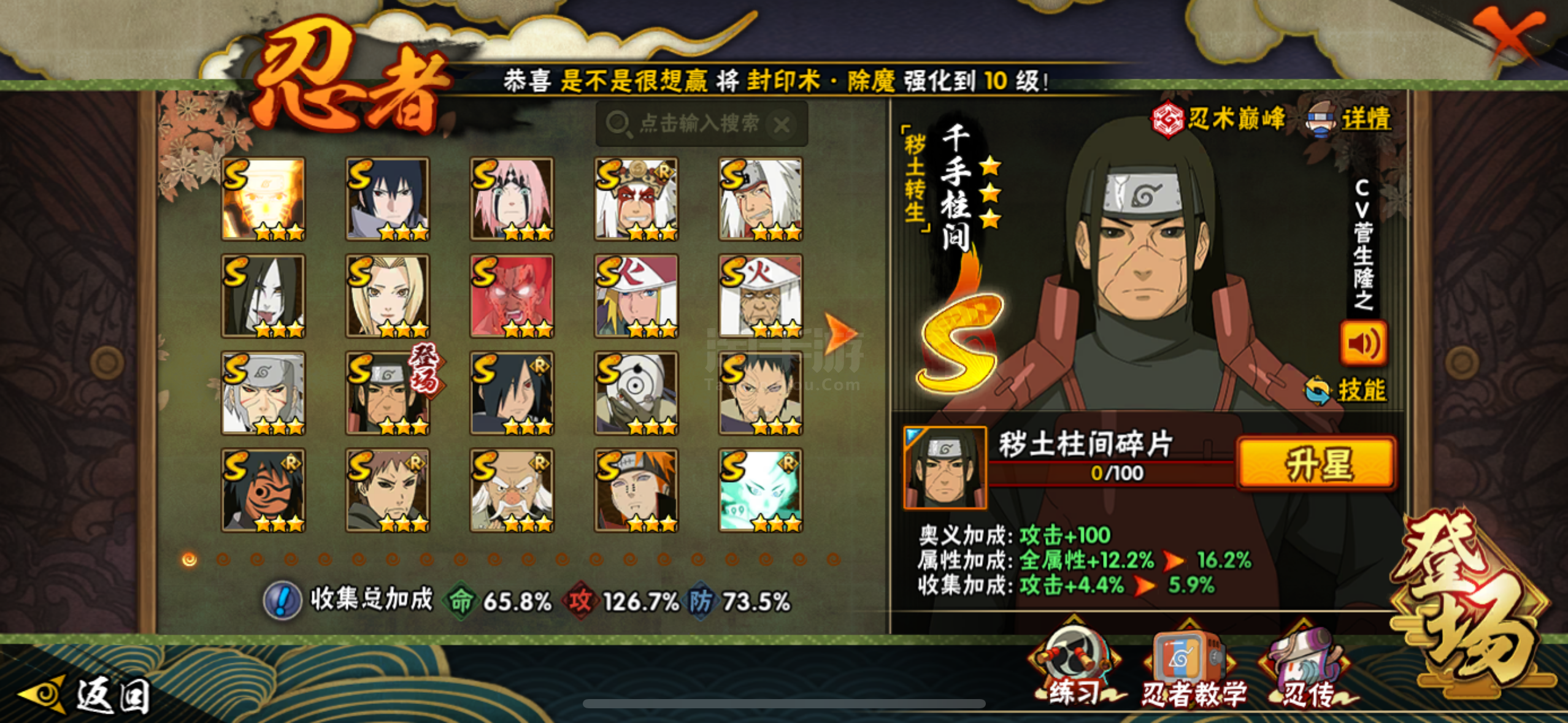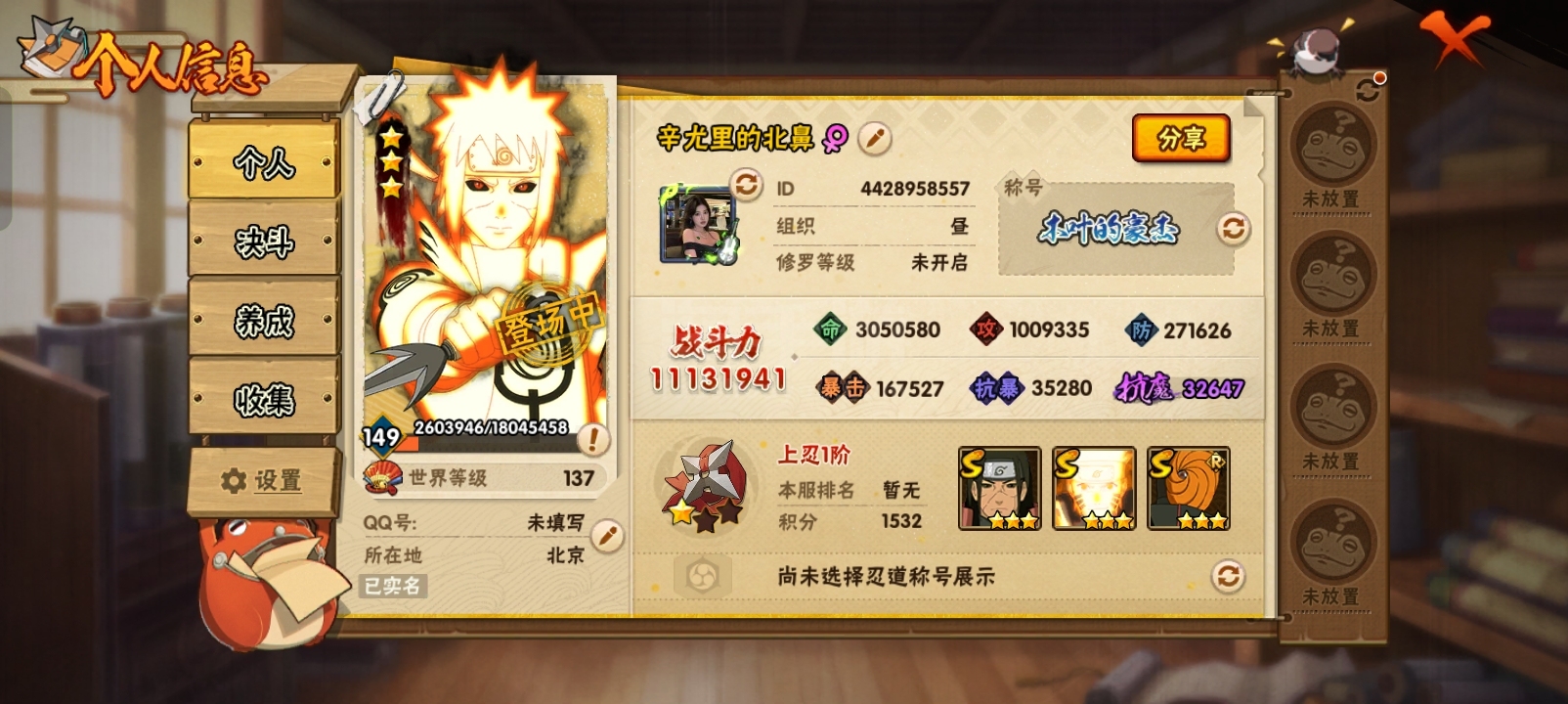 火影27s33a18通灵1100w战力,王者1典藏4珍品28传说73史诗2星传说