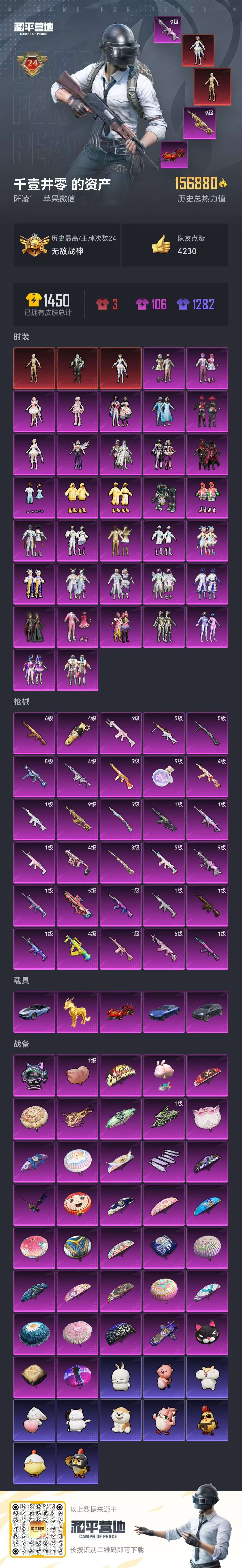 hs48961 苹果微-24王牌印记-有战神框-3红装-34粉装-30特效枪-5载具-156995
