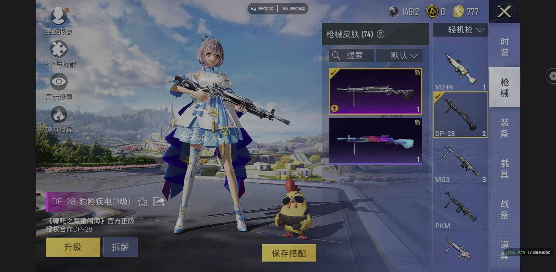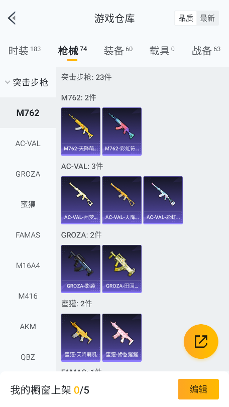 实名: 可修改 时装数: 42 枪械数: 74 战备数: 63 热门装扮: 洛天依,青空秋雨 稀有枪皮: 六级野牛-青空秋雨,三级Kar98K-巳巳如意,三级DP-28-豹影疾电