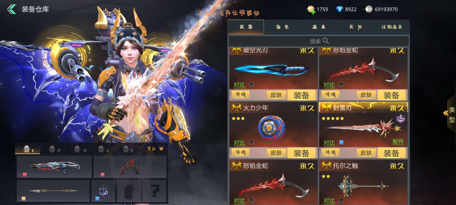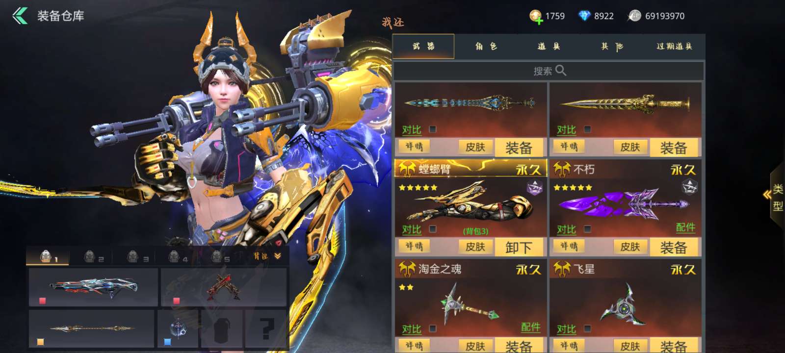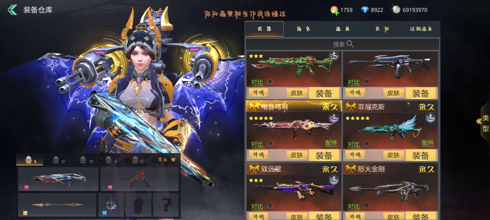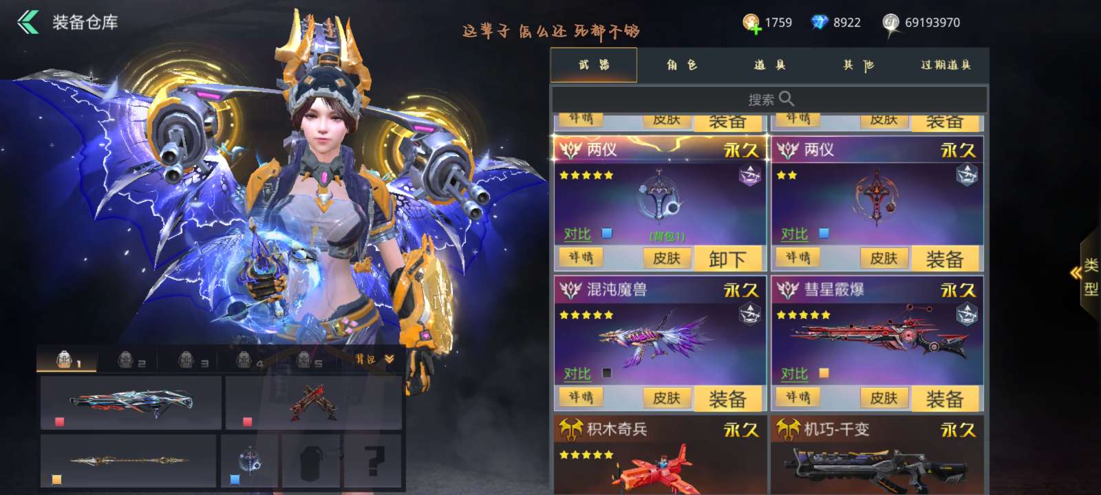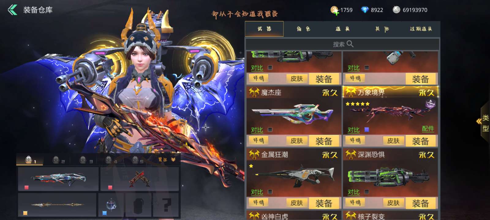 满觉万象电音棱光美杜莎广陵天际等等,全是极品娱乐武器,战力512w高战,瑶光五星一觉满强化精炼