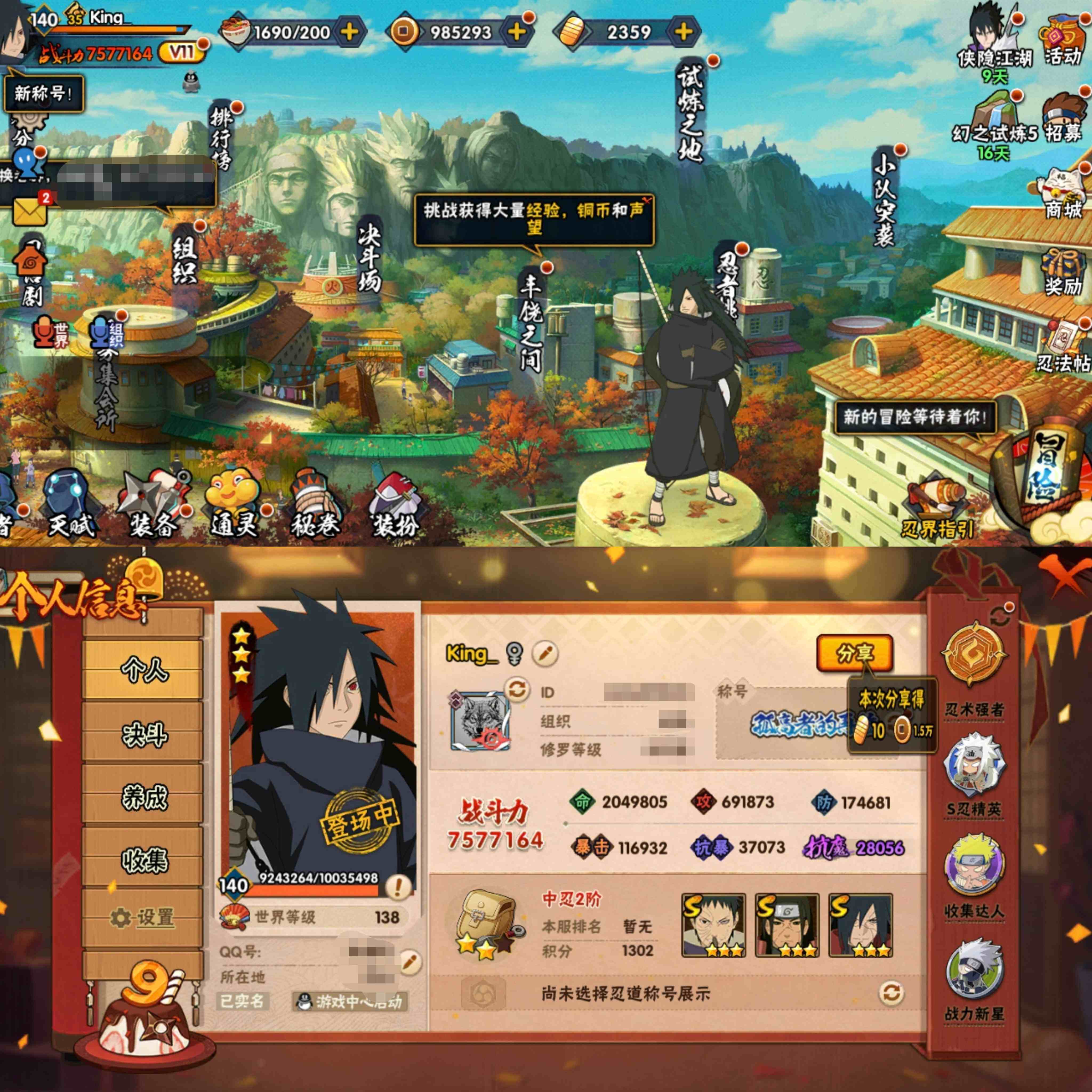 火影忍者【安卓QQ】t78,757万战,15s忍36a忍,漂泊六道万花筒佐助须佐卡卡西秽土柱间木叶