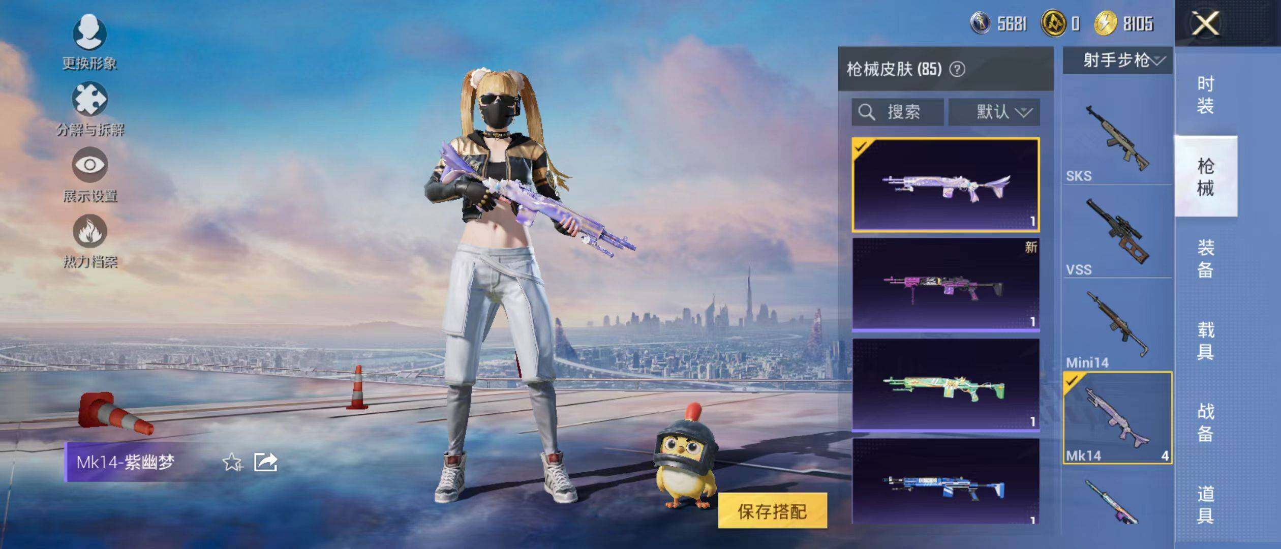 【粉色枪皮等级】:SCAR-L-锦绣绵绵(五级),Kar98K-巳巳如意(五级),DP-28-豹影疾电(五级),MG3-洛神天依(四级)