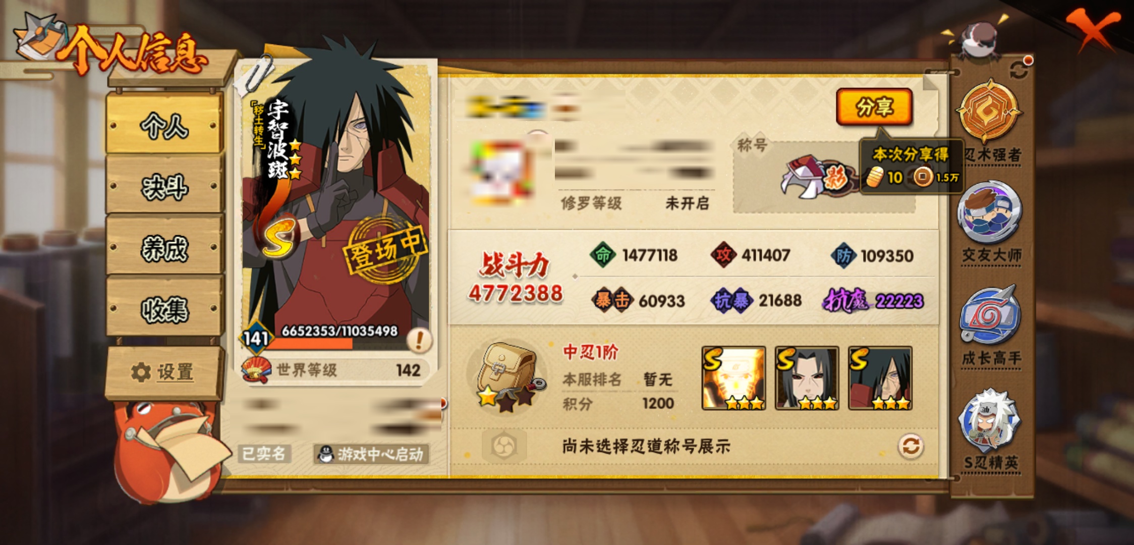 火影忍者【安卓QQ】战斗力:477W+;本服排名:1427 ;