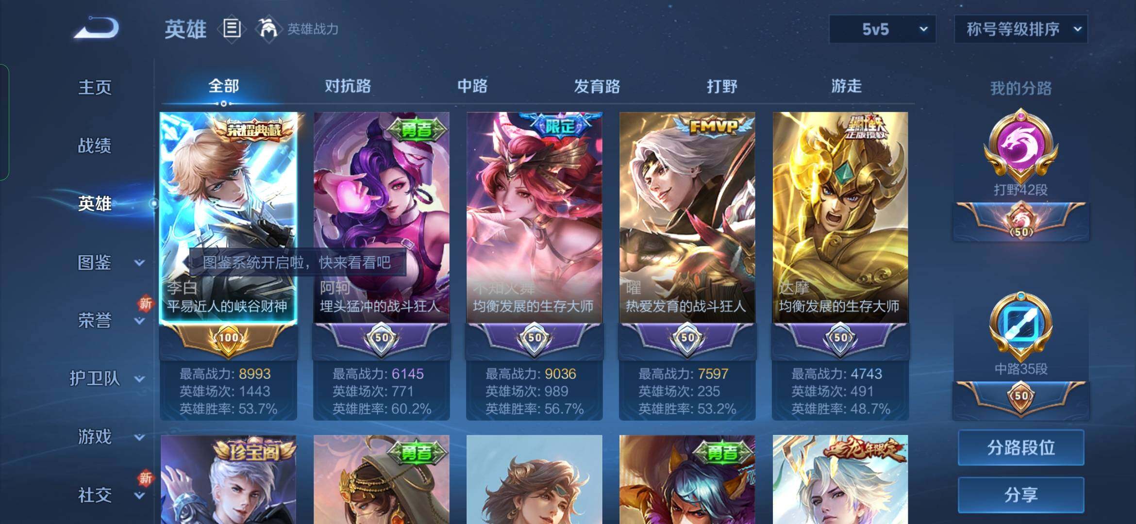 【热门打野号·42段打野·金标李白·9000战力火舞·多热门星史诗套装