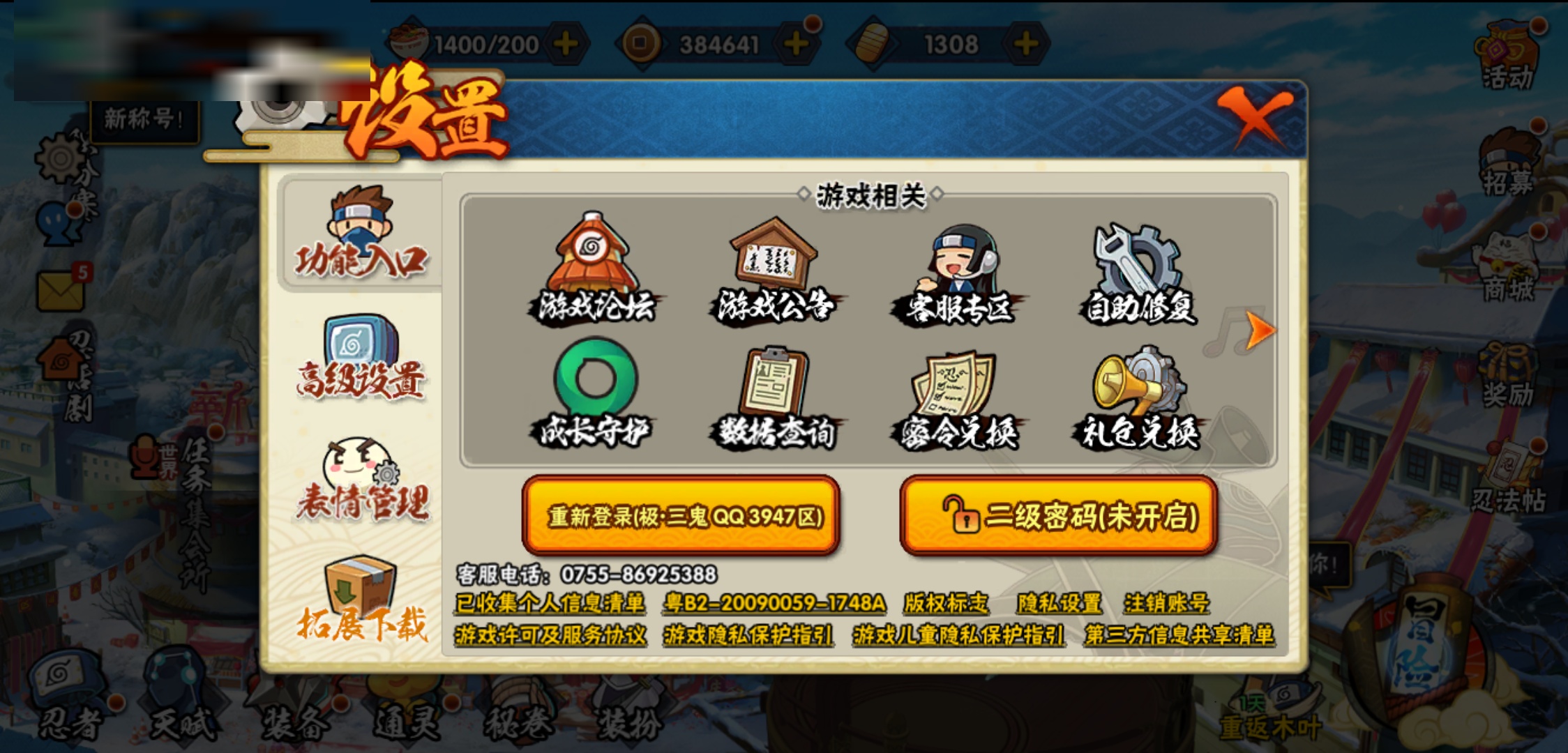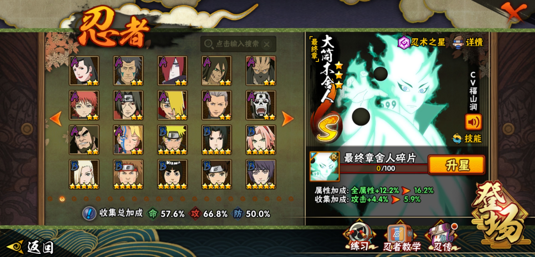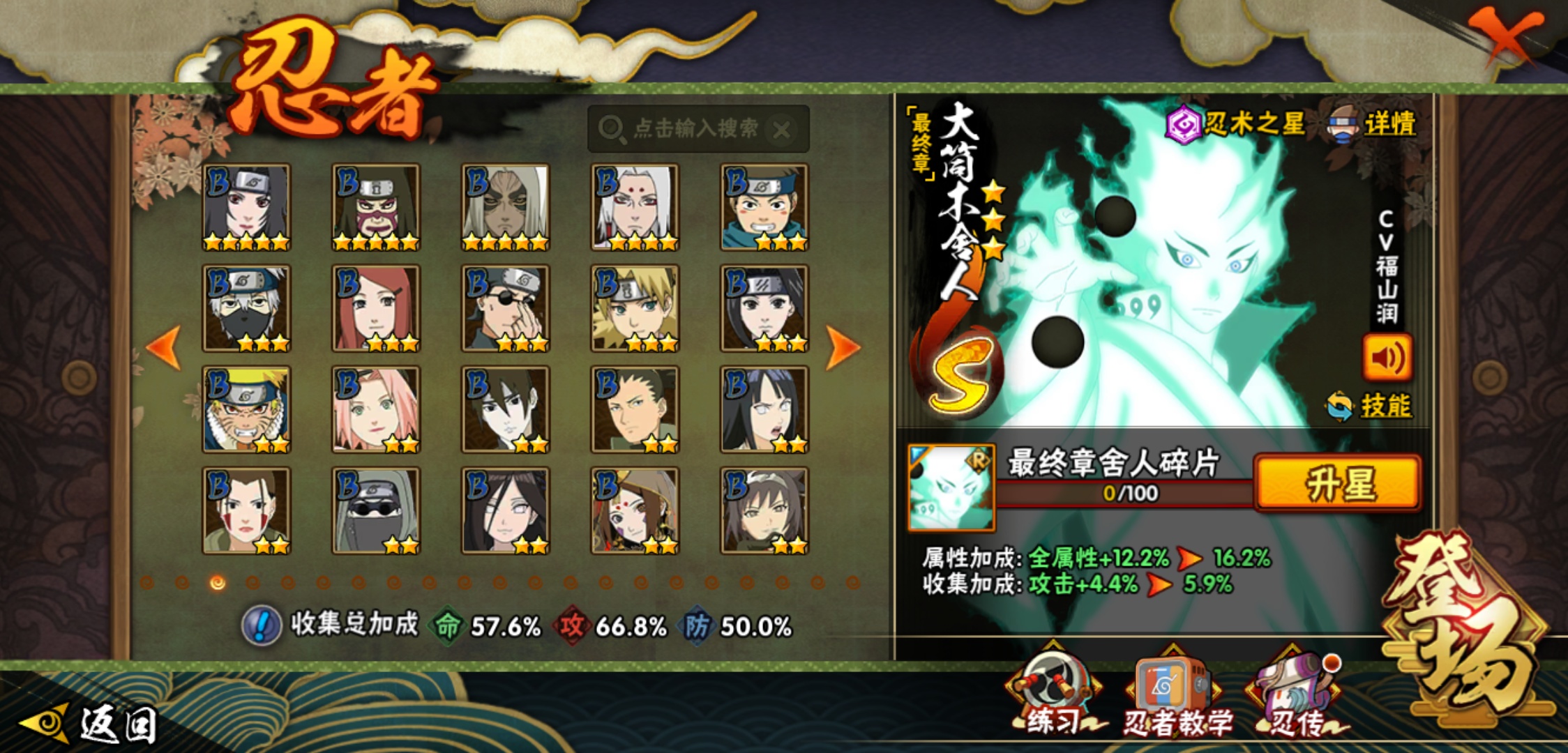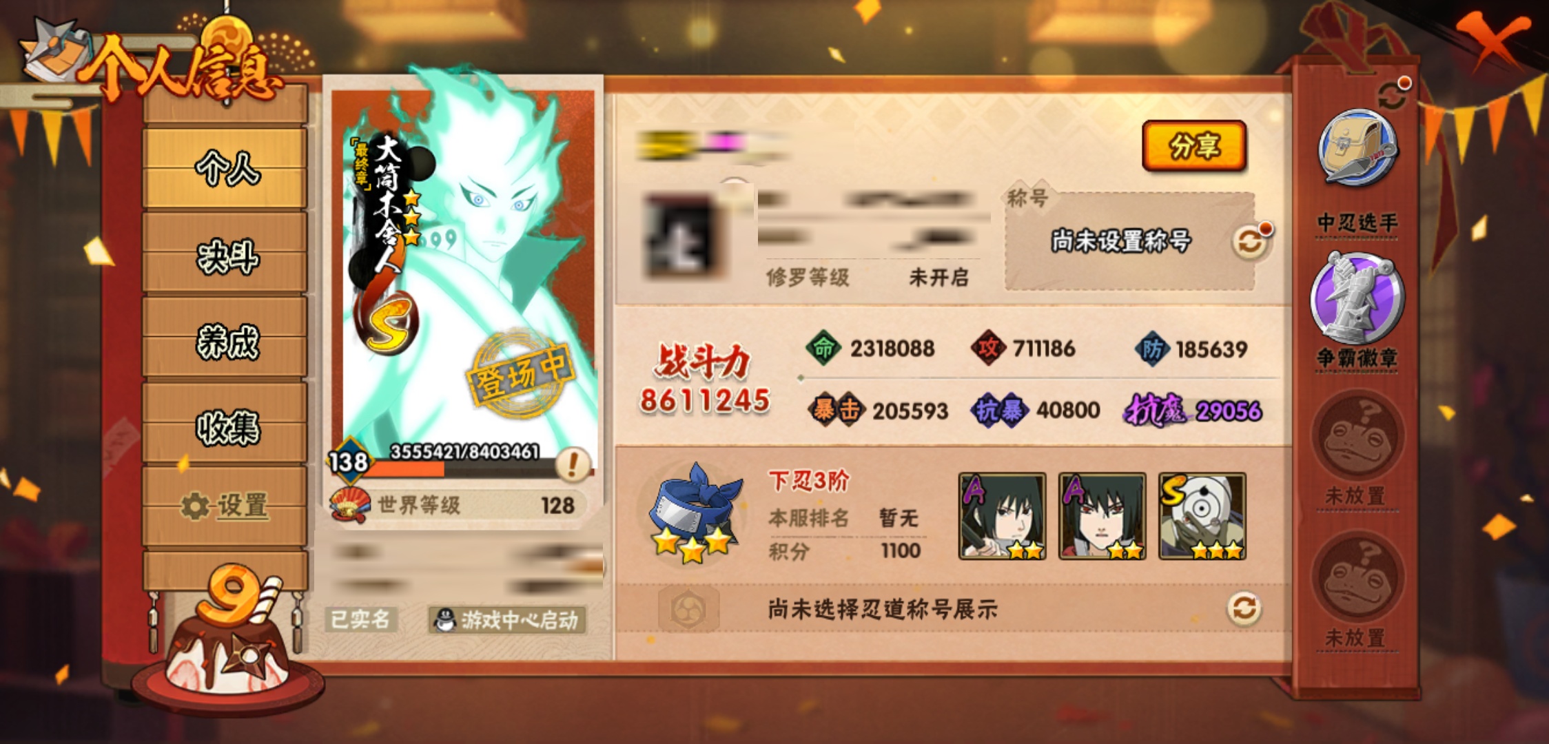 火影忍者【安卓QQ】战斗力:861W+;段位:下忍3阶