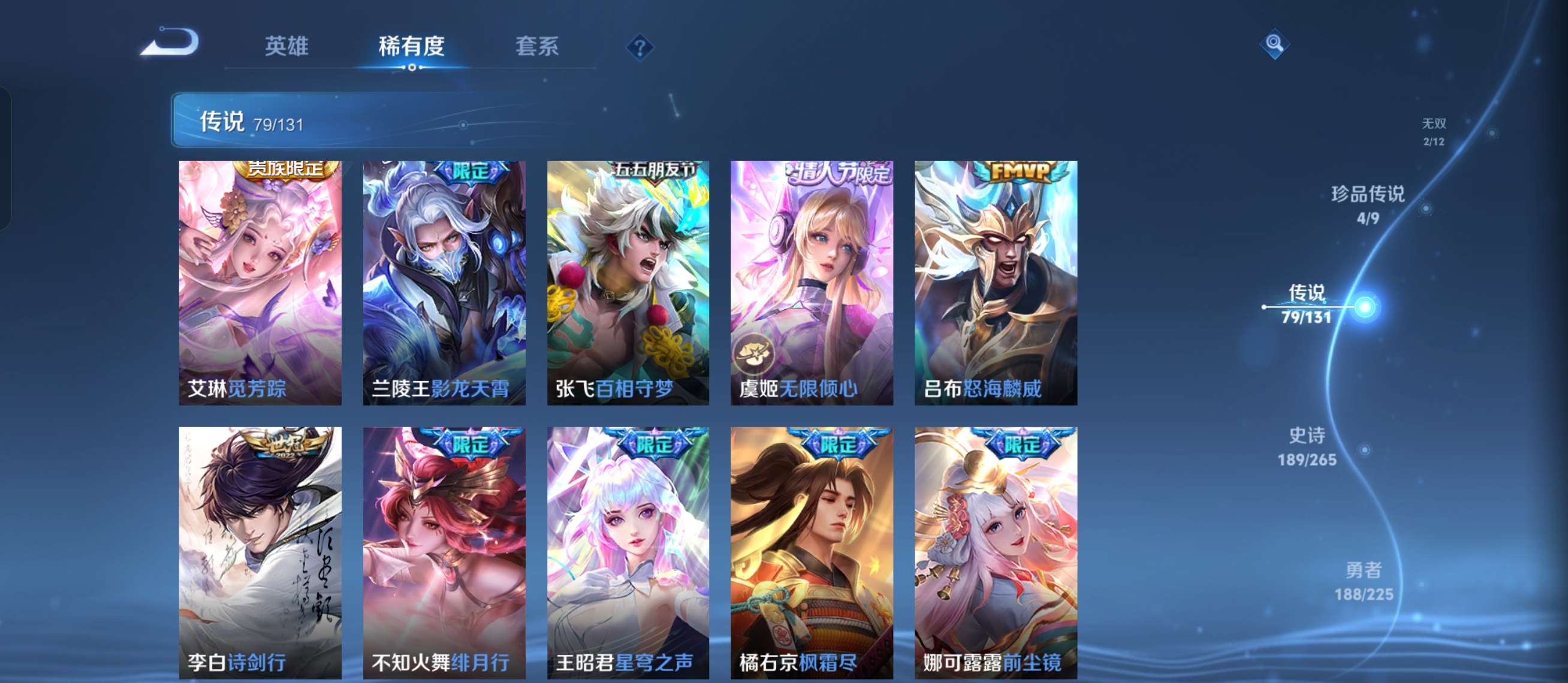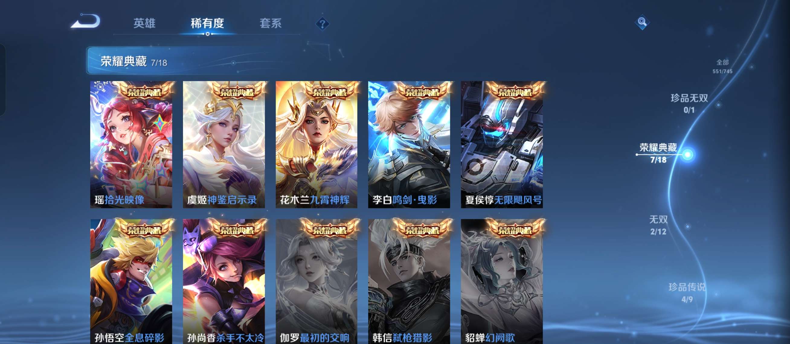 V10,551皮肤,8典藏(余1水)79传说 可二次
