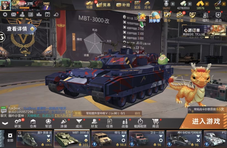 巅峰坦克【安卓官方】3000六件套,三个5星指挥官,4战神甲