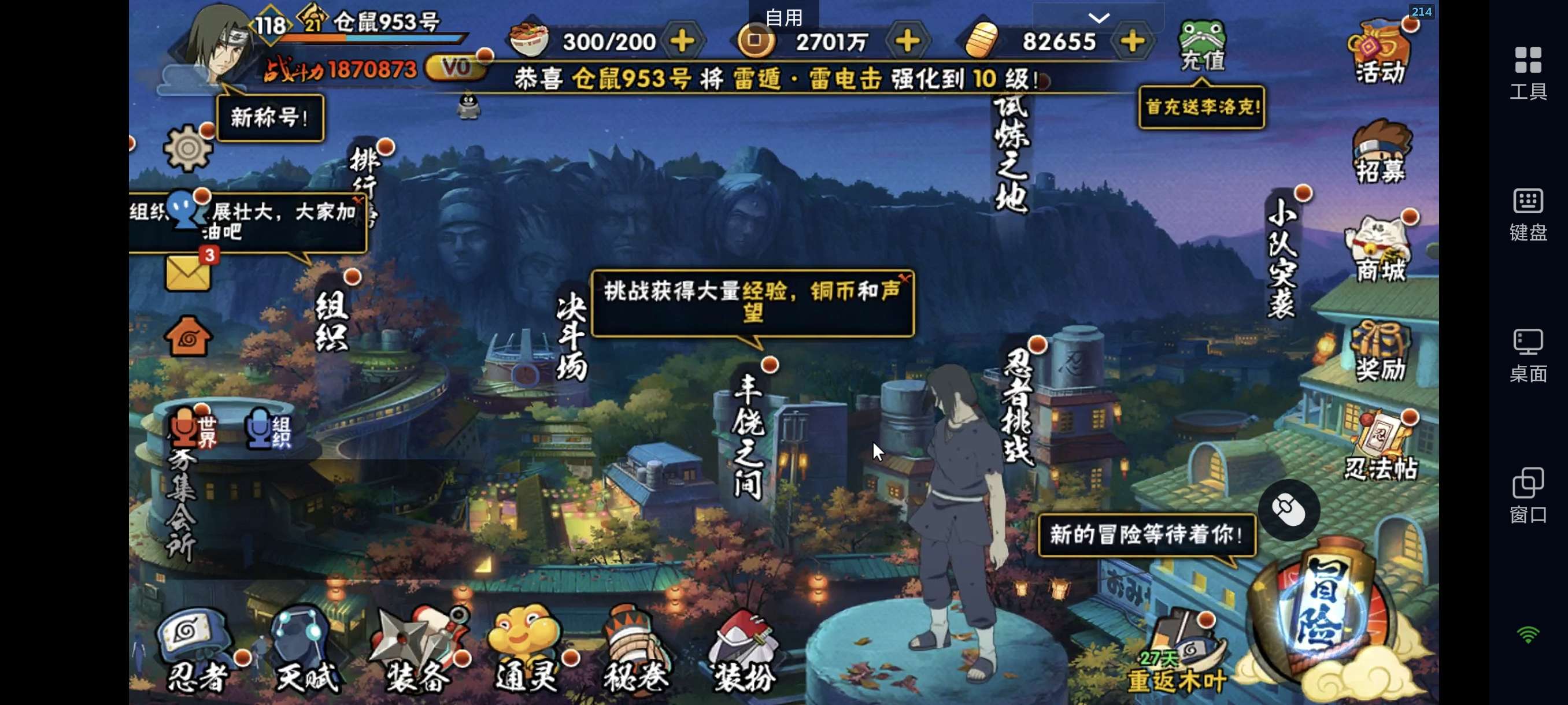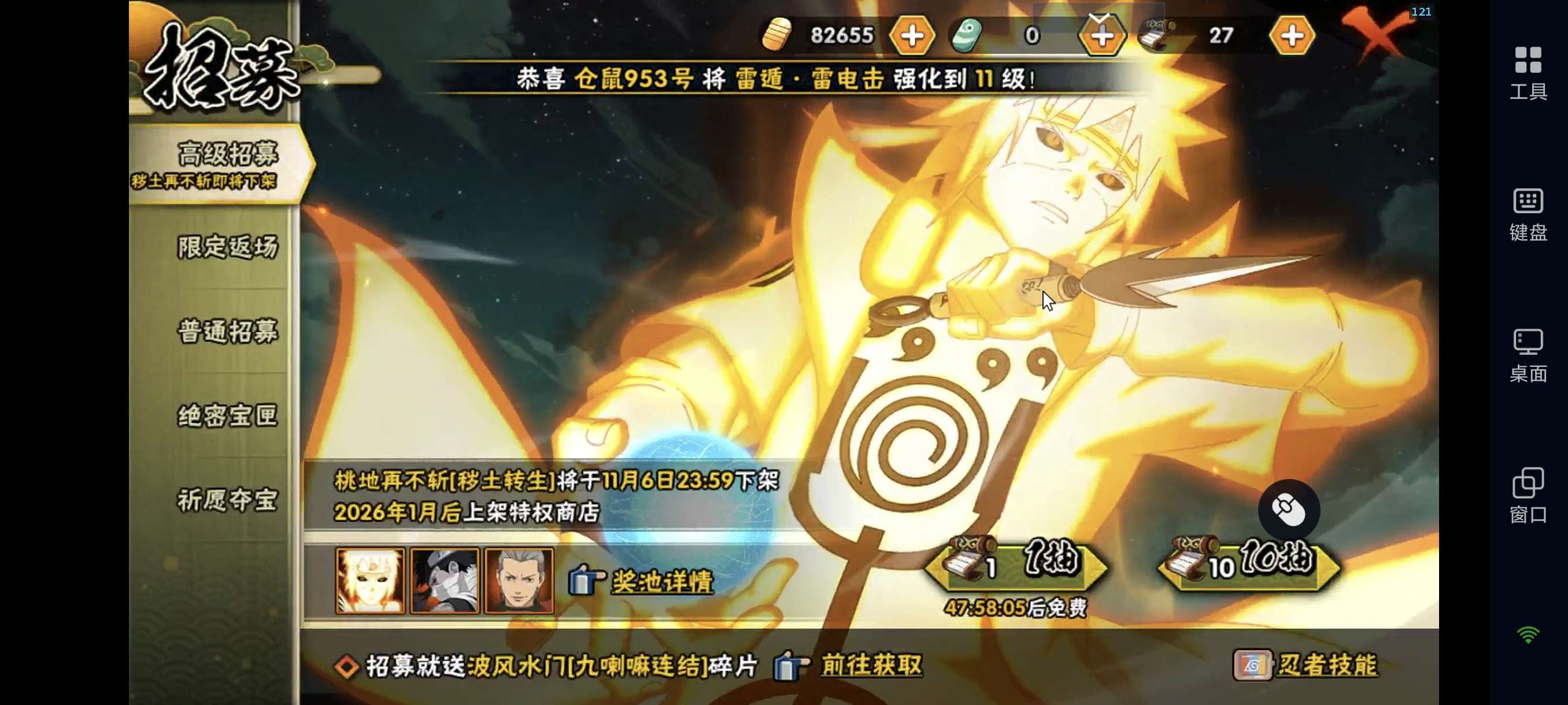 【苹果】仓鼠金币953号,82655金币,27张高招卷,火影忍者手游QQ区,蜀面自来也+百战鼬+百战
