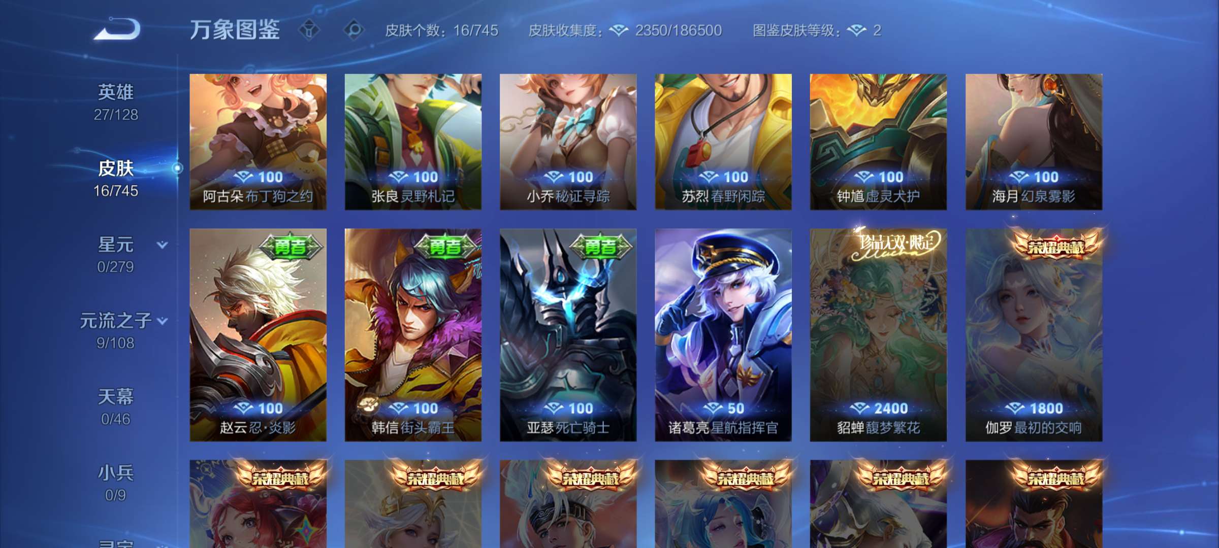 王者荣耀【安卓QQ】干将久胜,后羿神树,元法干将高胜率下面,100多皮肤碎片