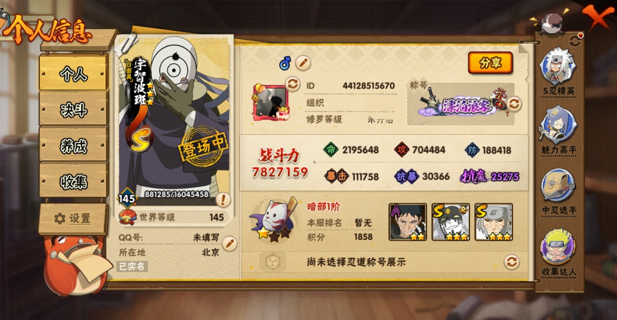 火影忍者【安卓QQ】火爆区人多热闹,能二次修改实明认证,号非常安全,有198元直购点券忍者漂泊带土新春鼬泳装小南,看图