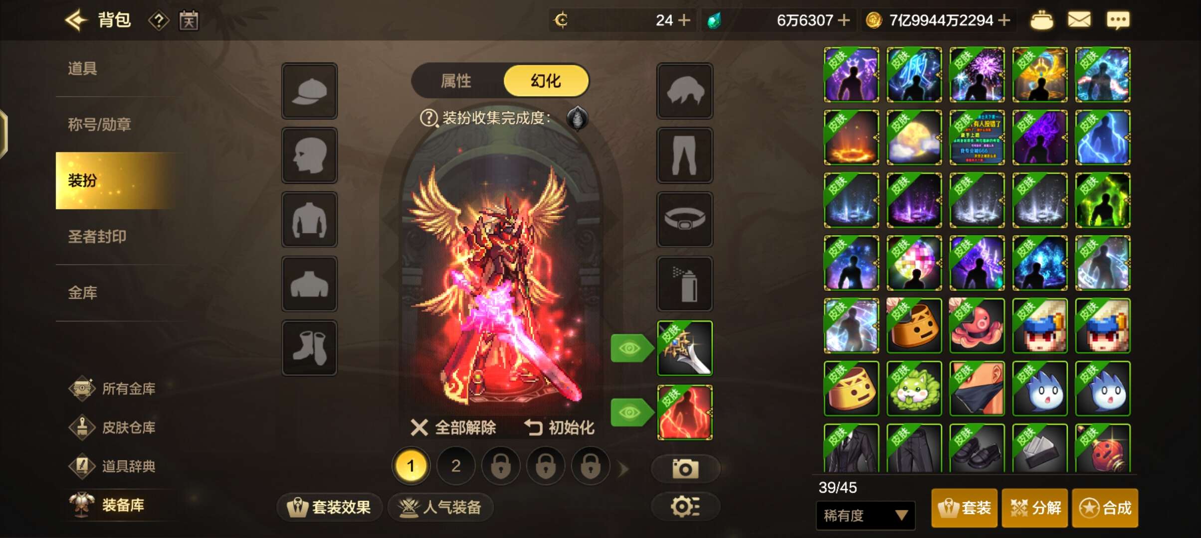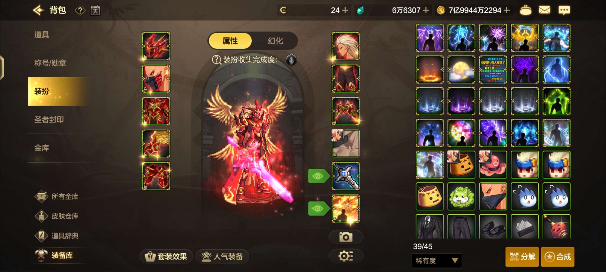 没有新鞋子宝珠和至尊光环 除了几个不玩的搬砖号 其他都在八万以上 套装基本齐了