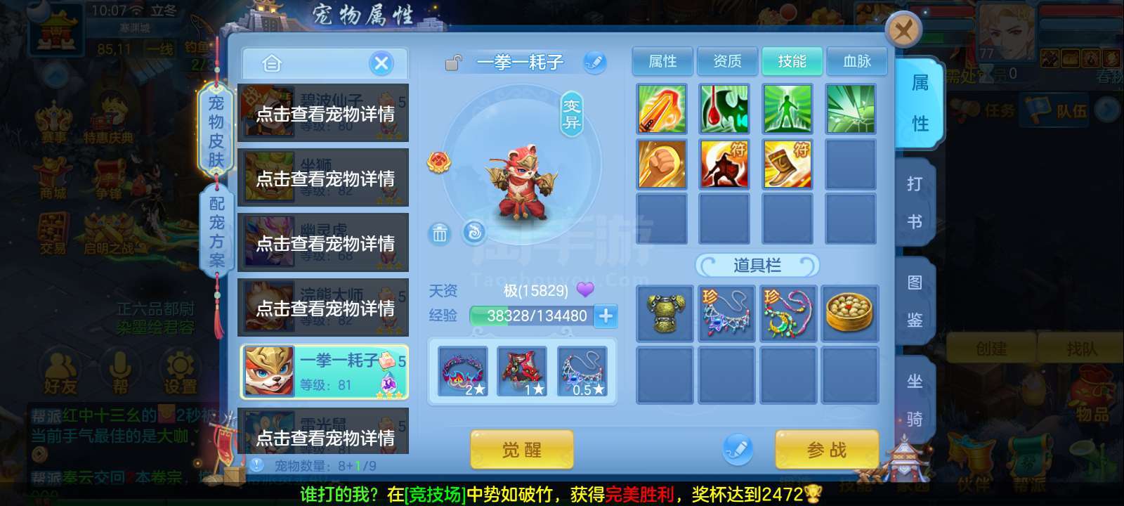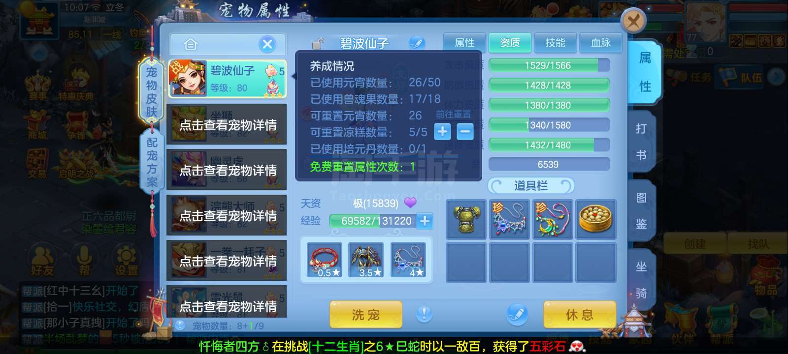 天行健,5技能极品大波 两个五技能极品浣熊 一个五技能极品石狮 极品红心六级能老虎 五技能老鼠