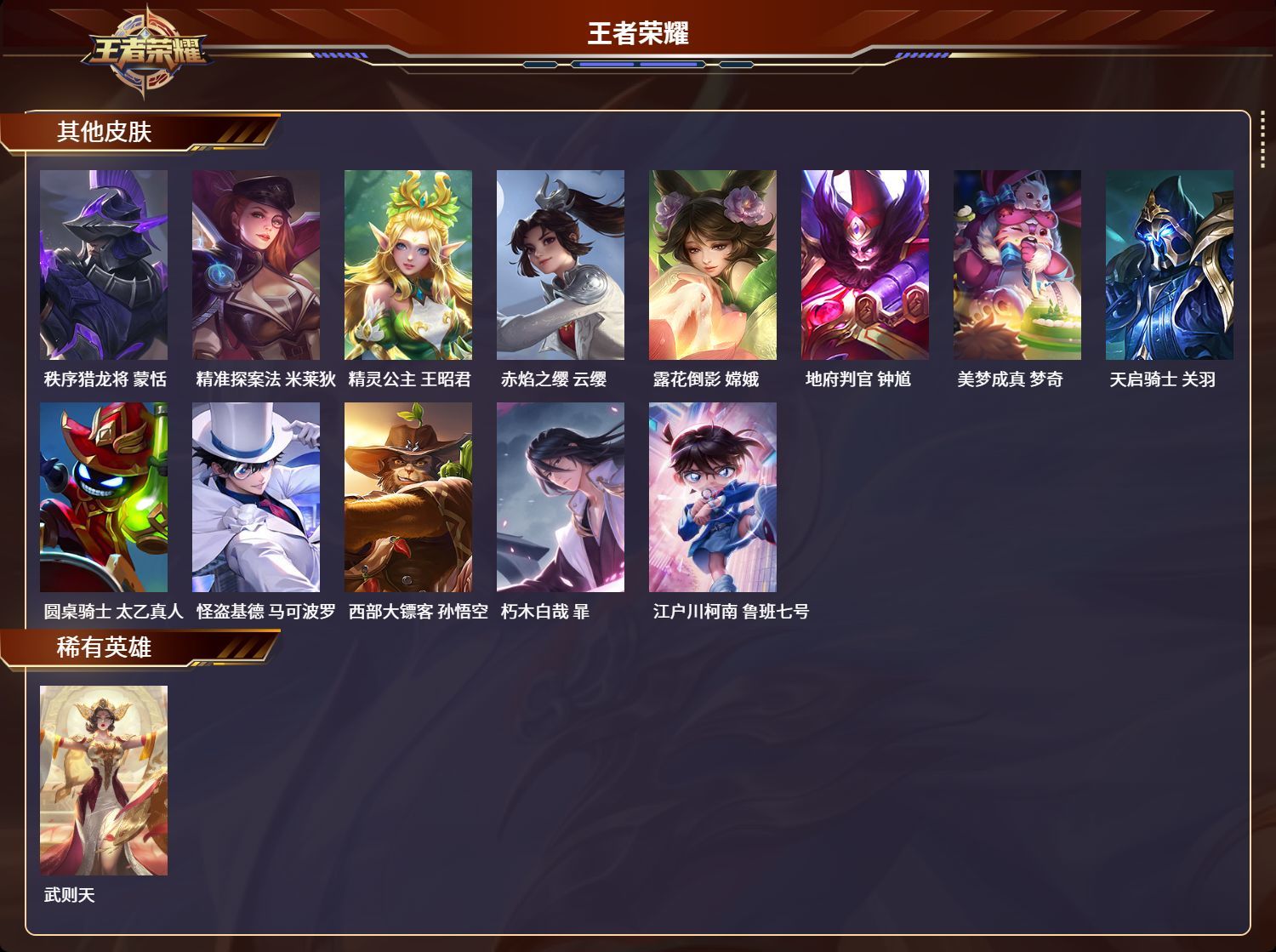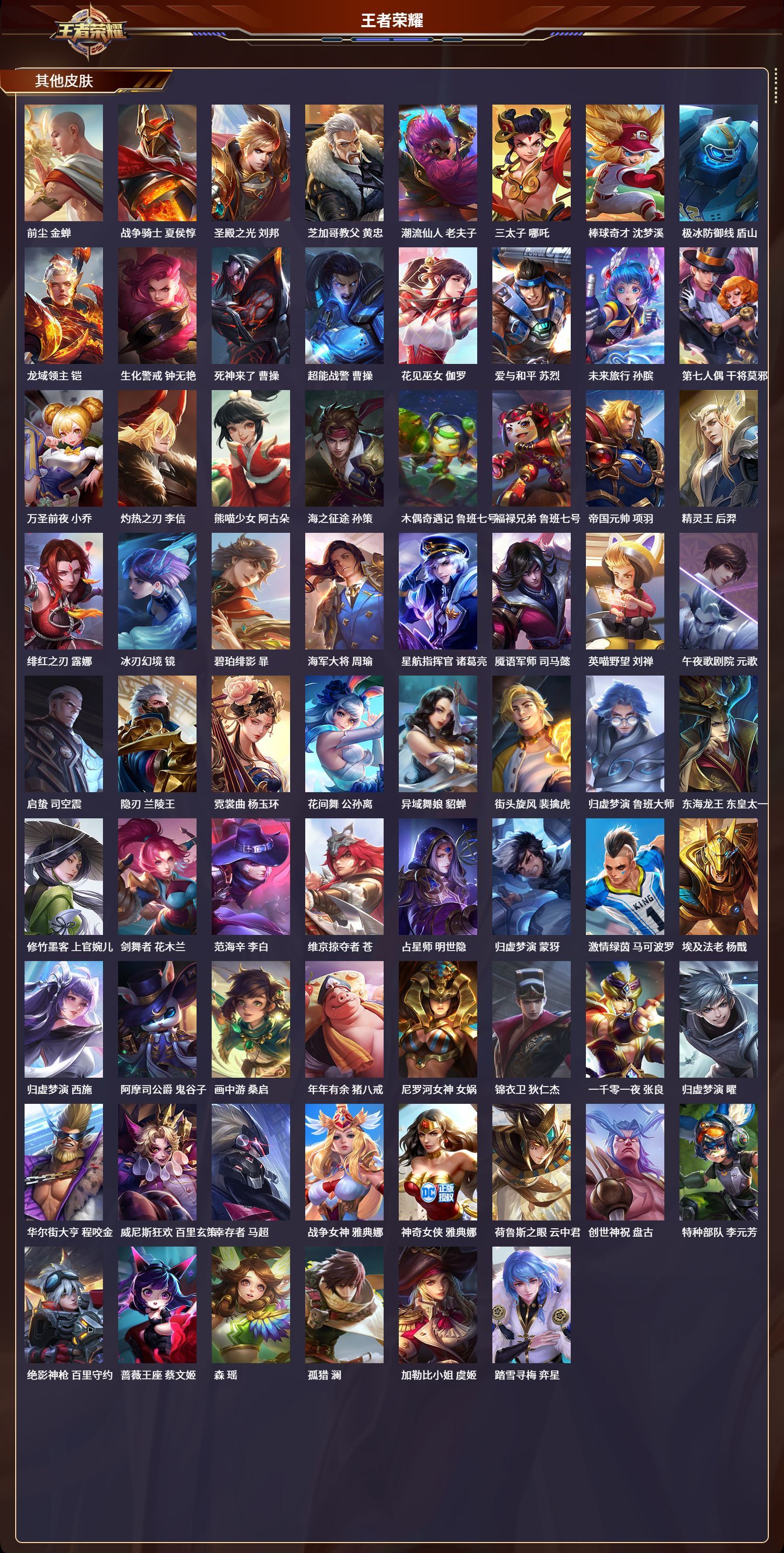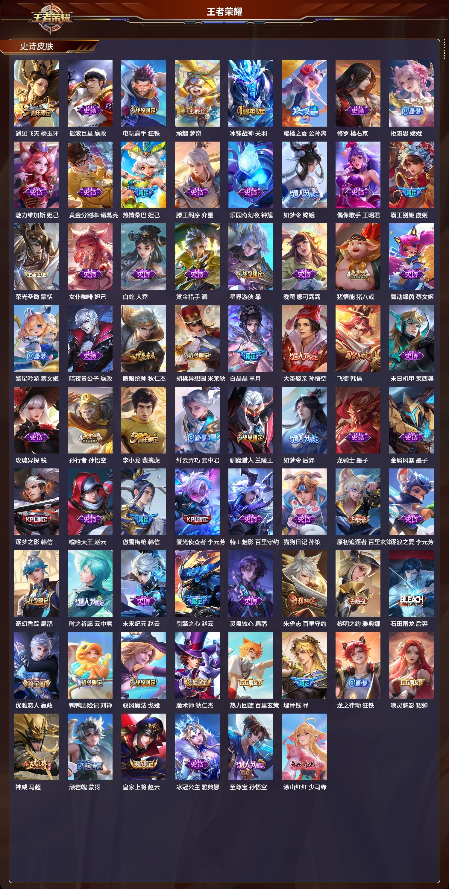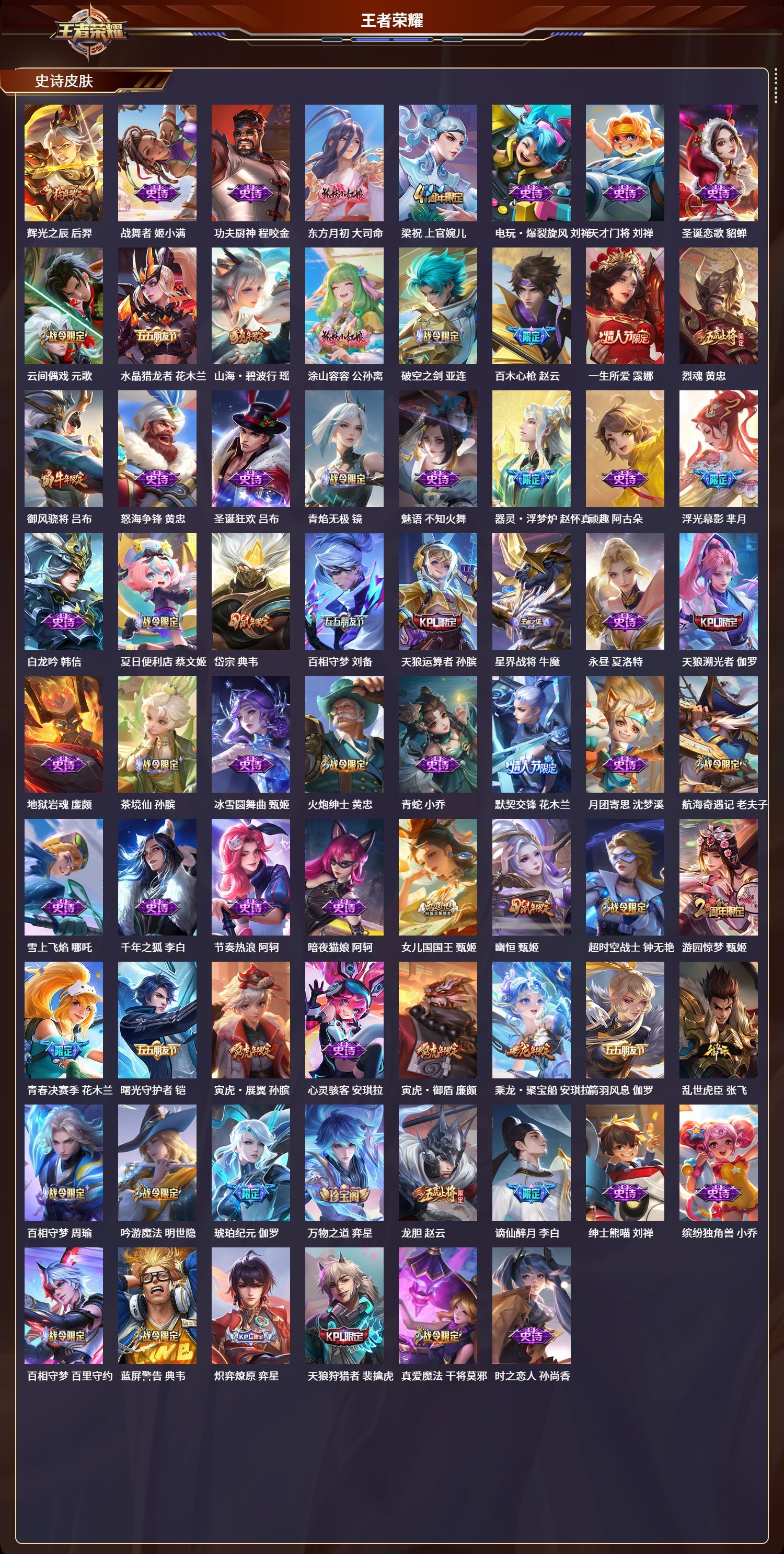 苹果QQ/最强王者/569皮肤/128英雄/8典藏/0珍品无双/2无双/3珍品传说/86传说/190