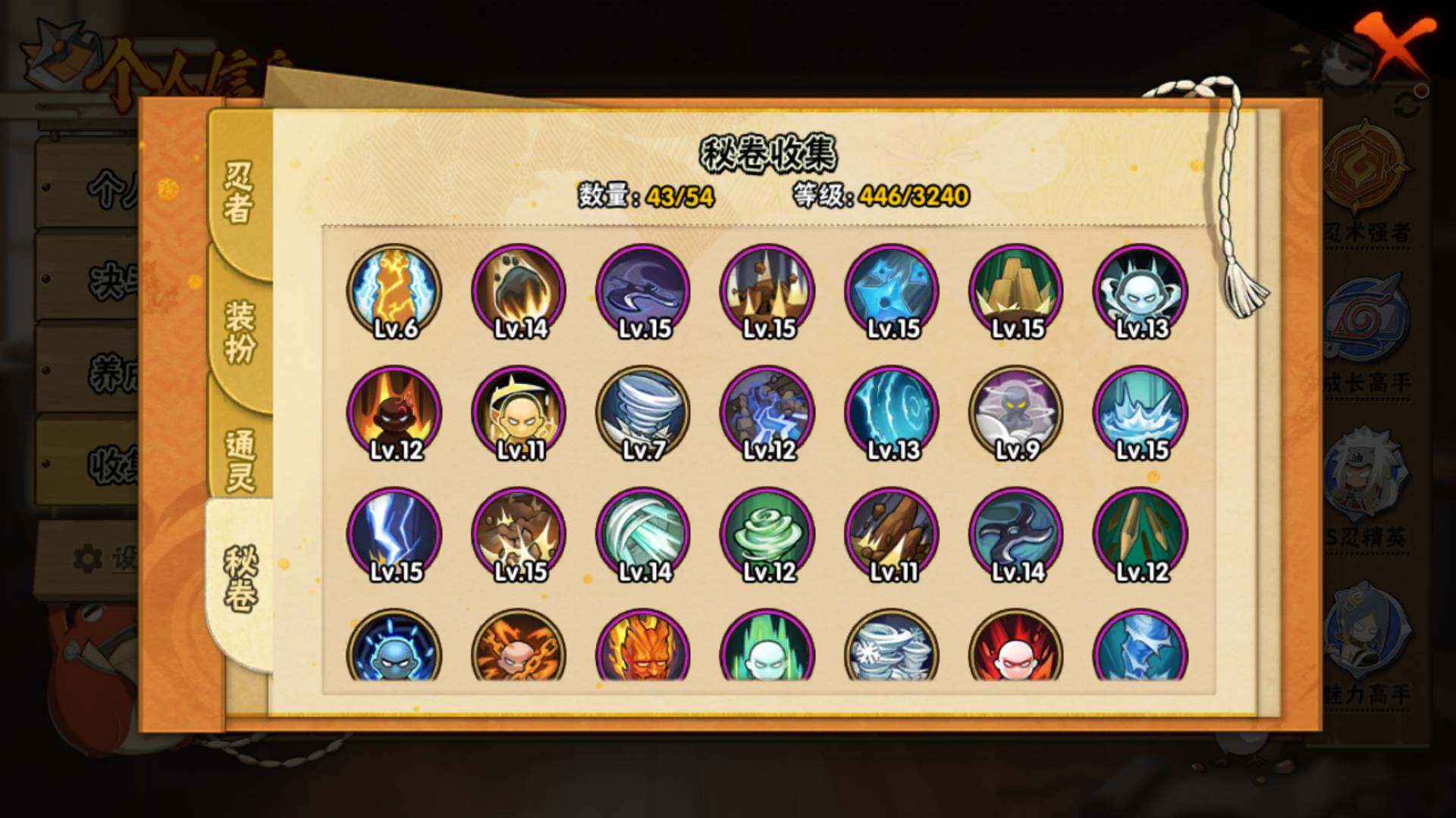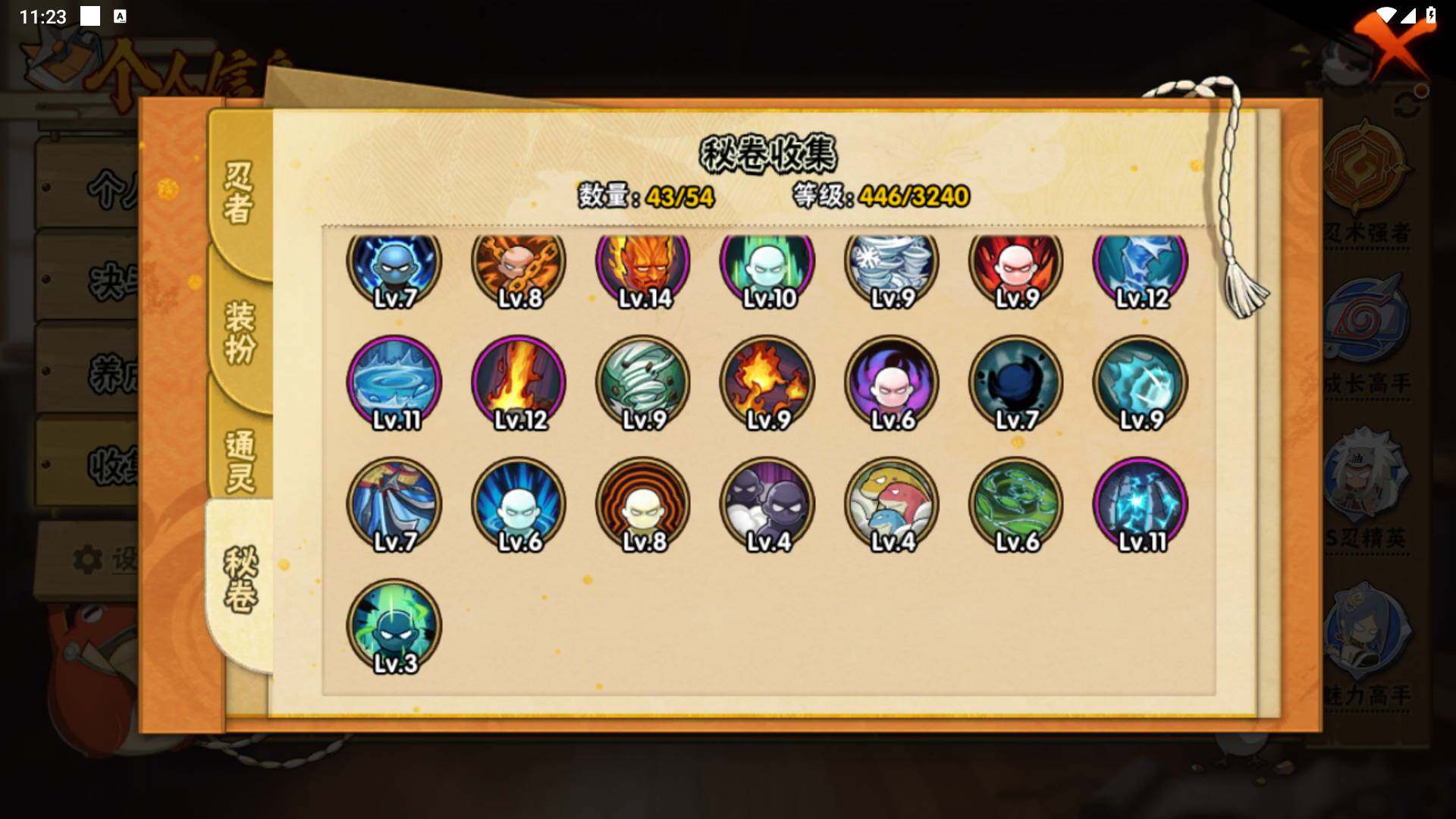 火影忍者【安卓QQ】v12,442w战力,11S级忍者数-42A级忍者数,秽土柱间54片,木叶创立
