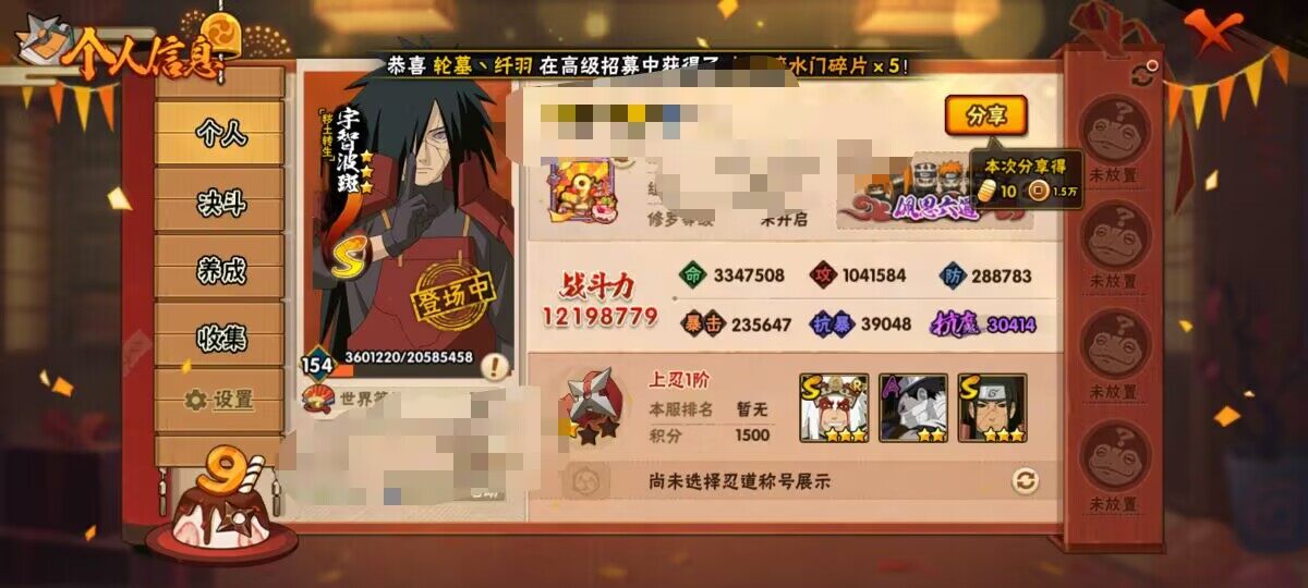 火影忍者【安卓QQ】V6/战力1219W/S忍20/A忍38/
