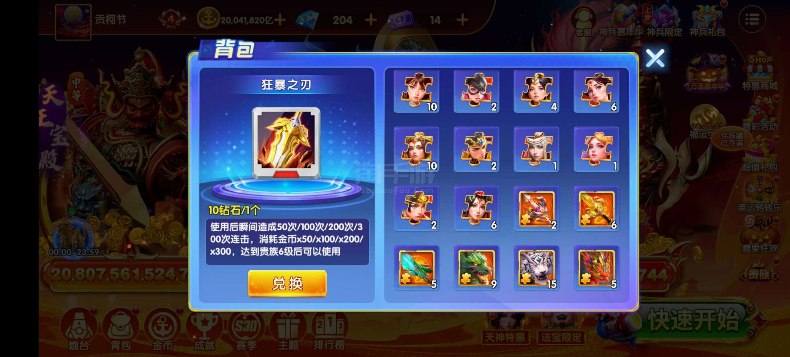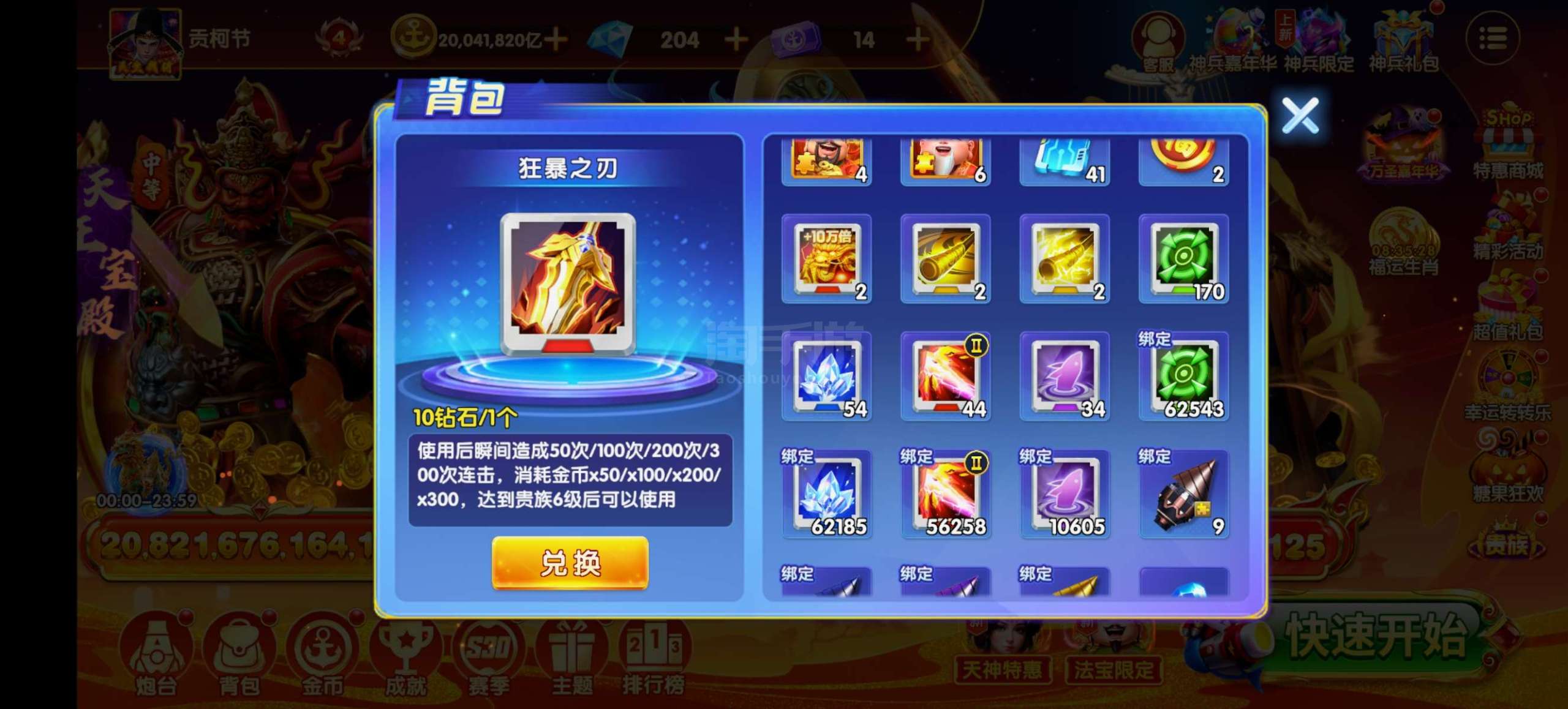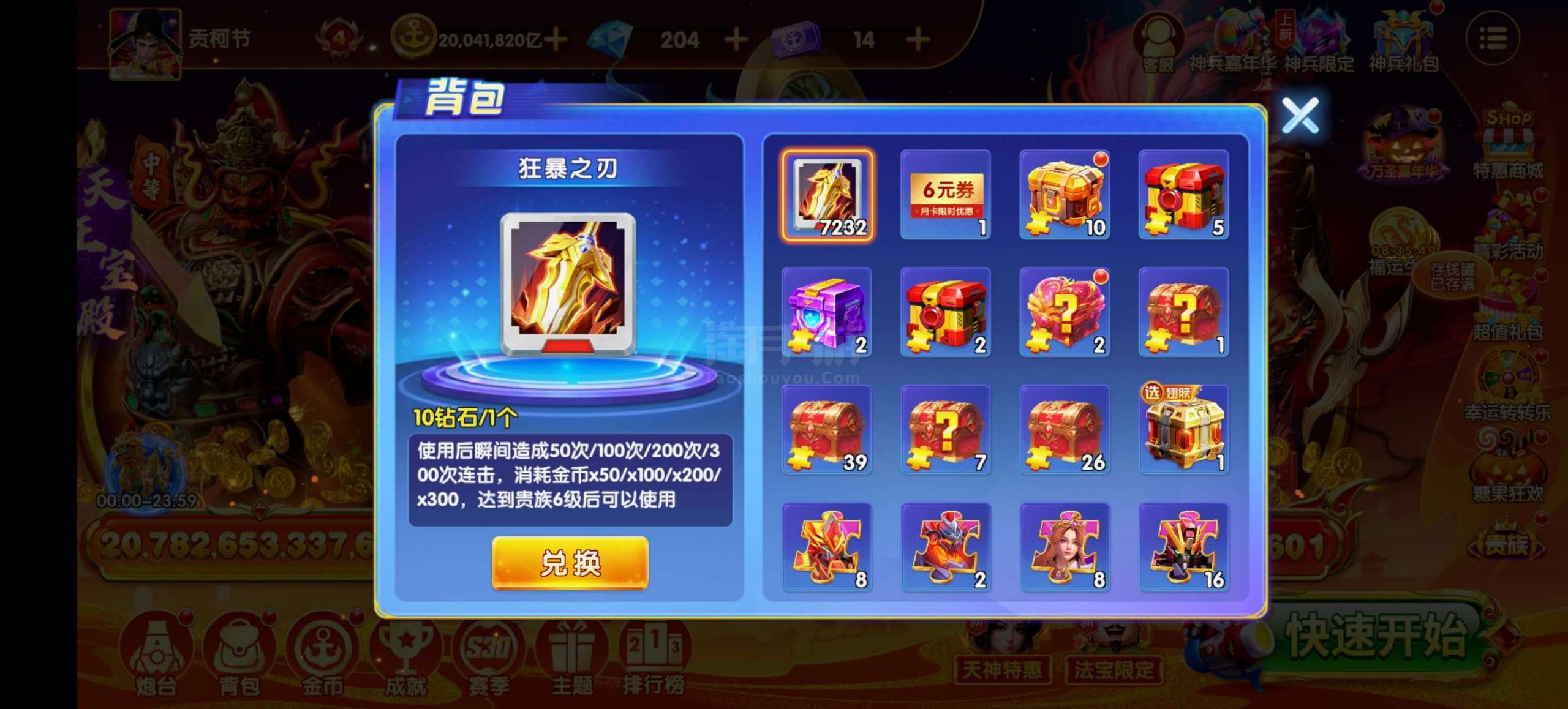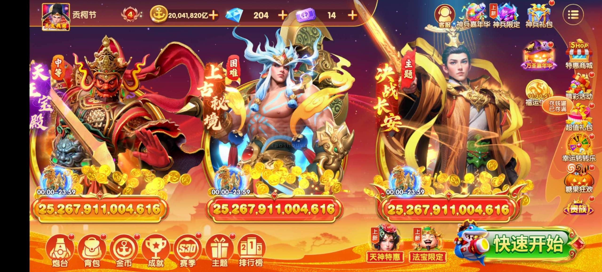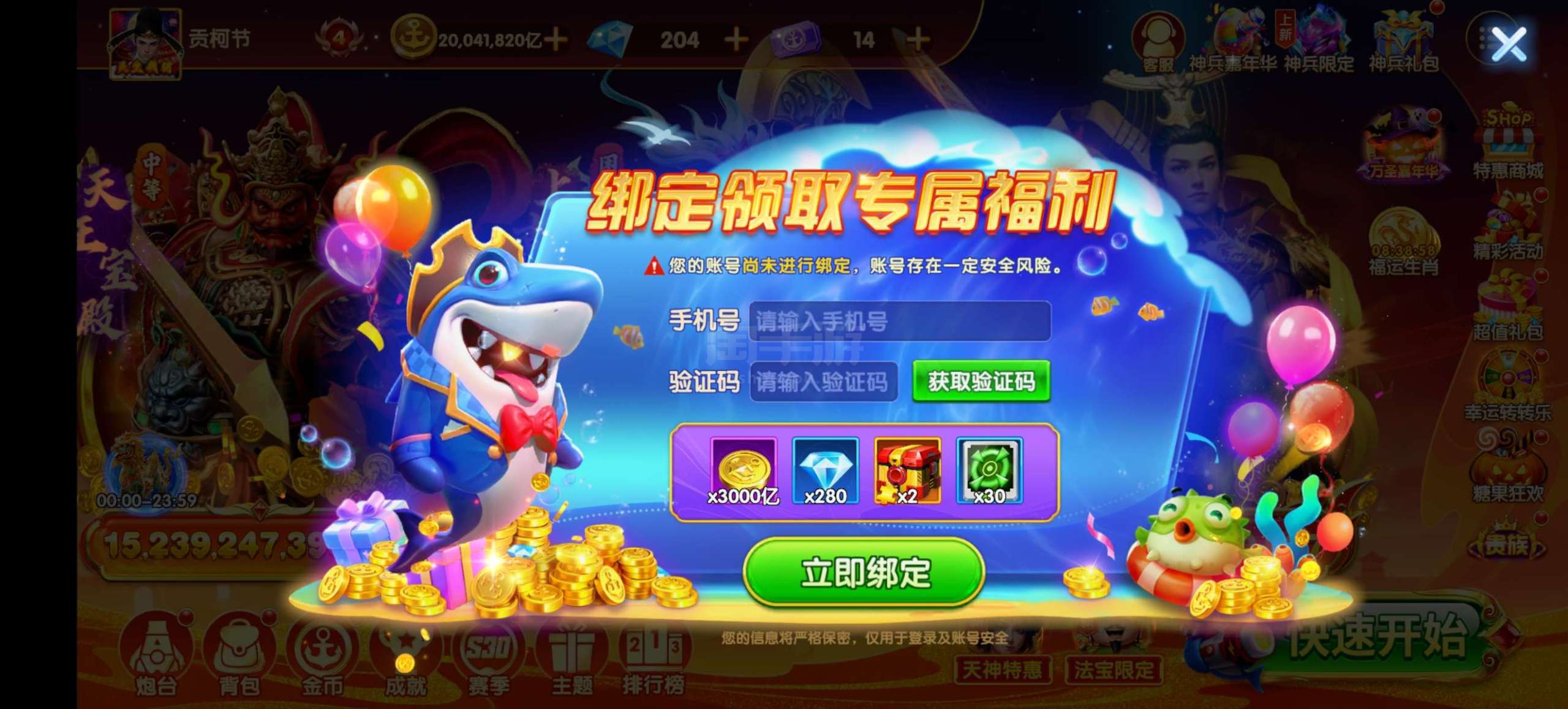 乐乐捕鱼【安卓官方】乐乐贵族4扩大版+2000万亿金币+四圣之力+马上女神联盟+120亿炮台基础!道具神兵多多带号一起出