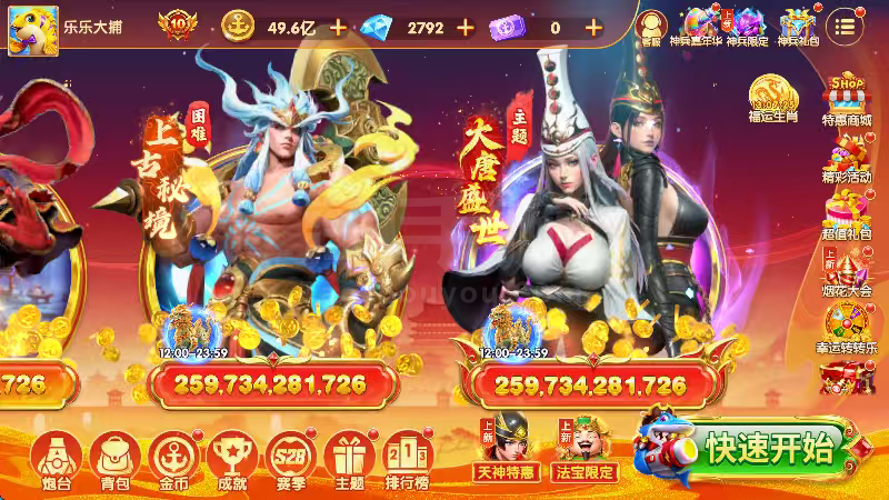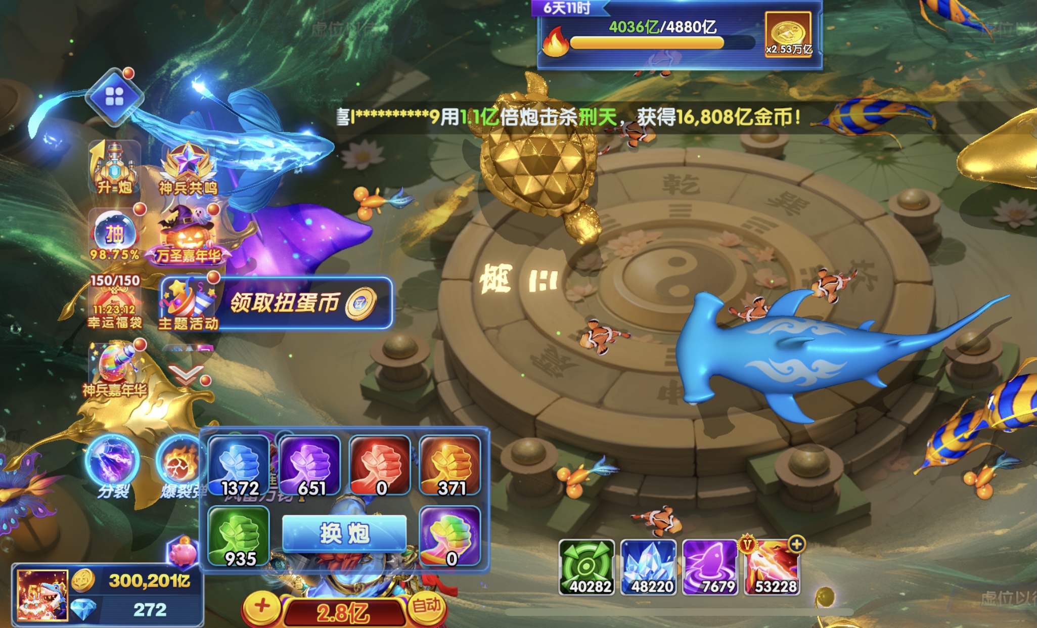 乐乐捕鱼【安卓官方】V9,30万亿,2.8炮台,3阶雷震子其他的道具一大堆
