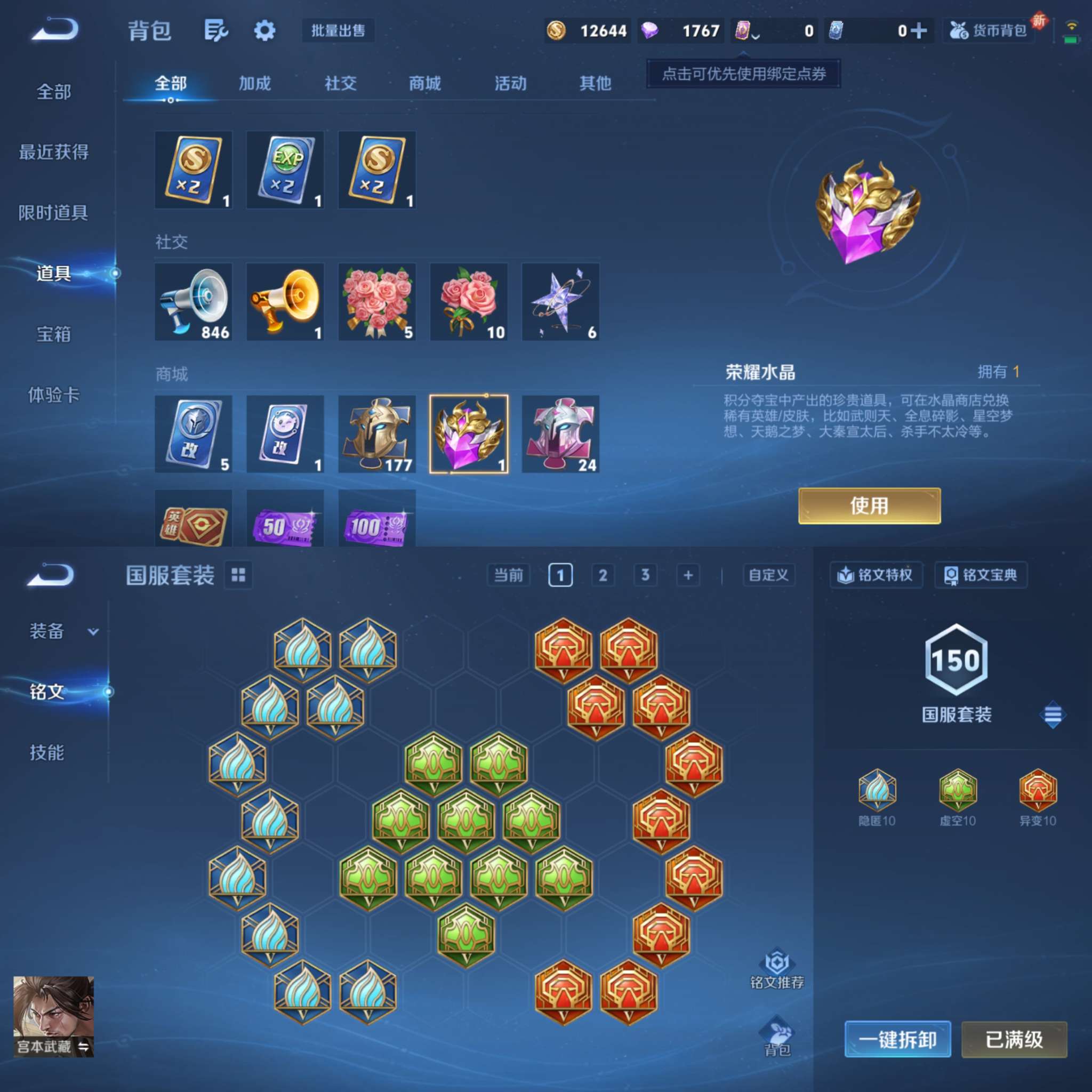 王者荣耀【安卓QQ】背包有荣耀水晶幽冥之眼星域神启 幻光神枪 愿照岁时盈 鸣野蒿 地狱之眼 【热门】涂山容容 暗影游猎