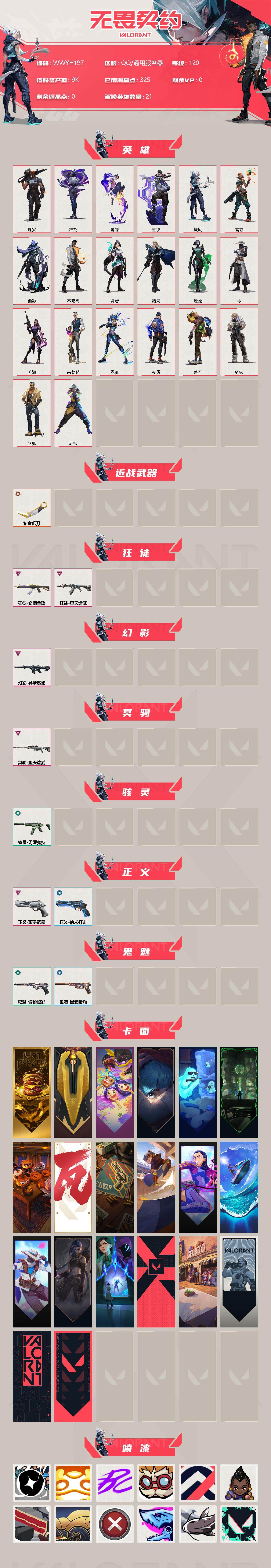 【WWYH197】终极*1/卓越*5/皮肤*13/等级*120/段位:白银/幻棱/炼狱/维斯/暮蝶/钛狐/壹决/捷风/雷兹/幽影/不死鸟/贤者/猎枭/蝰蛇/零/芮娜/尚勃勒/霓虹/夜露/盖可/钢锁/近战武器-紫金爪刀/狂徒-堕天遗武/狂徒-紫阙金琅/幻影-异鳞魔蛇/冥驹-堕天遗武/骇灵-无限竞技/正义-离子武器/正义-纳米打击/鬼魅-诡秘蛇影/鬼魅-星云暗涌/终章:激斗汉堡 卡面/进入射程 卡面/瓦娃脸雪糕 P2 卡面/《双城之战》拥抱 卡面/精灵大战 卡面/欢迎来到底城 卡面/南瓜盛典 卡面/