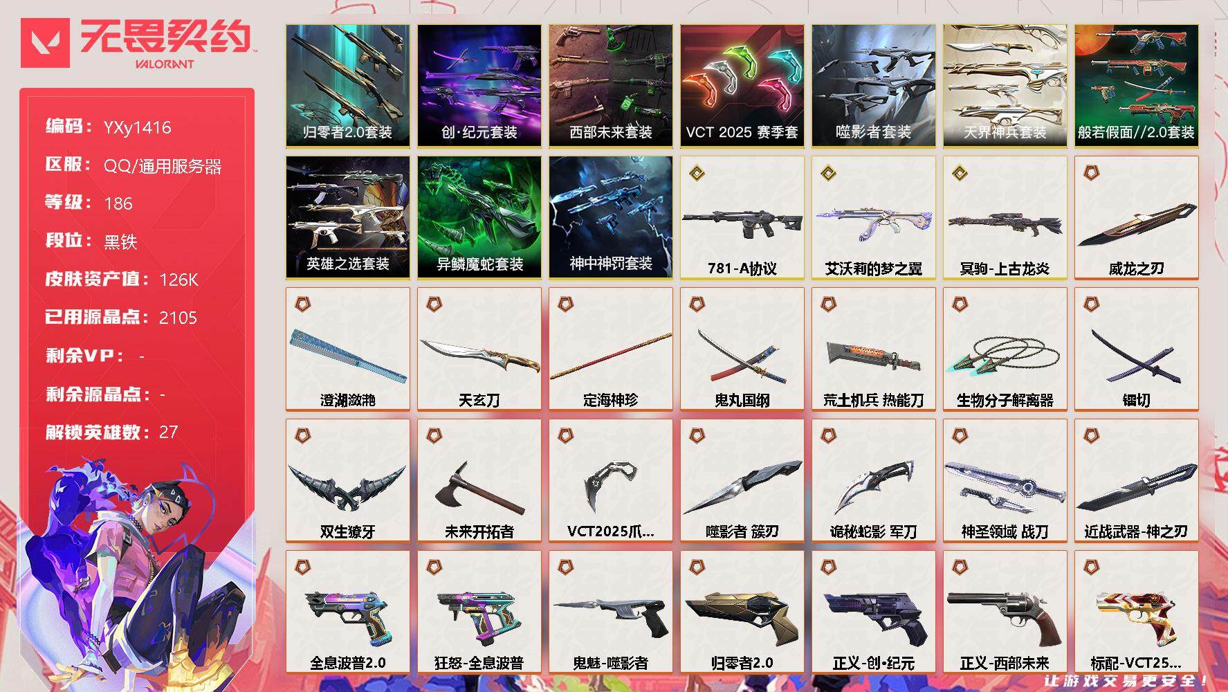 无畏契约【端游】Lv187|未定级, 刀皮数量21,枪皮数量154(绝版6