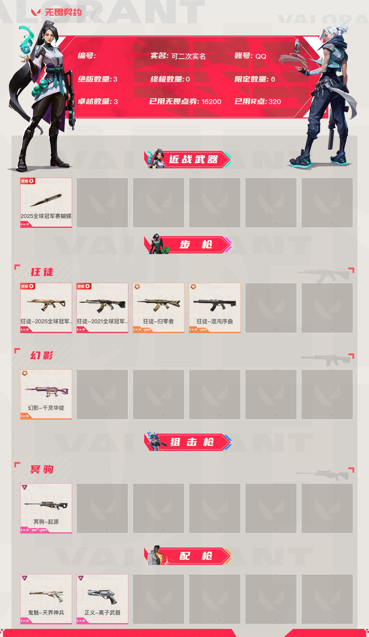 无畏契约【端游】Lv63|未定级, 刀皮数量1,枪皮数量8(绝版3限定6终极0