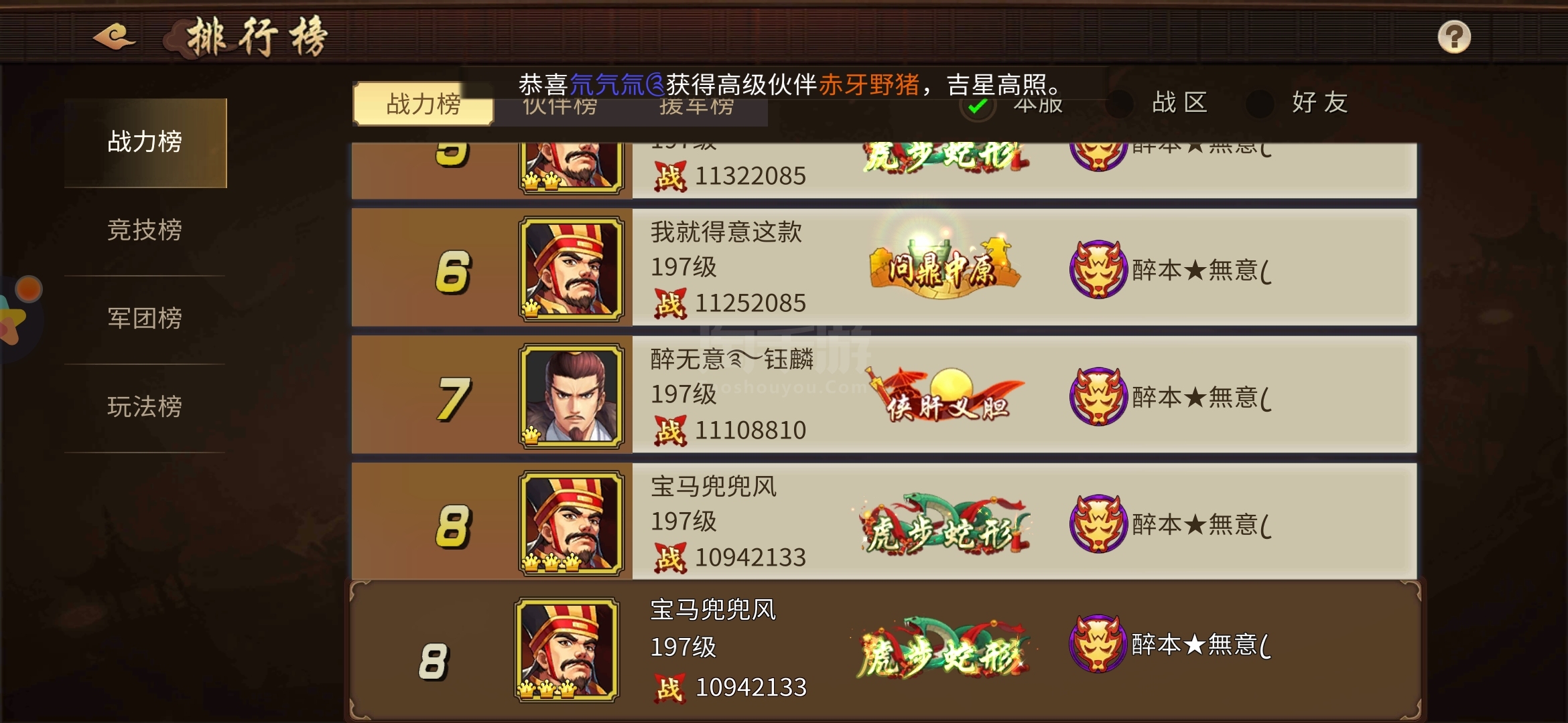 三国战纪【安卓OPPO】1100万高战力,硬属性号,闪避1.9万,命中1.6万,攻击65万左右,周三可上巅峰王者,宠物776