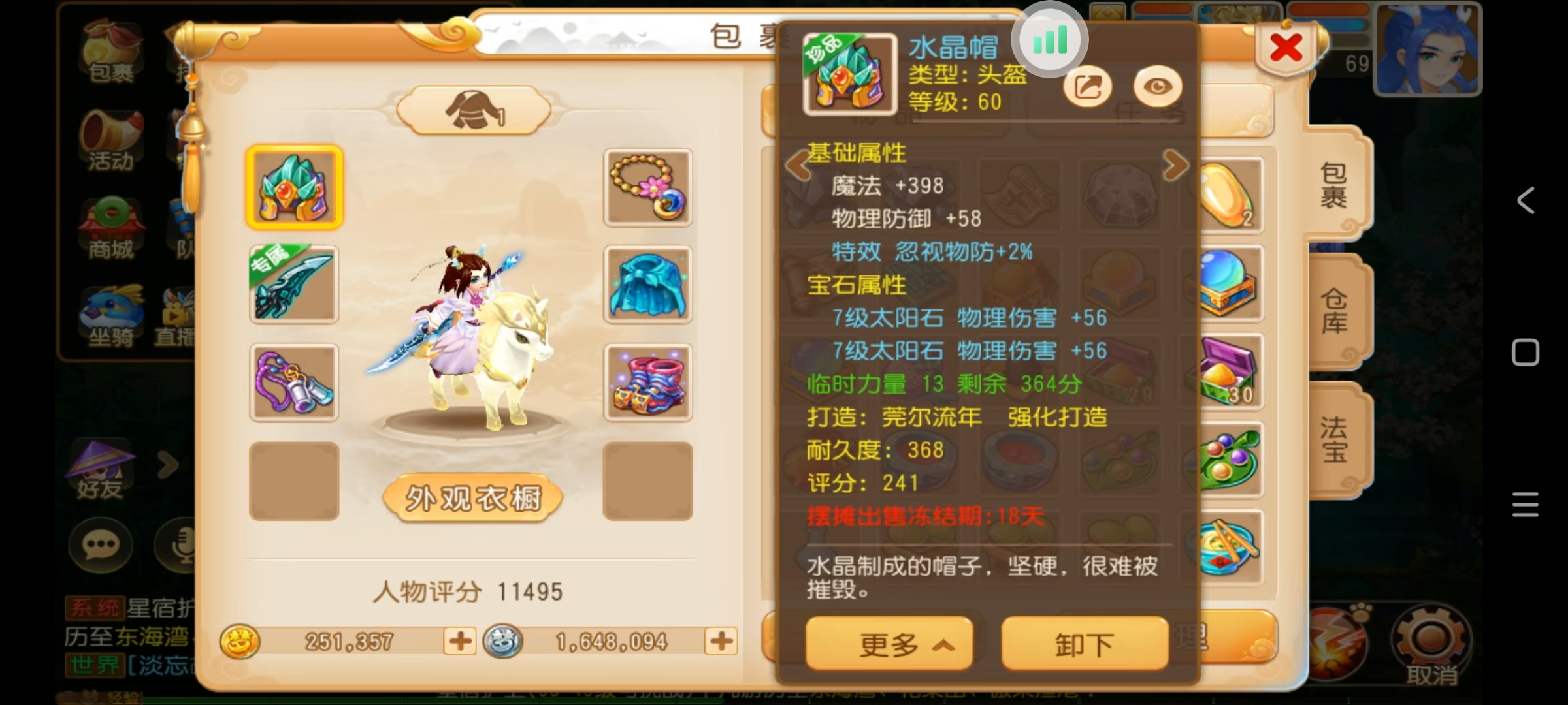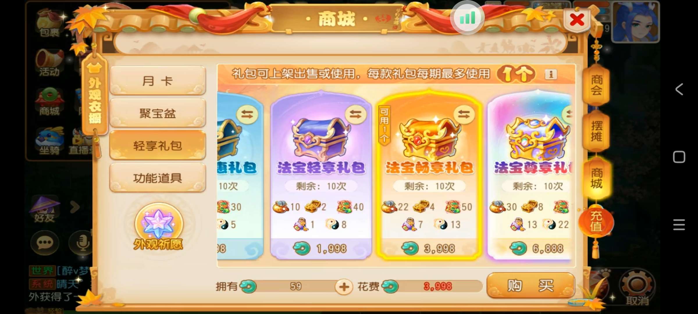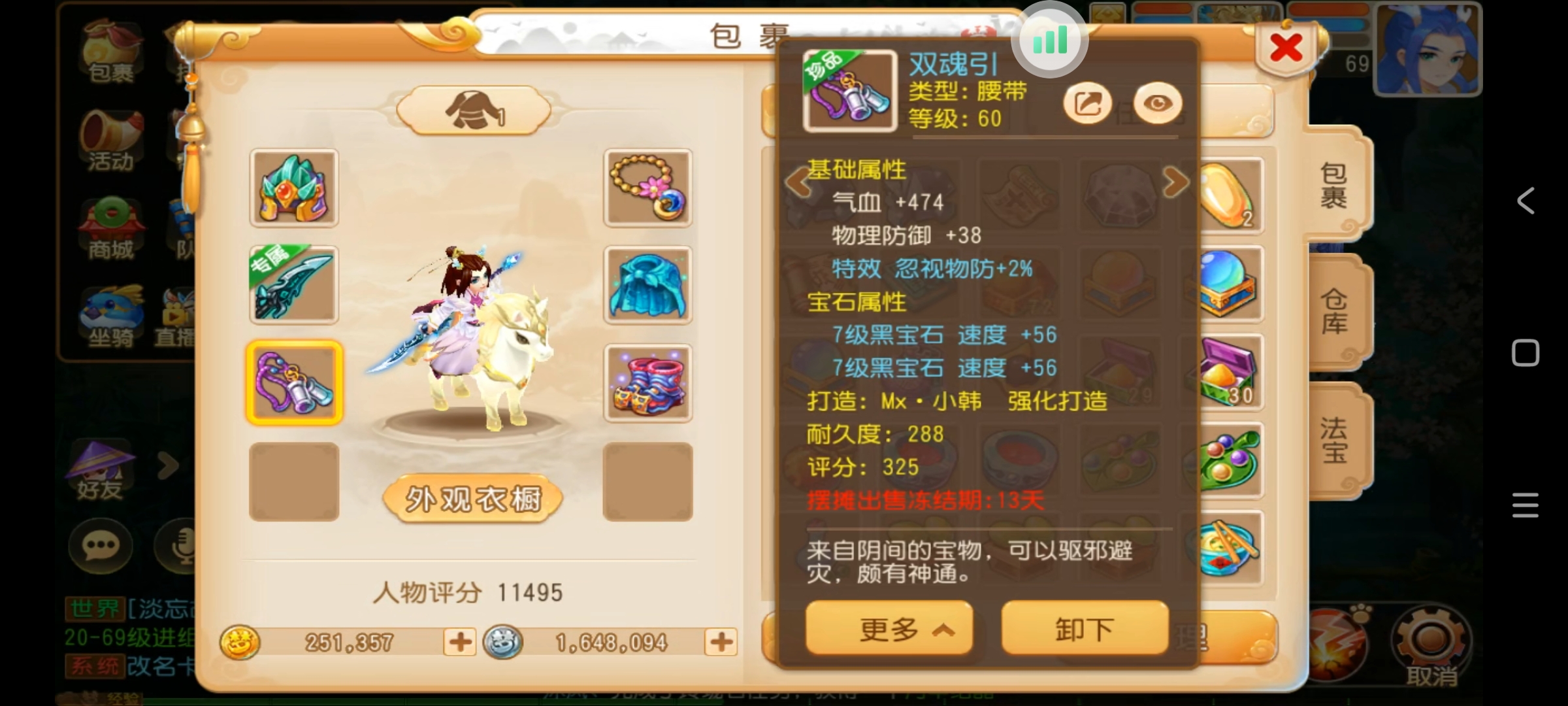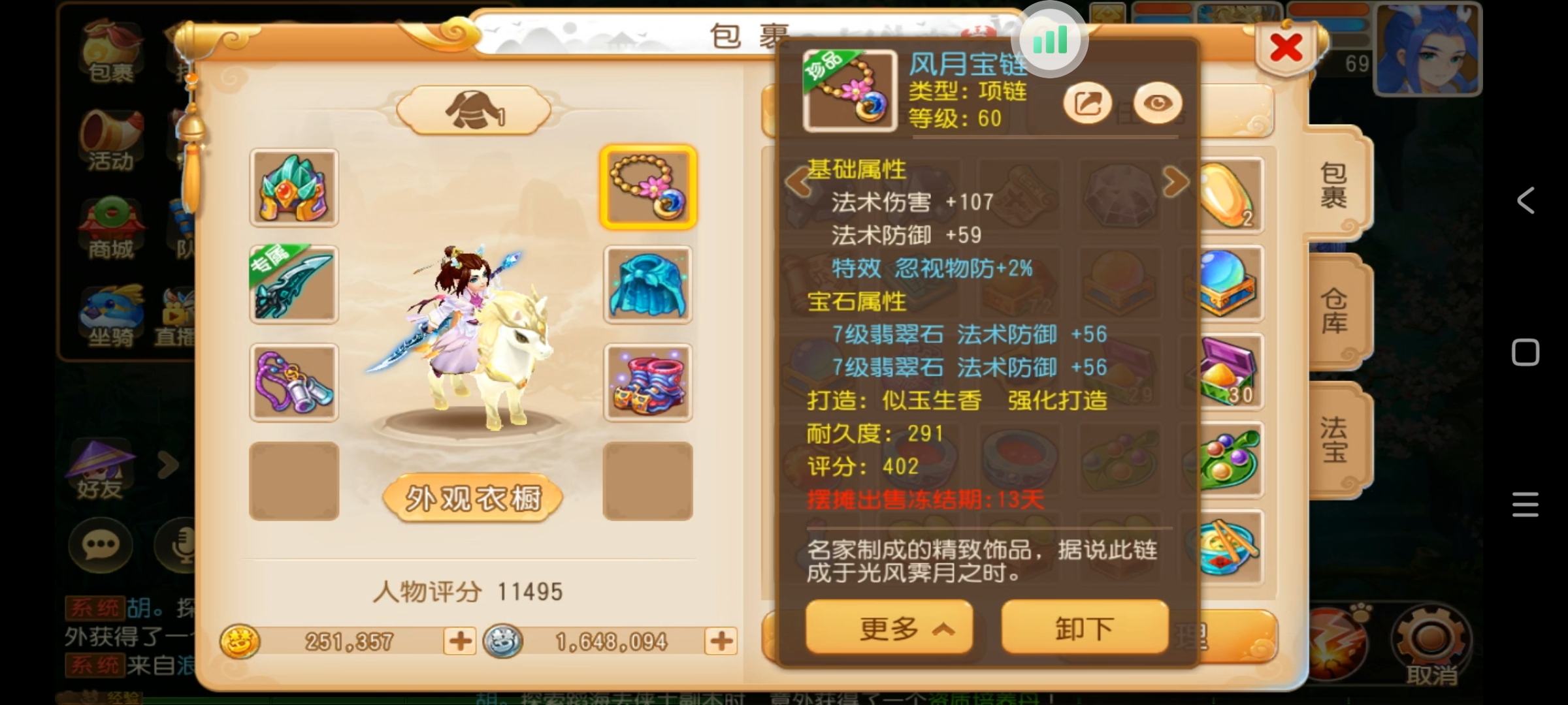 梦幻西游【安卓官方】轻享服紫禁城69全满月宫,带高伤专属武器,4件忽视物防,配速龟速法宠都有,礼包都在,找回包赔