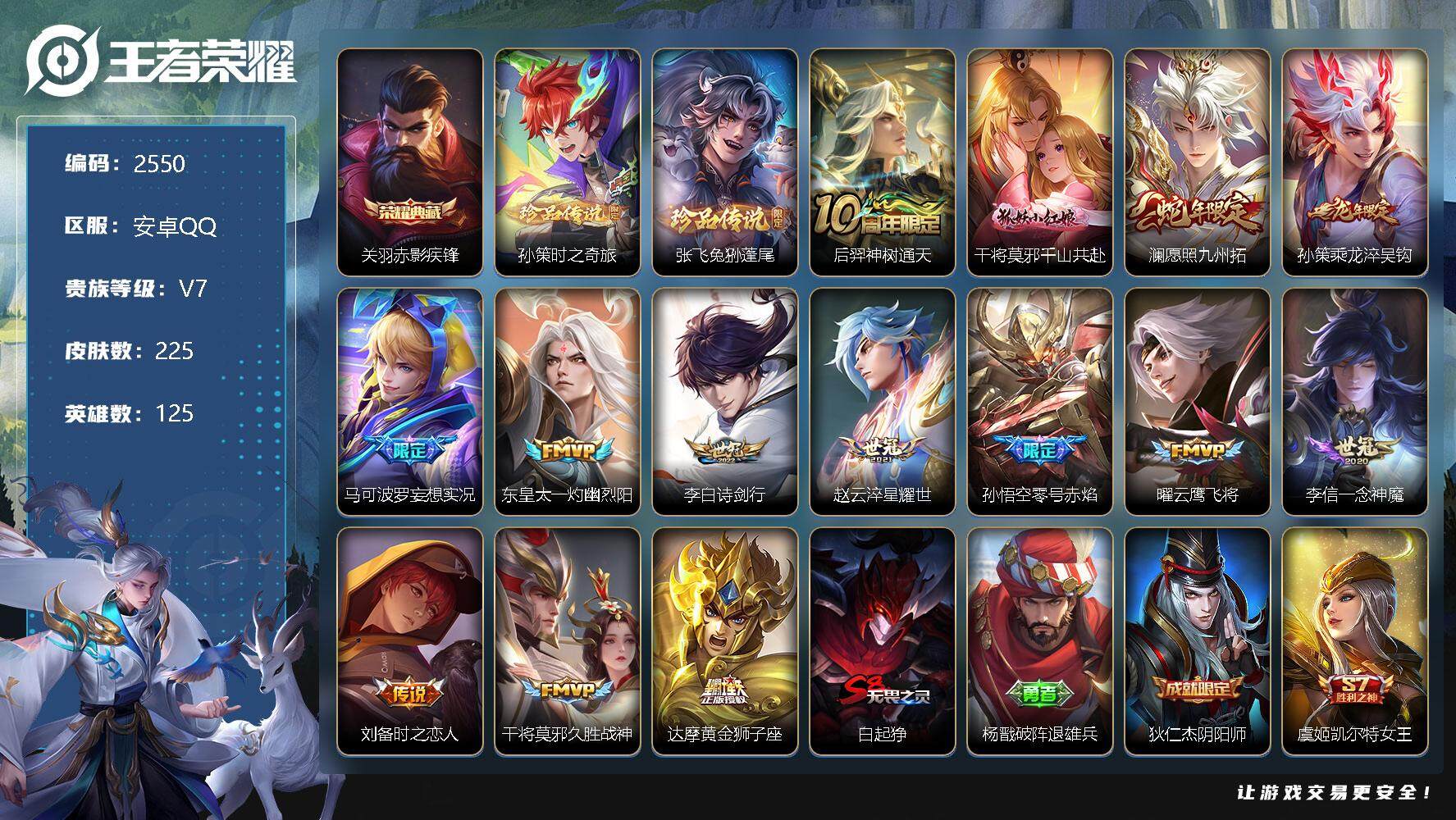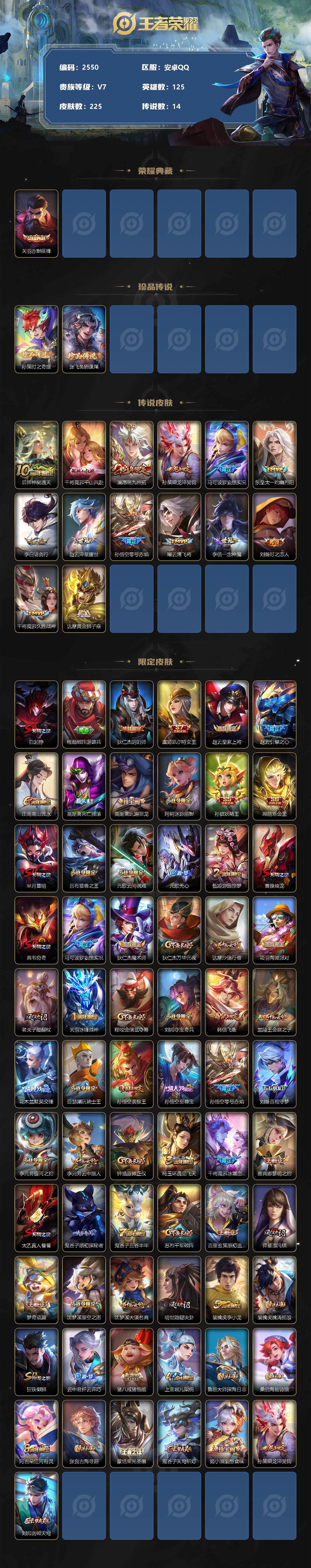 王者荣耀【安卓QQ】安卓Q-V7-最强王者段位-125英雄-225皮肤-1典藏-0珍品无双-0无双