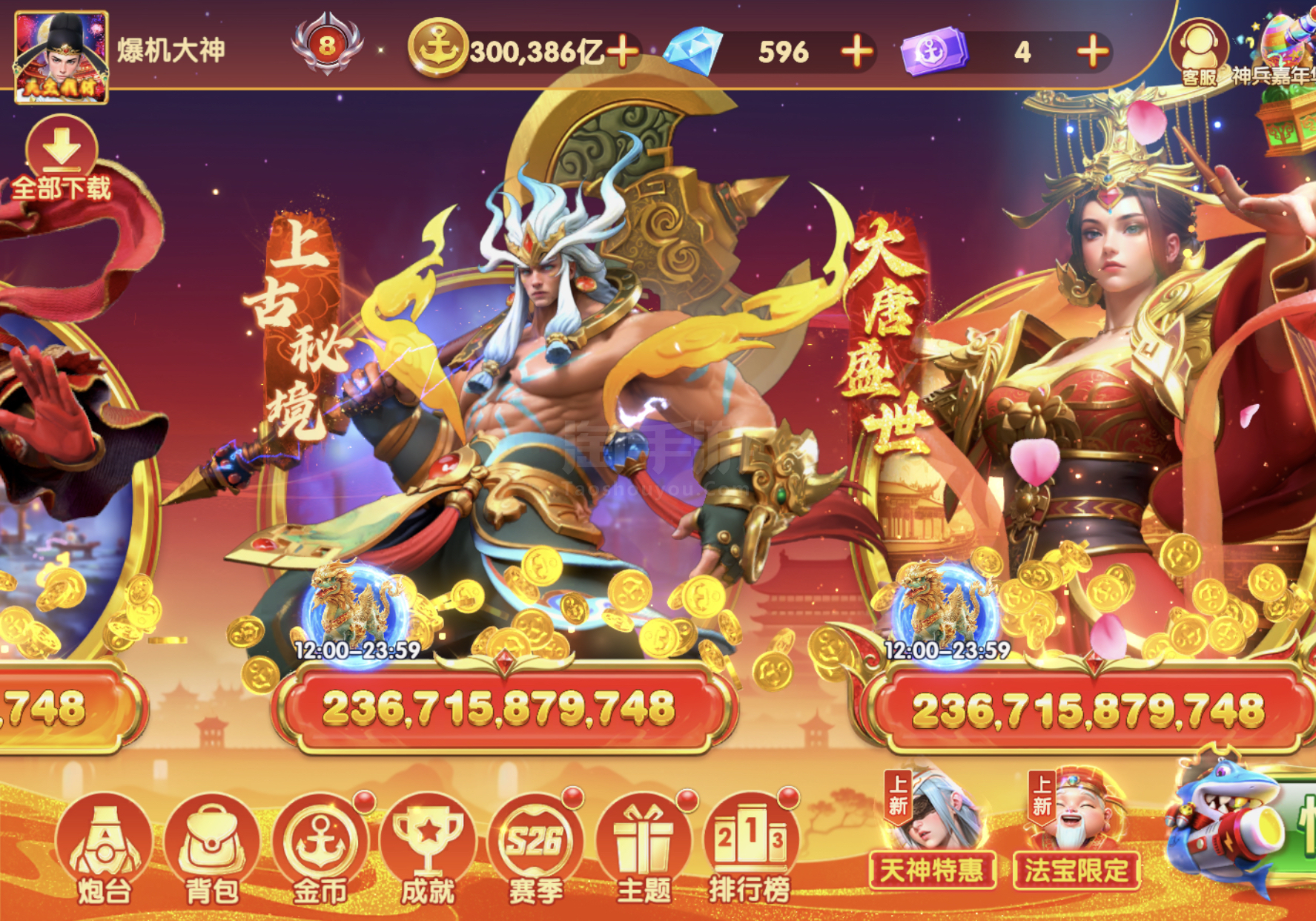 乐乐捕鱼【安卓官方】乐乐捕鱼V8 43万亿 四圣女神 天王全满星 带618元点卷随便买 大唐和乱世三星 蛋还有15万。。